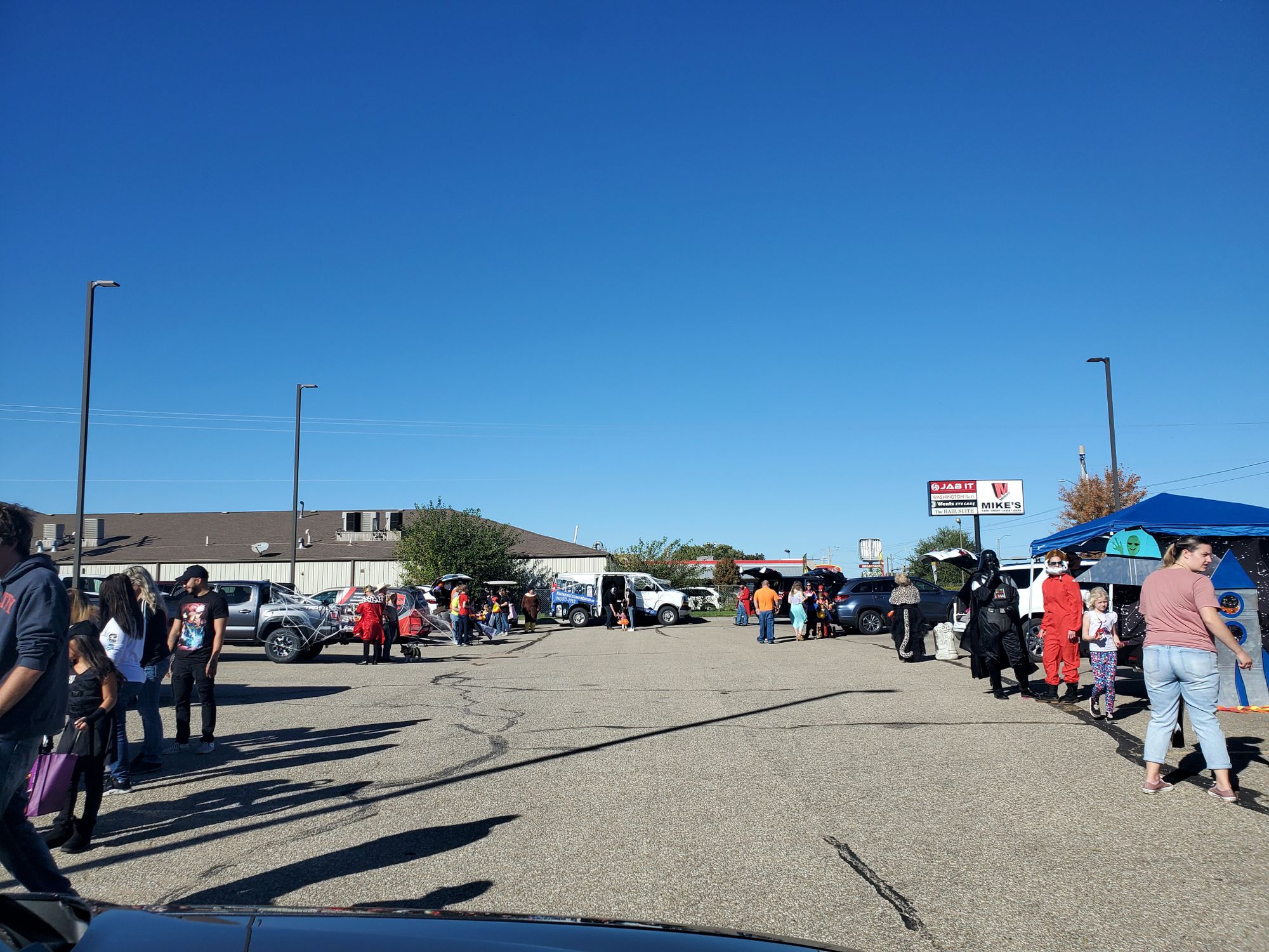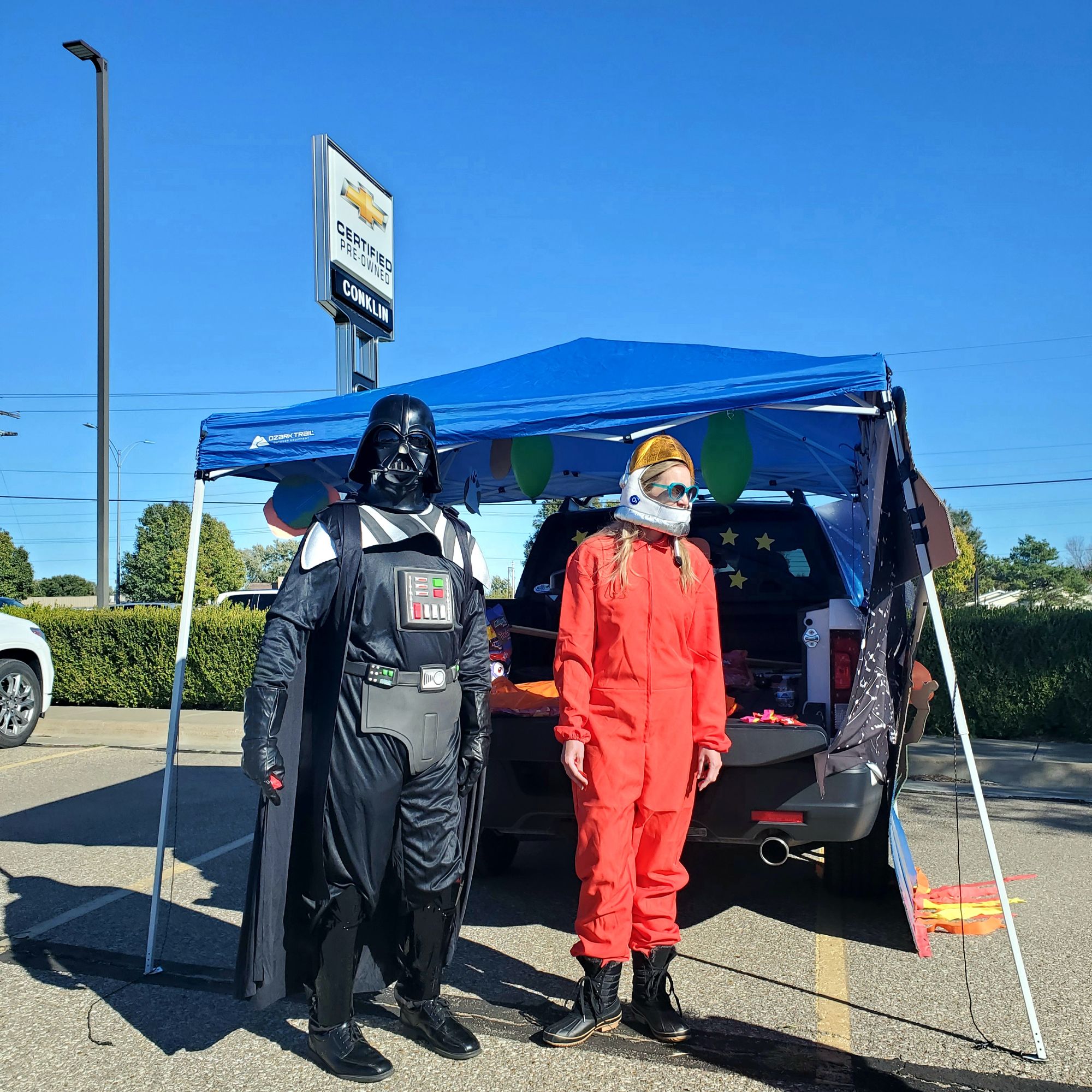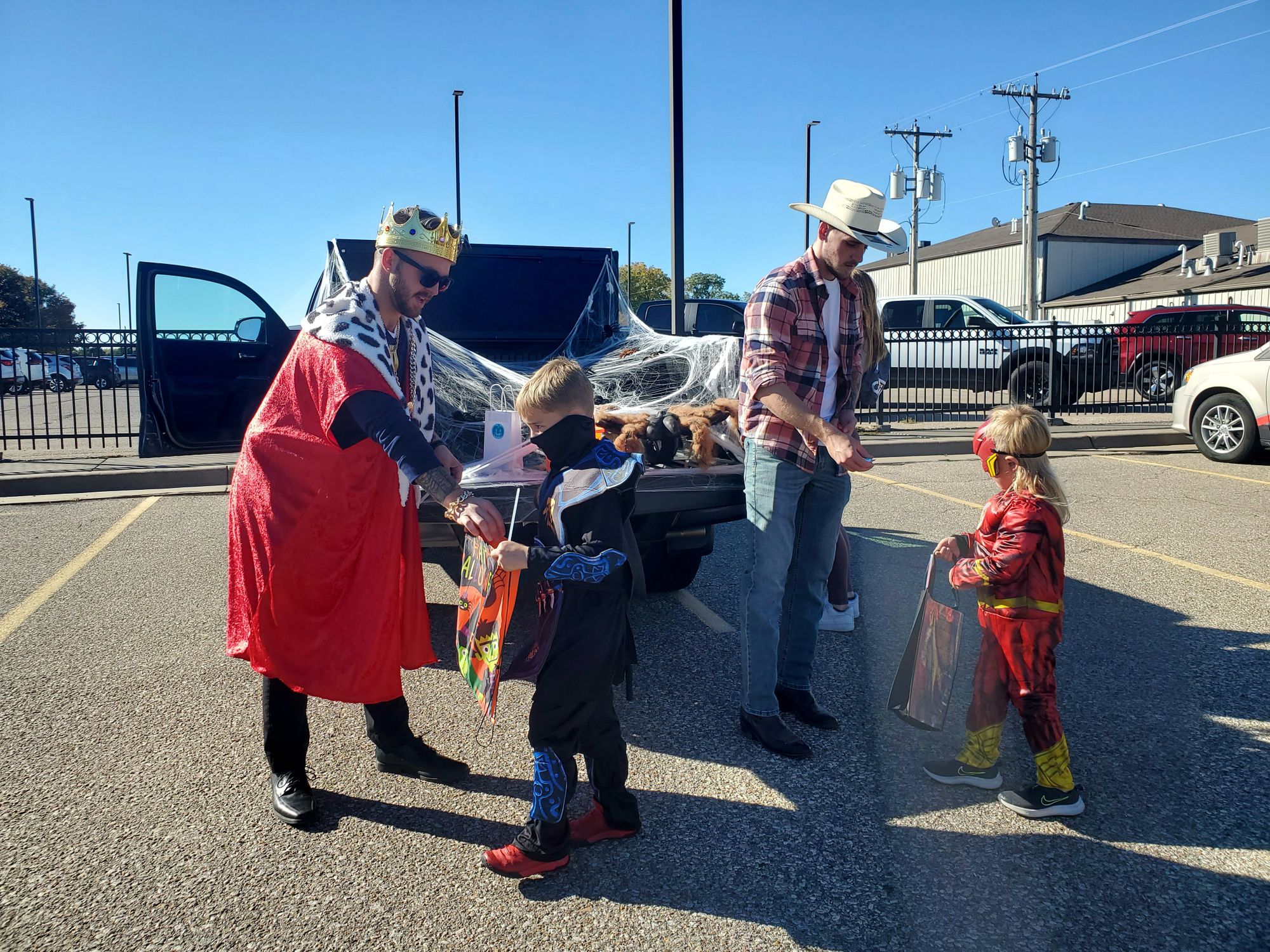 The car lot held their annual trunk-or-treat today, with costumed car salespeople passing candy out to awaiting kids.