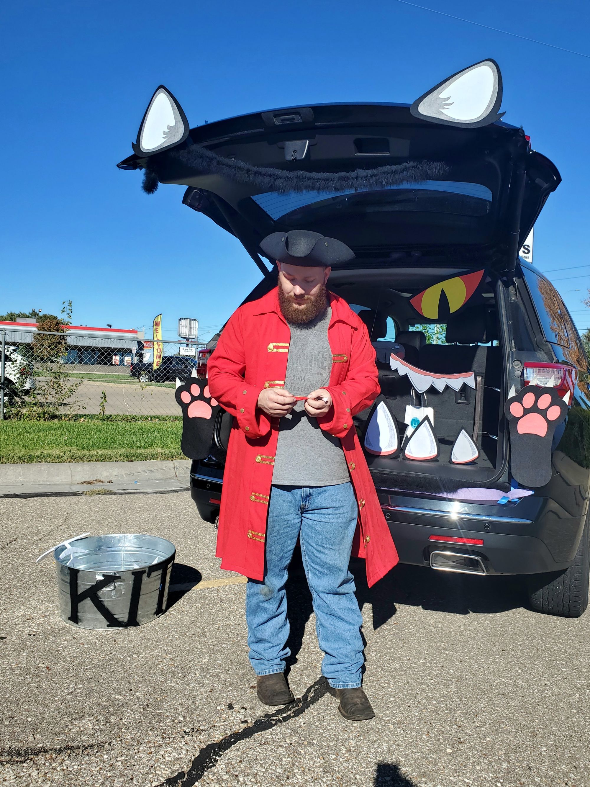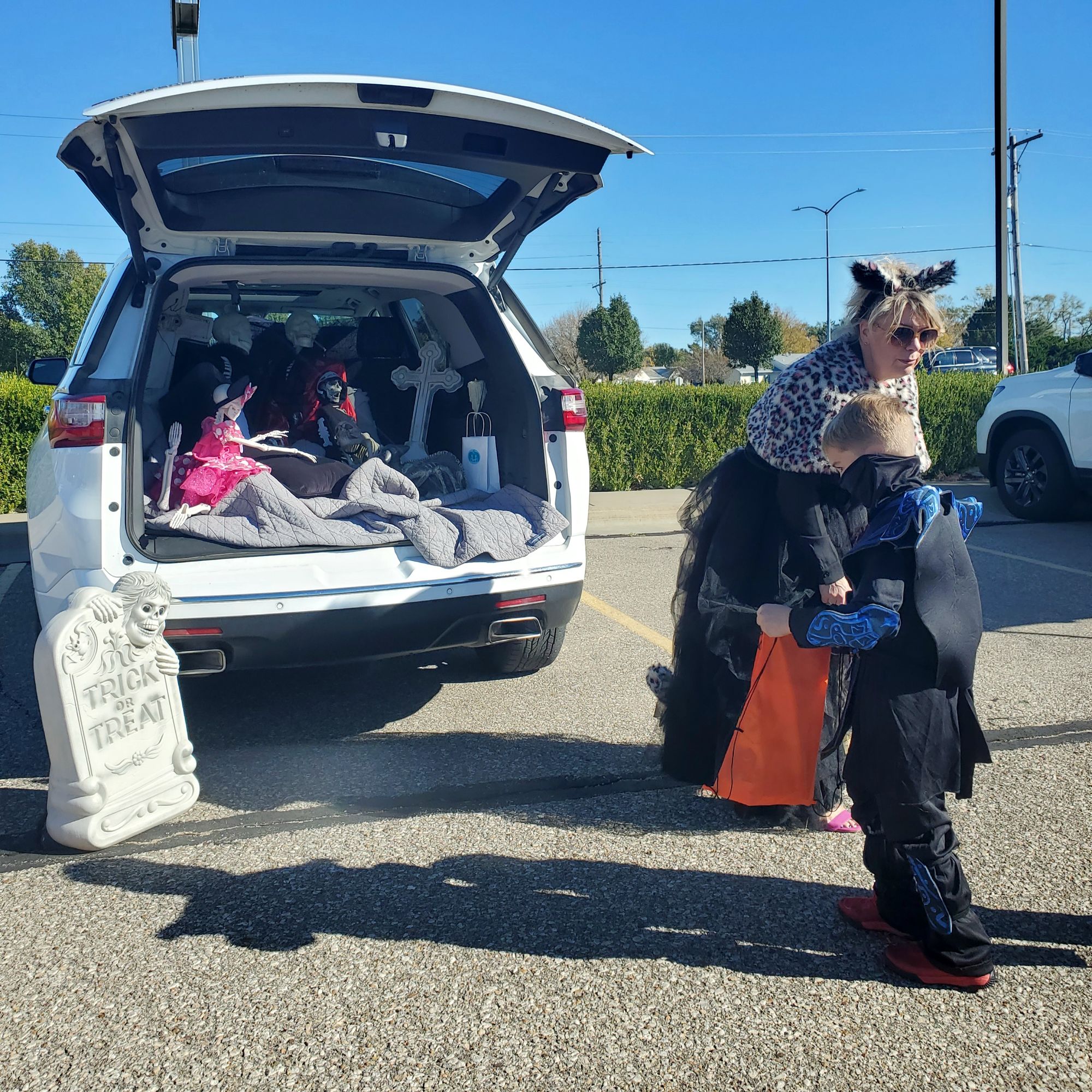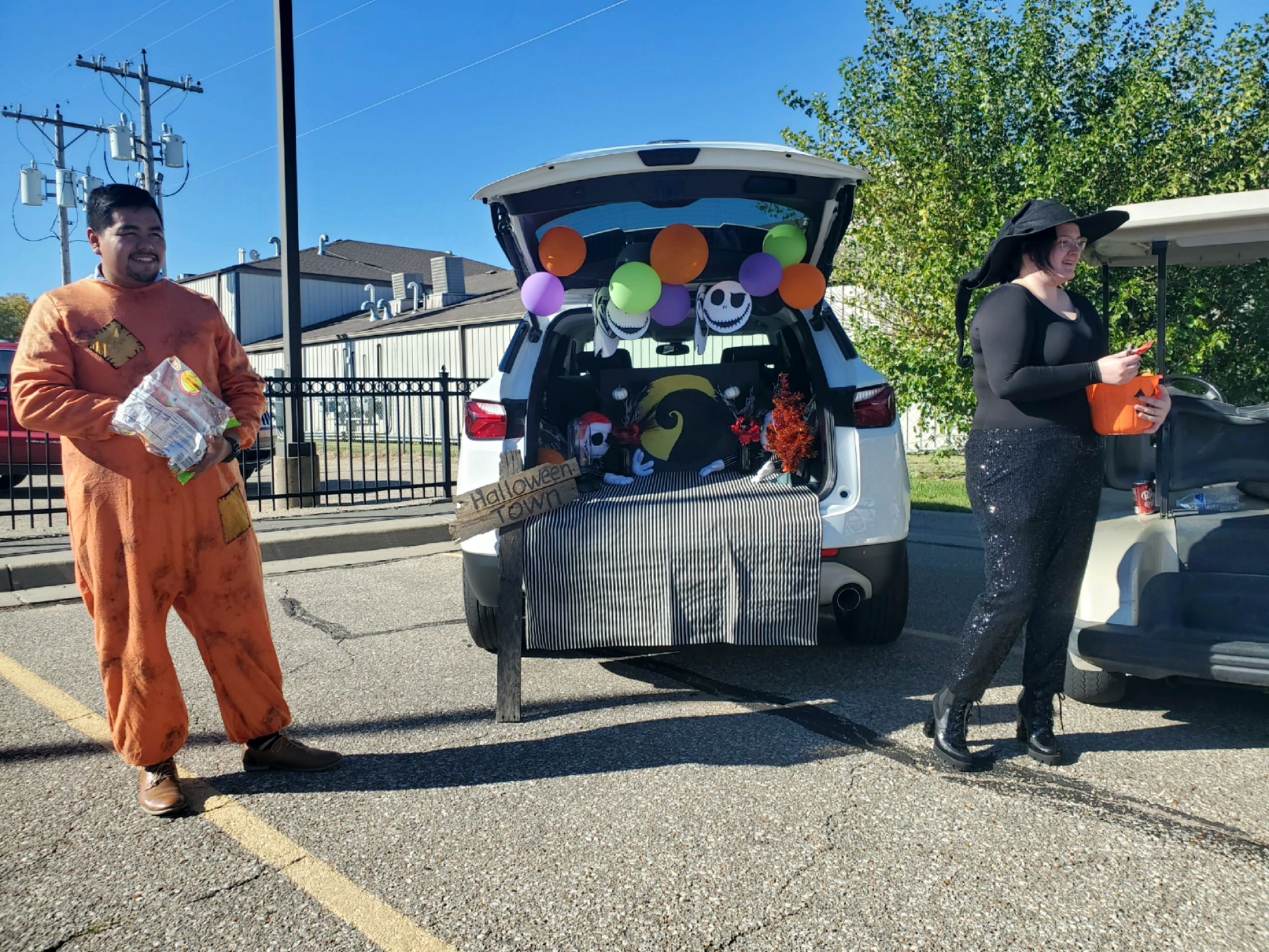 The car lot held their annual trunk-or-treat today, with costumed car salespeople passing candy out to awaiting kids.
