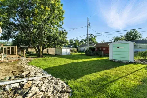 The kitchen includes quality Crestwood cabinets, a corner dining area, and pantry space that comes with a full-size freezer. Enjoy easy backyard access via newer decking, two storage sheds, and a fenced-in yard.