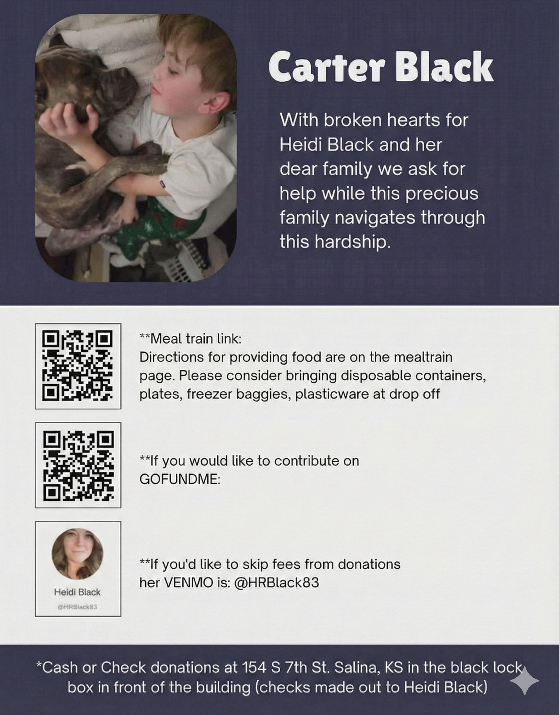 Salina311 has spoken directly with Heidi Black, and the following information reflects the confirmed and approved ways to support her family following the loss of her son, Carter Black.