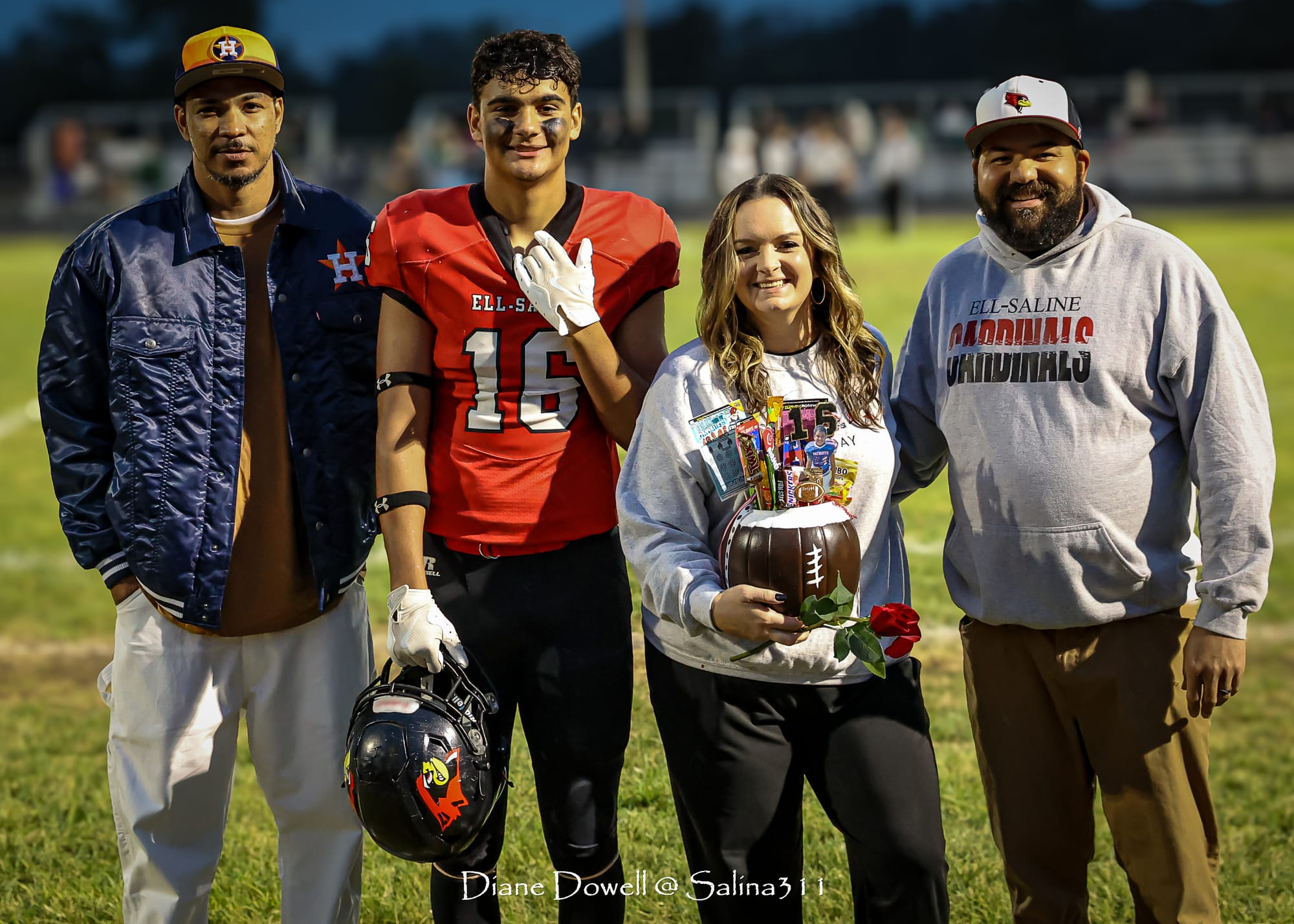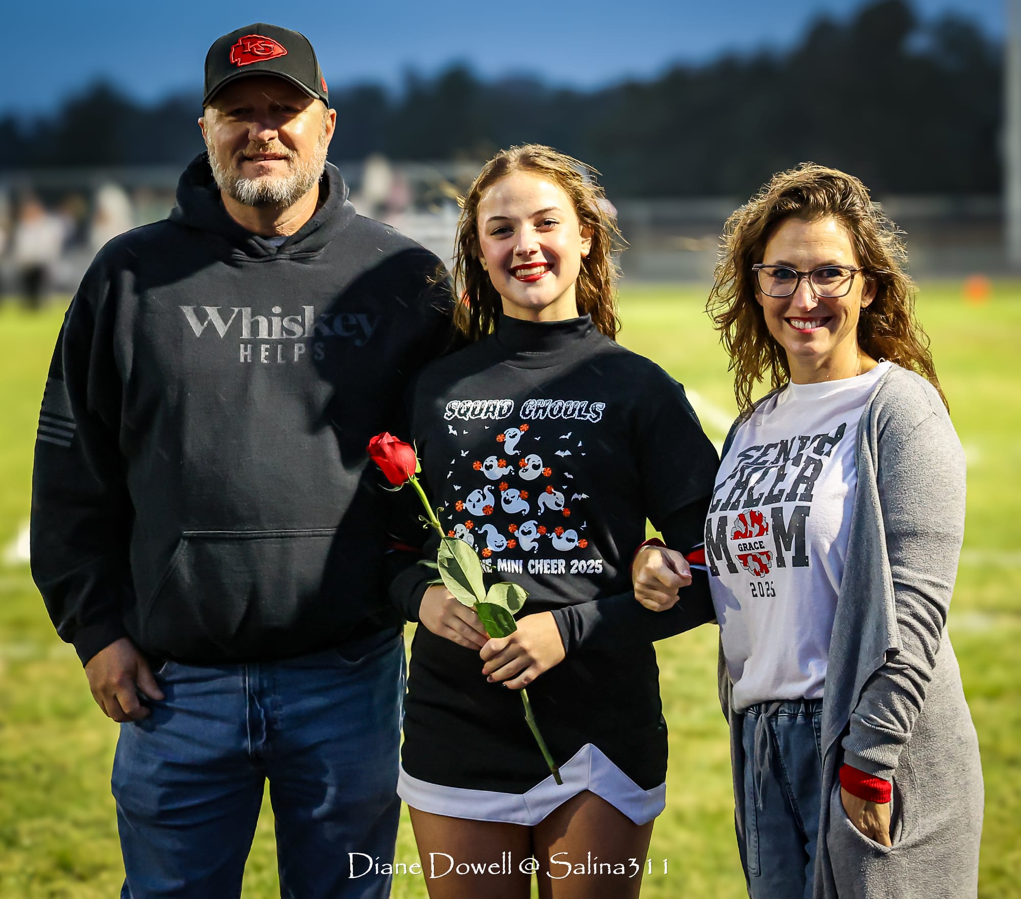 Recognition of the SENIOR FOOTBALL PLAYERS, BAND MEMBERS AND CHEERLEADERS was held pregame: