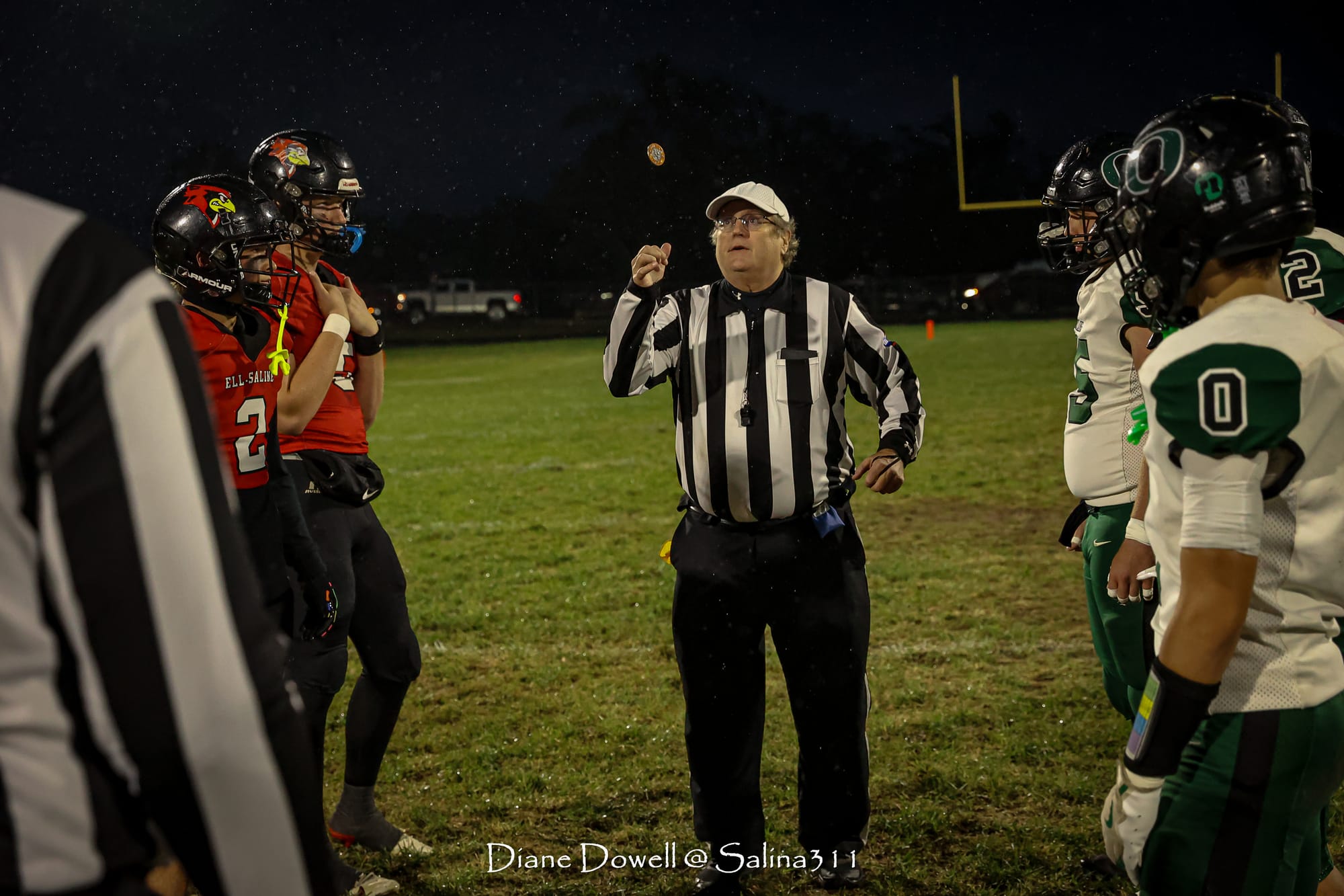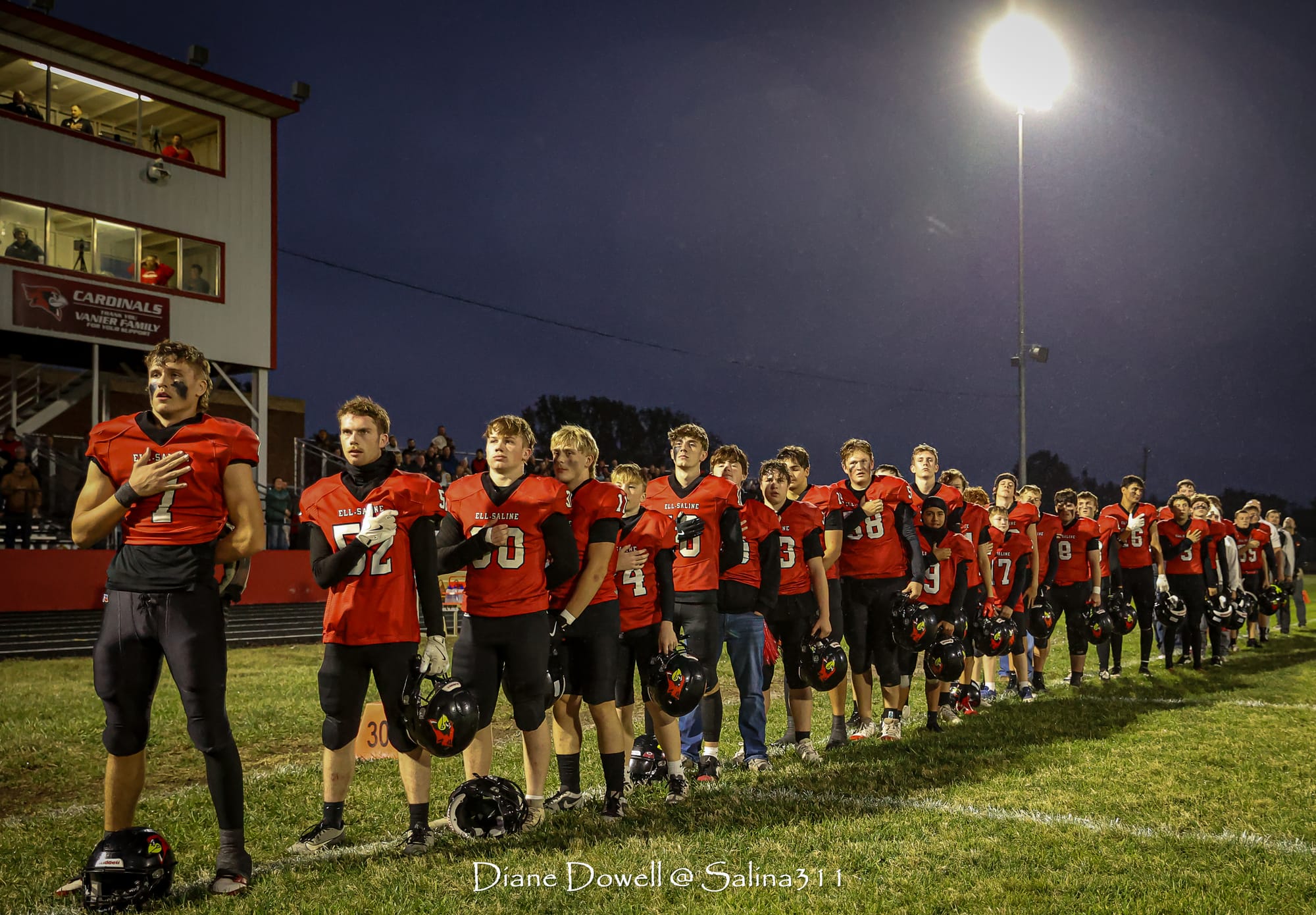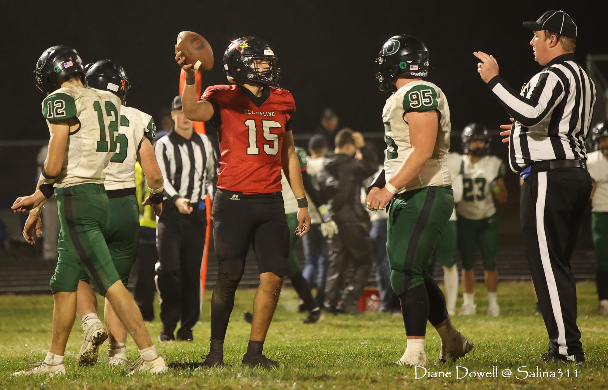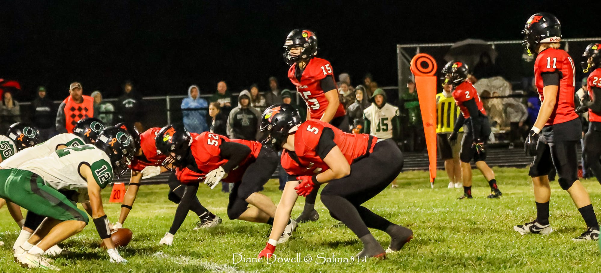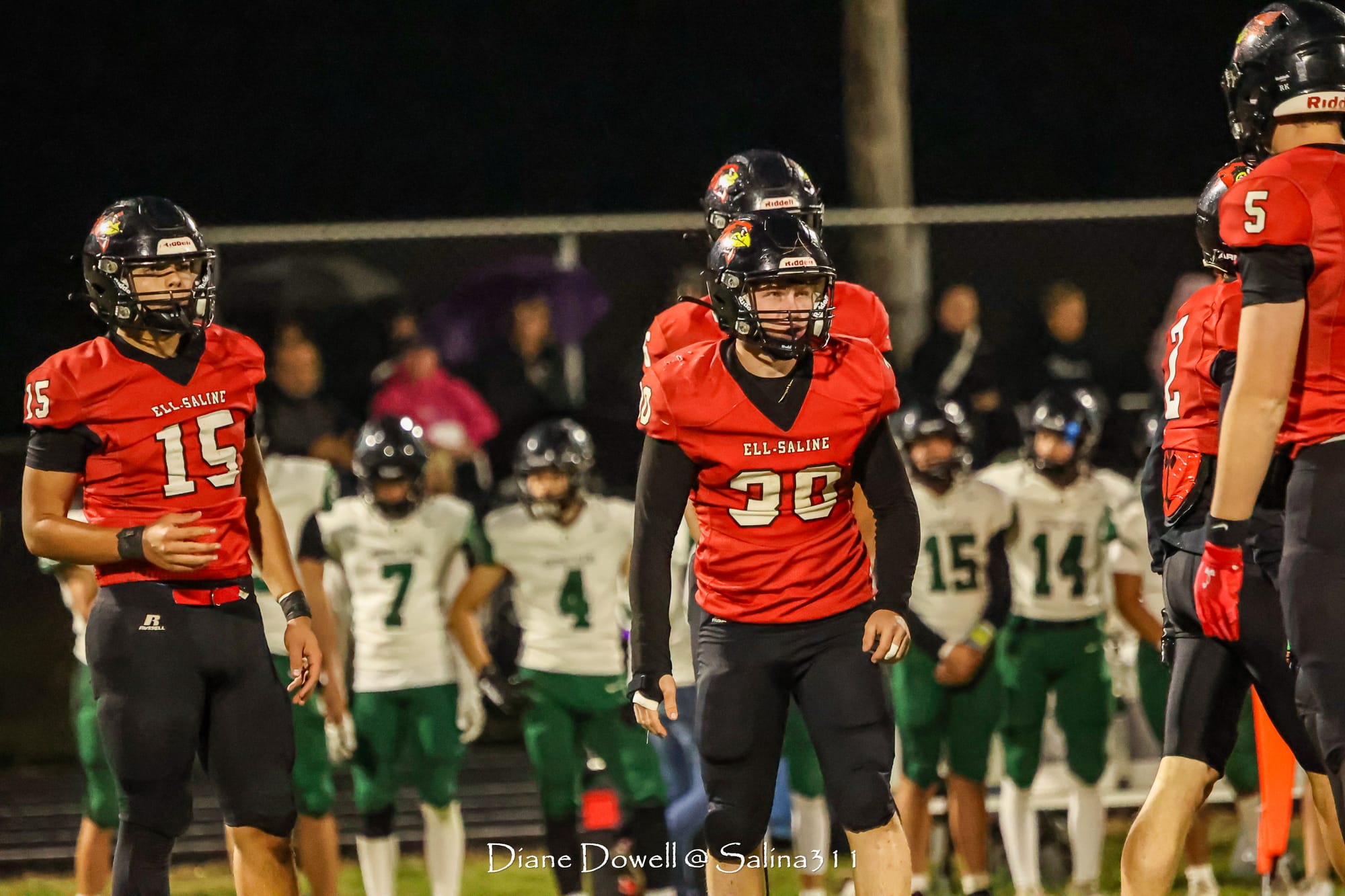Brookville, KS- October 24, 2025, marked the final regular season game before district playoffs begin next week. The Central Plains Oilers with a 5-2 record traveled to Brookville for Ell-Saline's Sr. Night recognition game. The Cardinals entered the night with a 6-1 record. The Friday Night Lights were on, and the fans pulled out their umbrellas and bundled up for a soggy night of football.