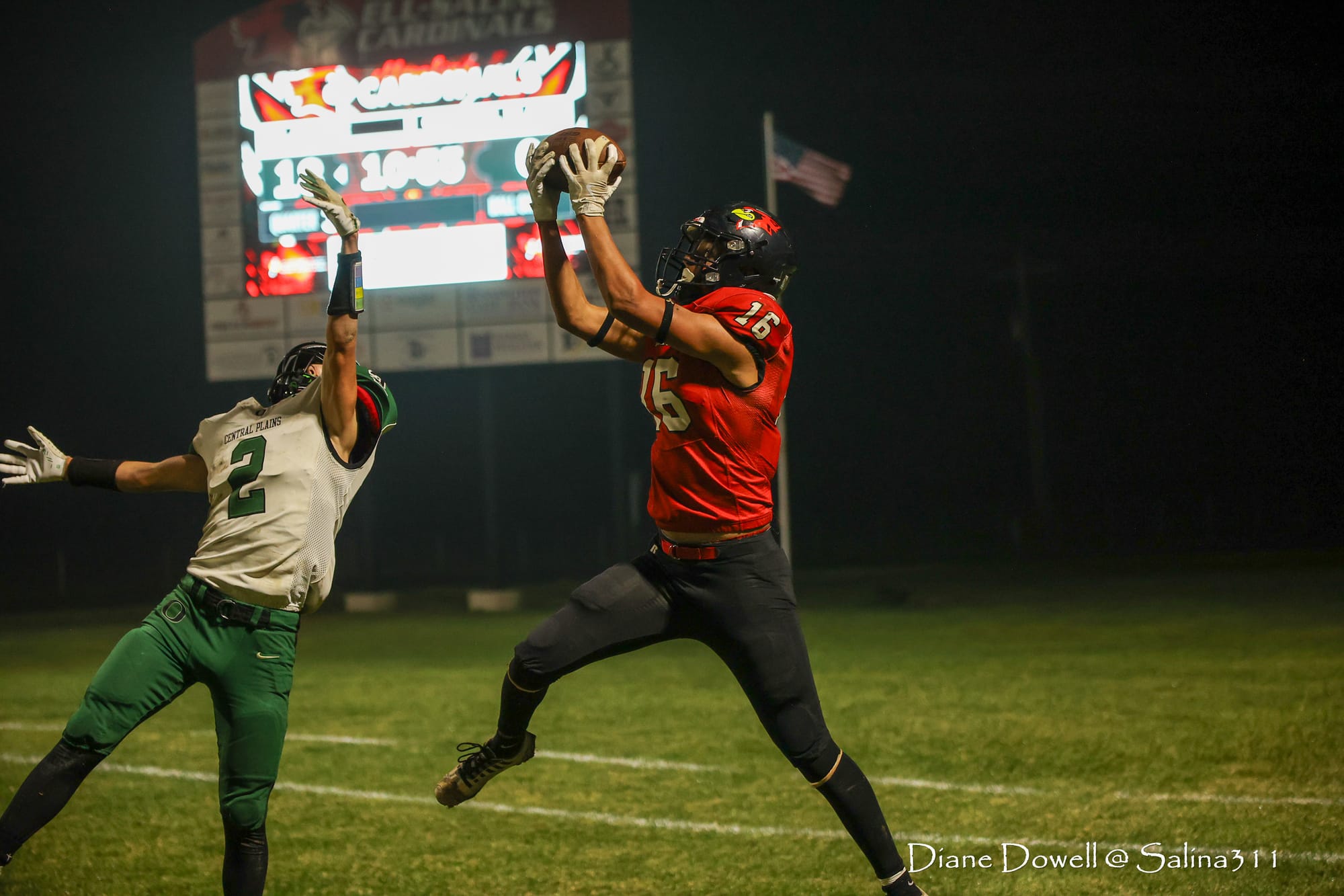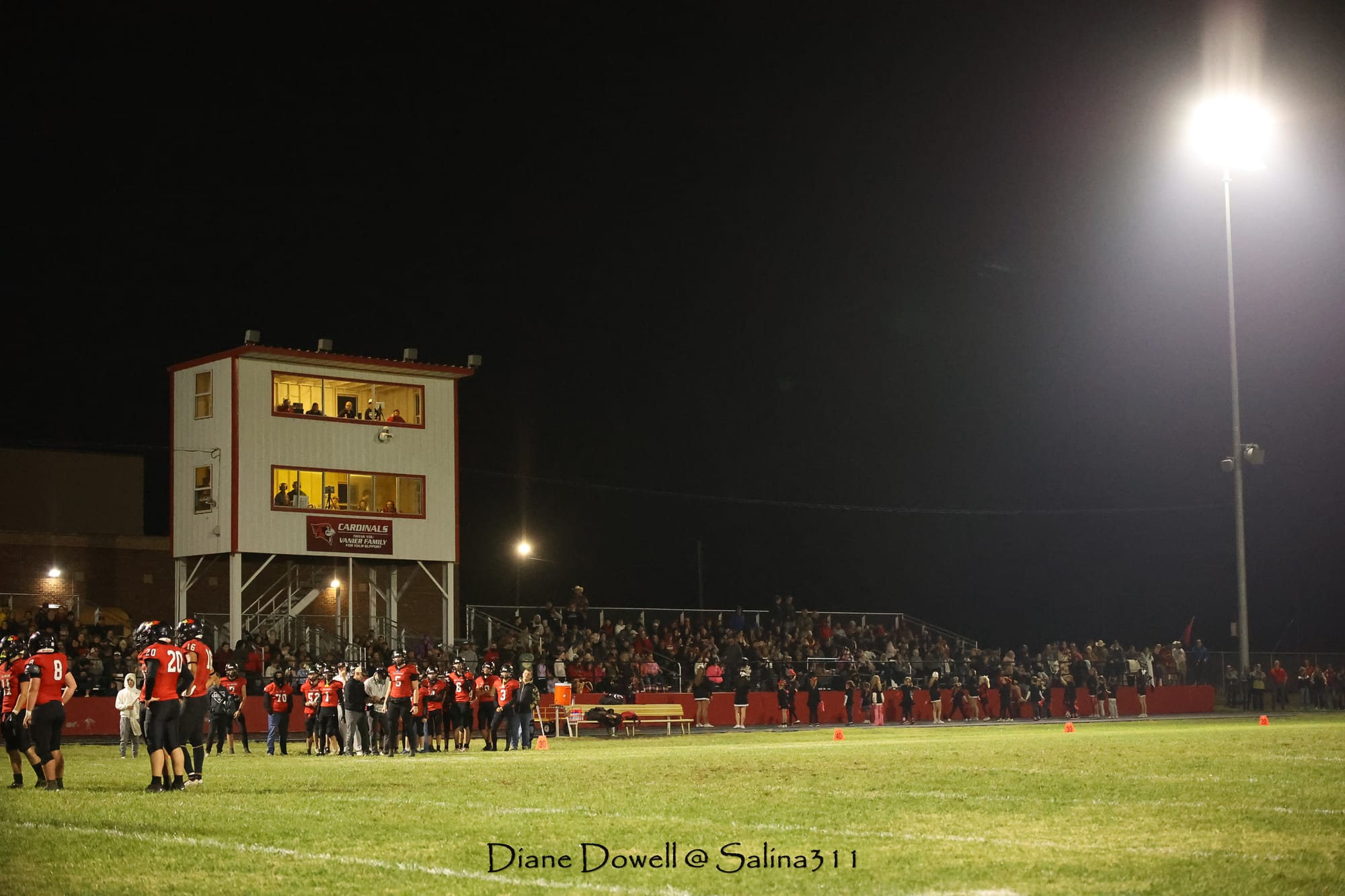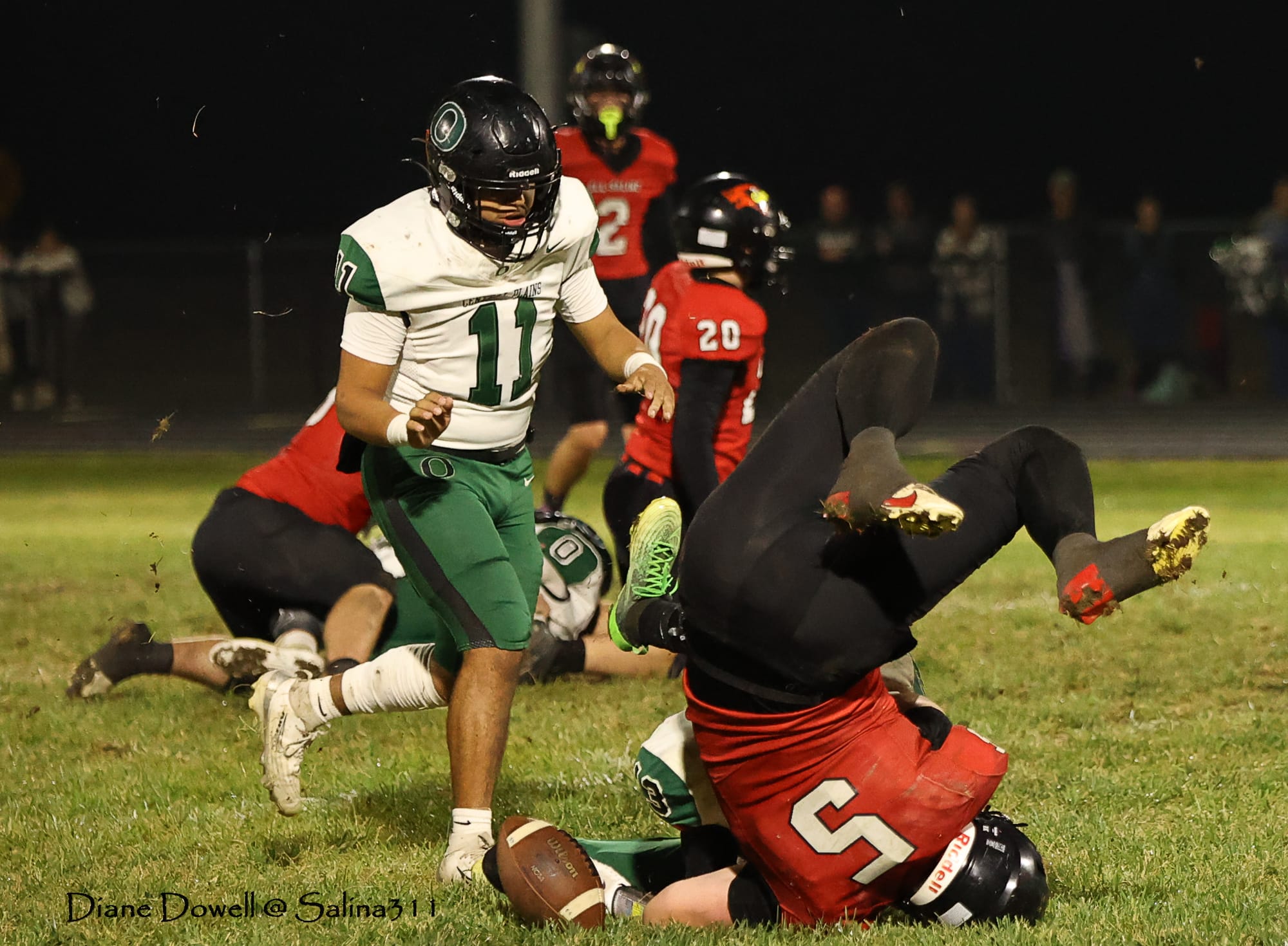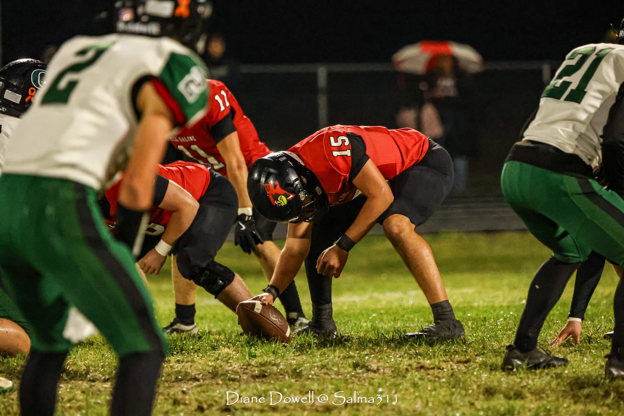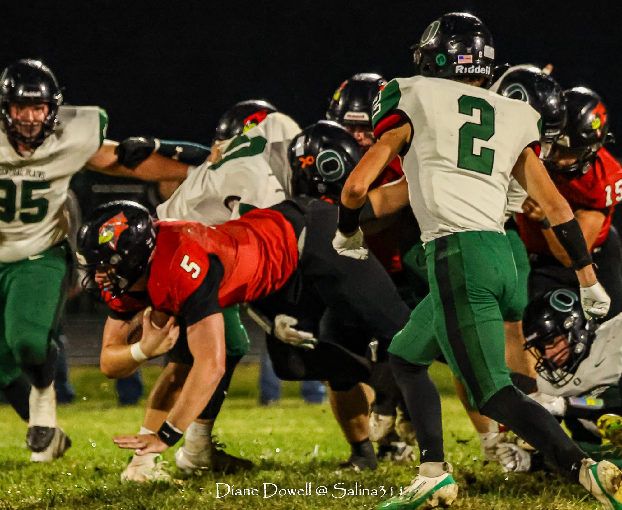 Brookville, KS- October 24, 2025, marked the final regular season game before district playoffs begin next week. The Central Plains Oilers with a 5-2 record traveled to Brookville for Ell-Saline's Sr. Night recognition game. The Cardinals entered the night with a 6-1 record. The Friday Night Lights were on, and the fans pulled out their umbrellas and bundled up for a soggy night of football.