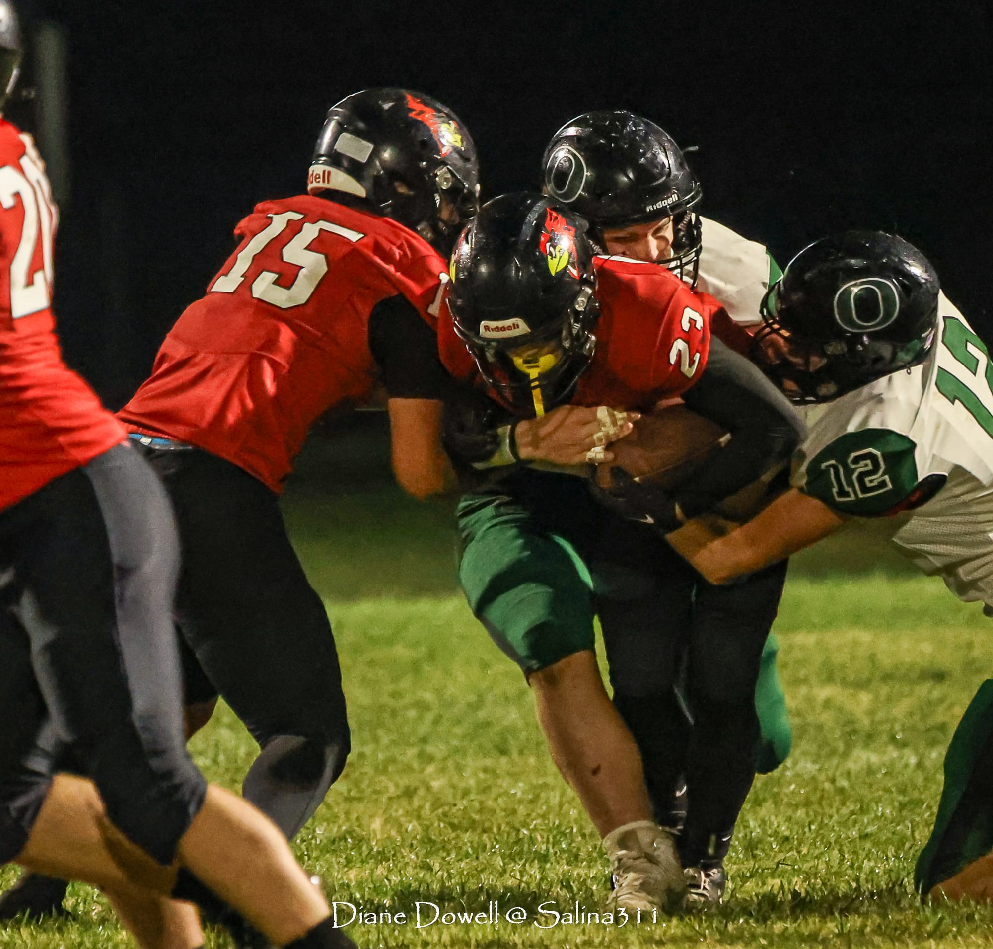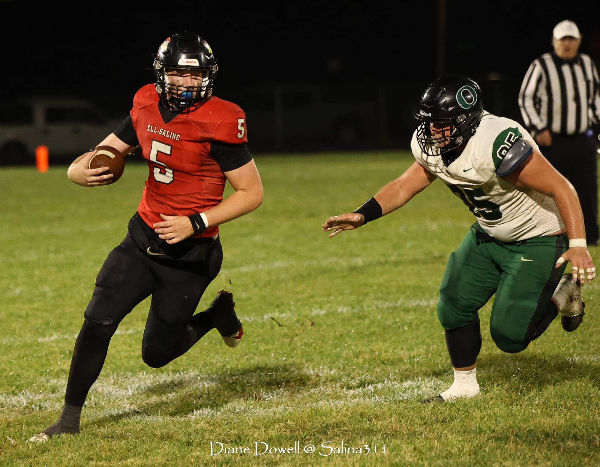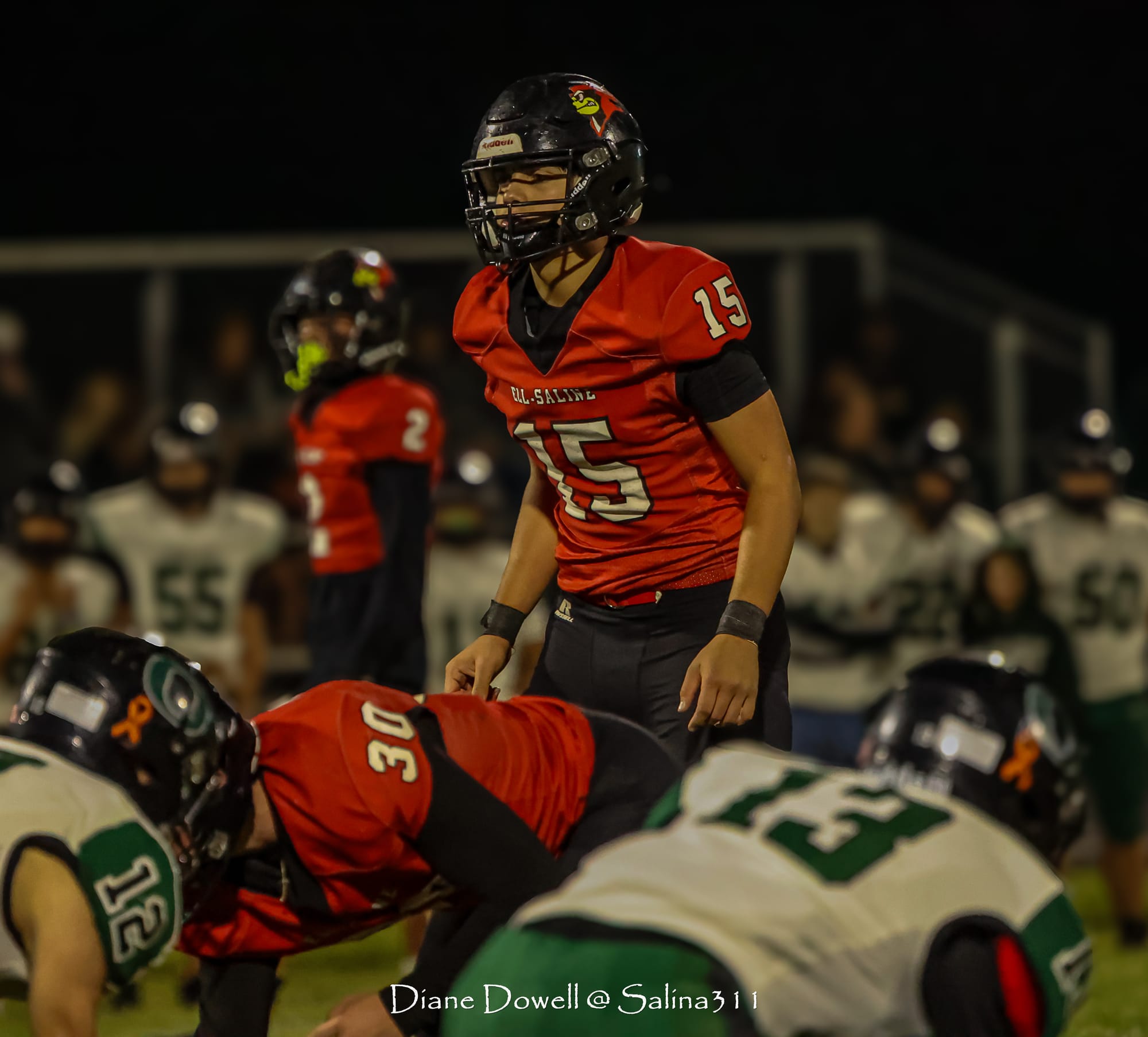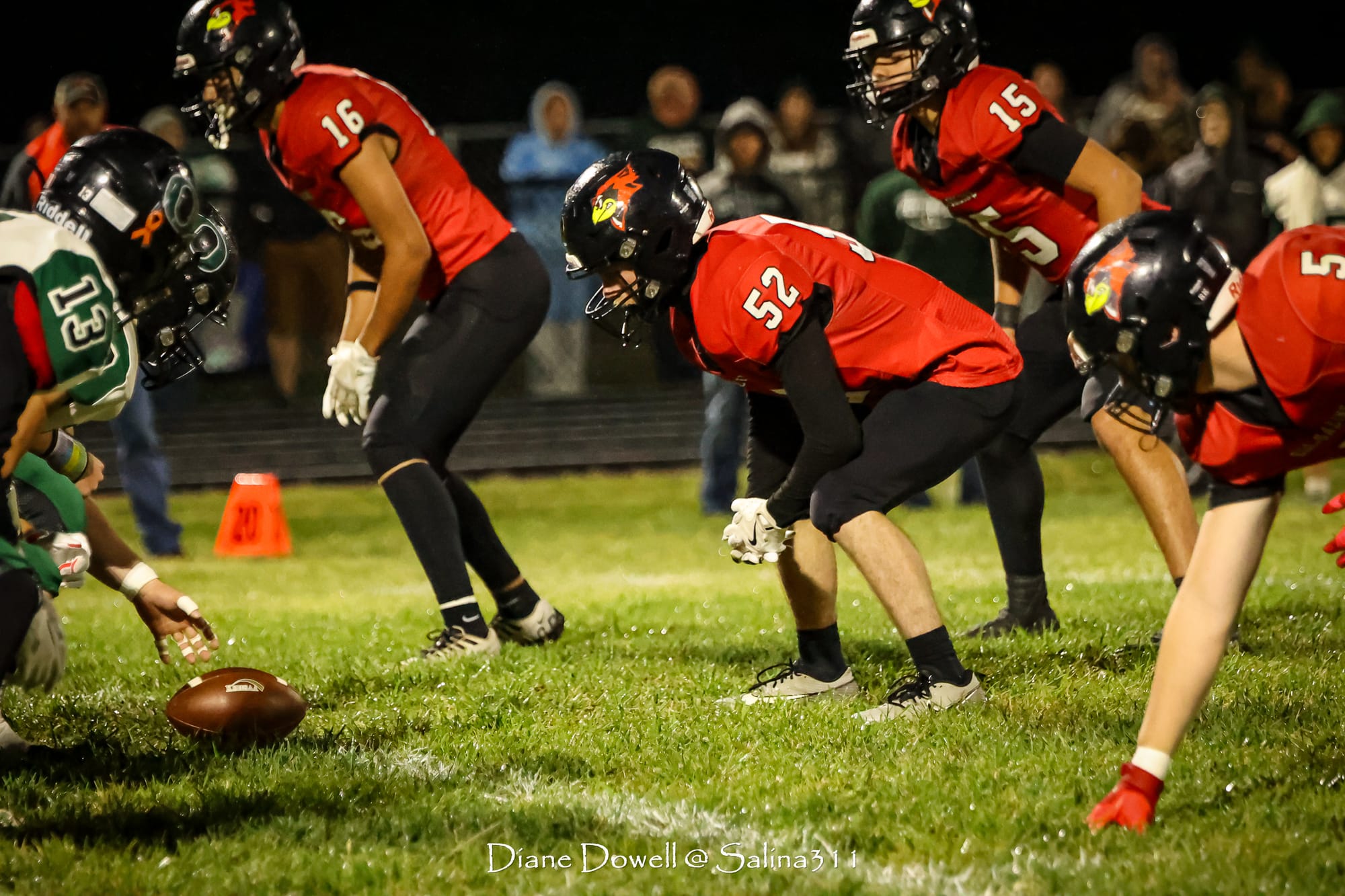 Brookville, KS- October 24, 2025, marked the final regular season game before district playoffs begin next week. The Central Plains Oilers with a 5-2 record traveled to Brookville for Ell-Saline's Sr. Night recognition game. The Cardinals entered the night with a 6-1 record. The Friday Night Lights were on, and the fans pulled out their umbrellas and bundled up for a soggy night of football.