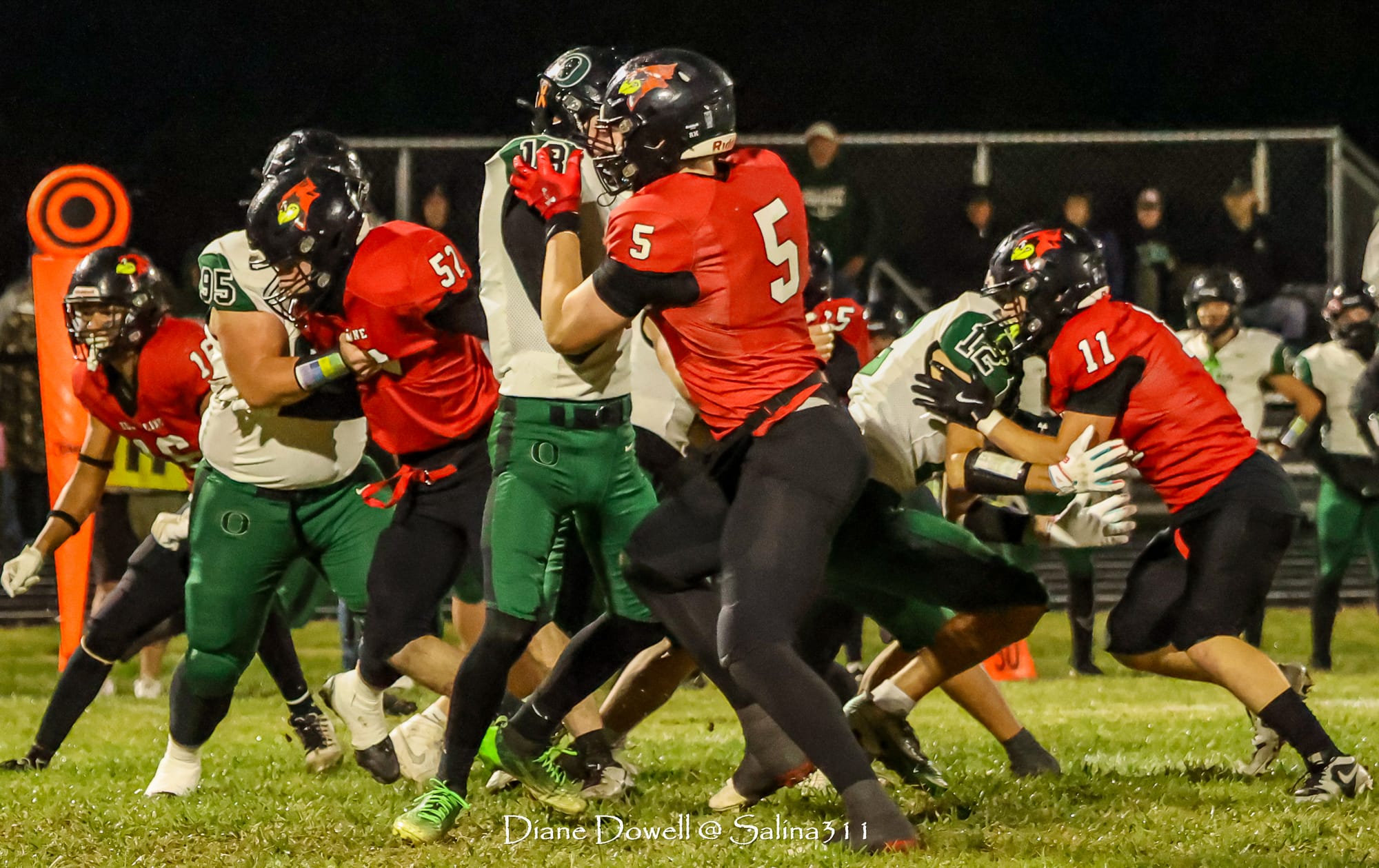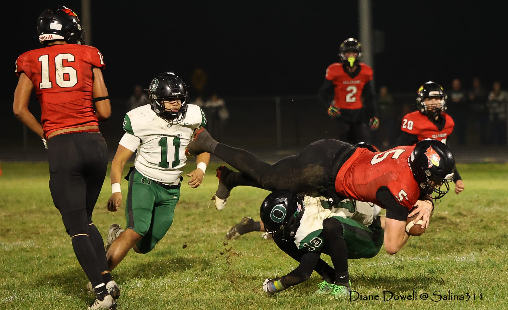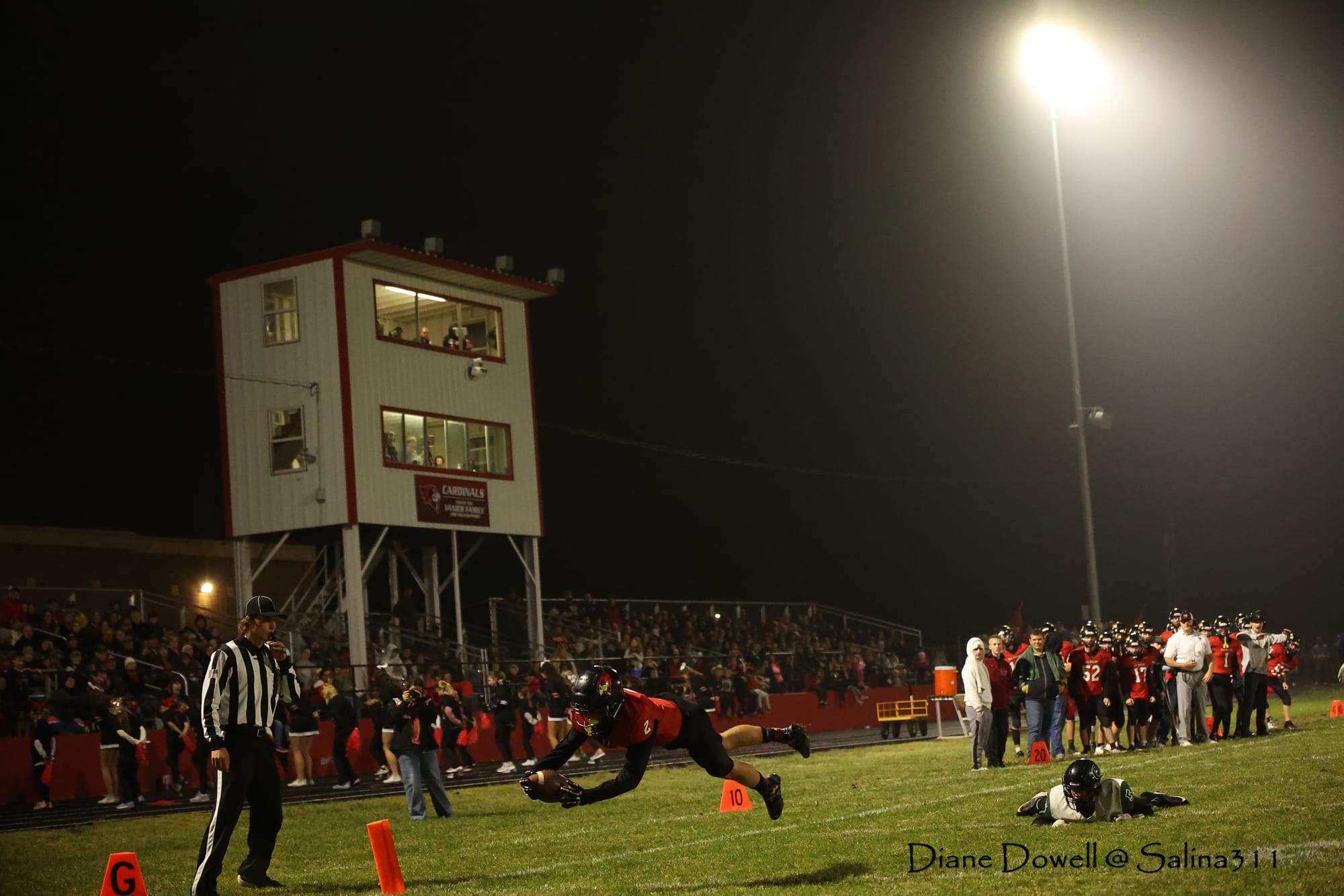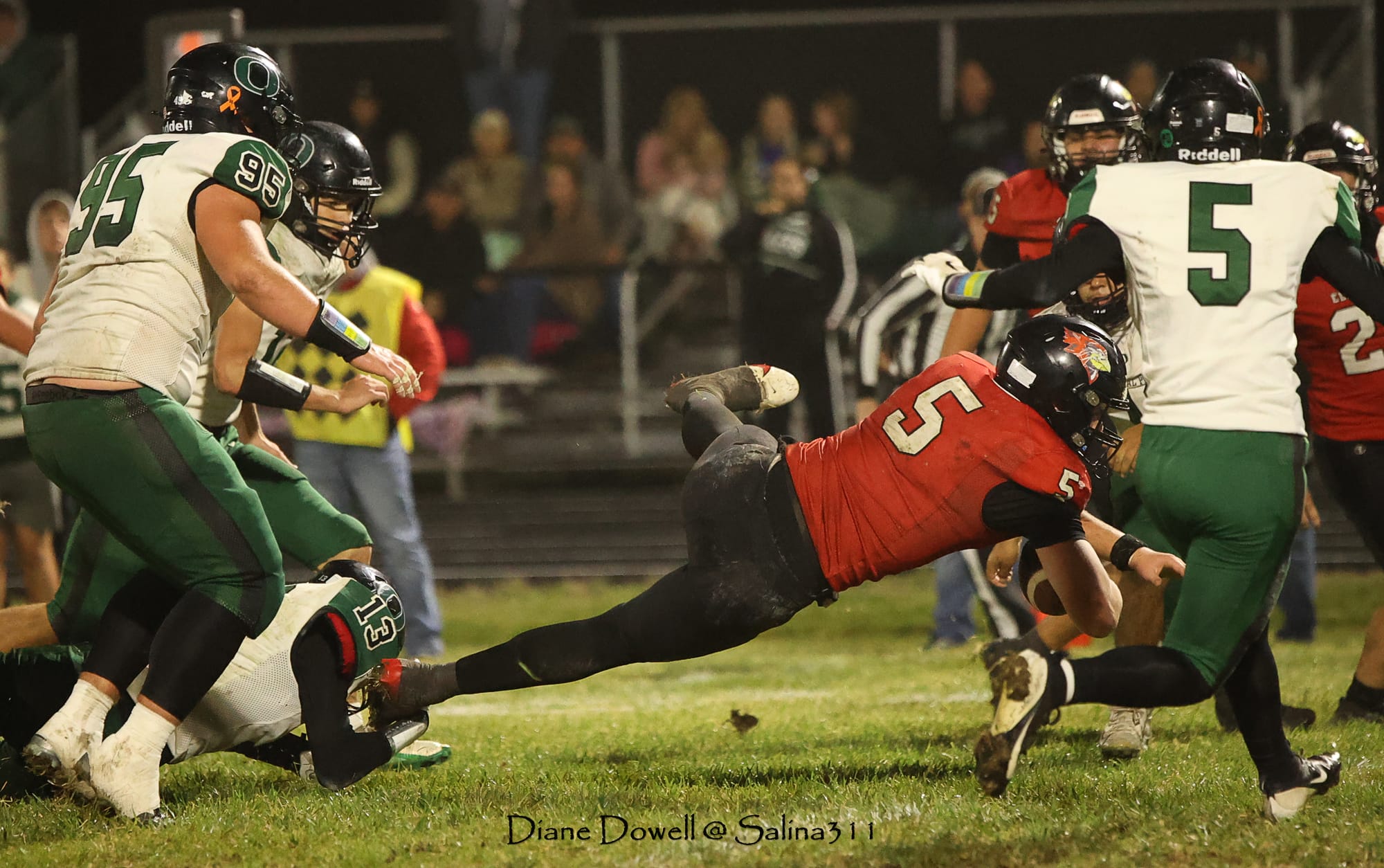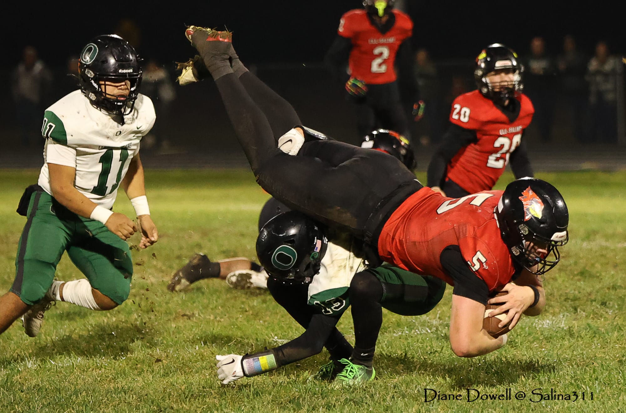 Brookville, KS- October 24, 2025, marked the final regular season game before district playoffs begin next week. The Central Plains Oilers with a 5-2 record traveled to Brookville for Ell-Saline's Sr. Night recognition game. The Cardinals entered the night with a 6-1 record. The Friday Night Lights were on, and the fans pulled out their umbrellas and bundled up for a soggy night of football.
