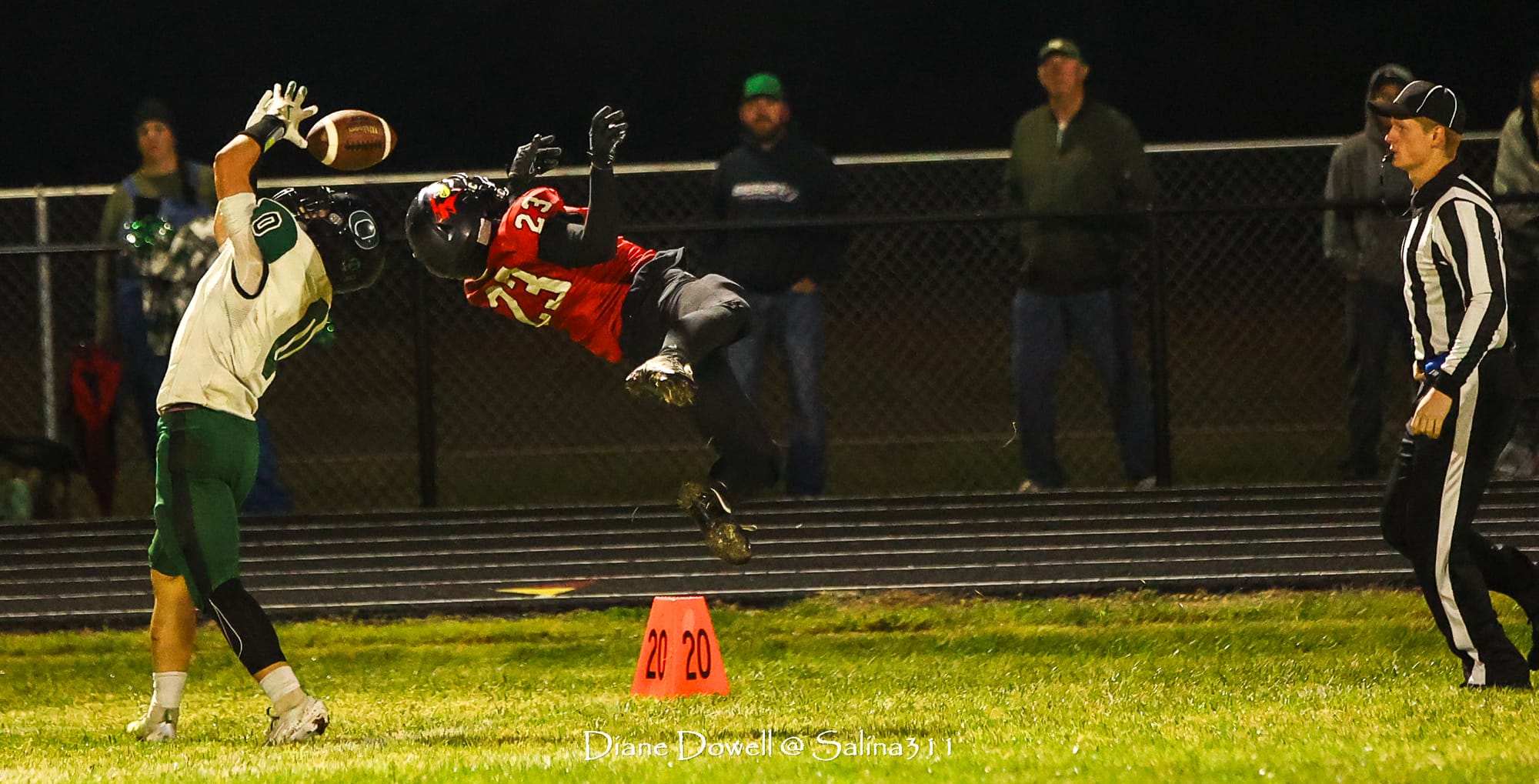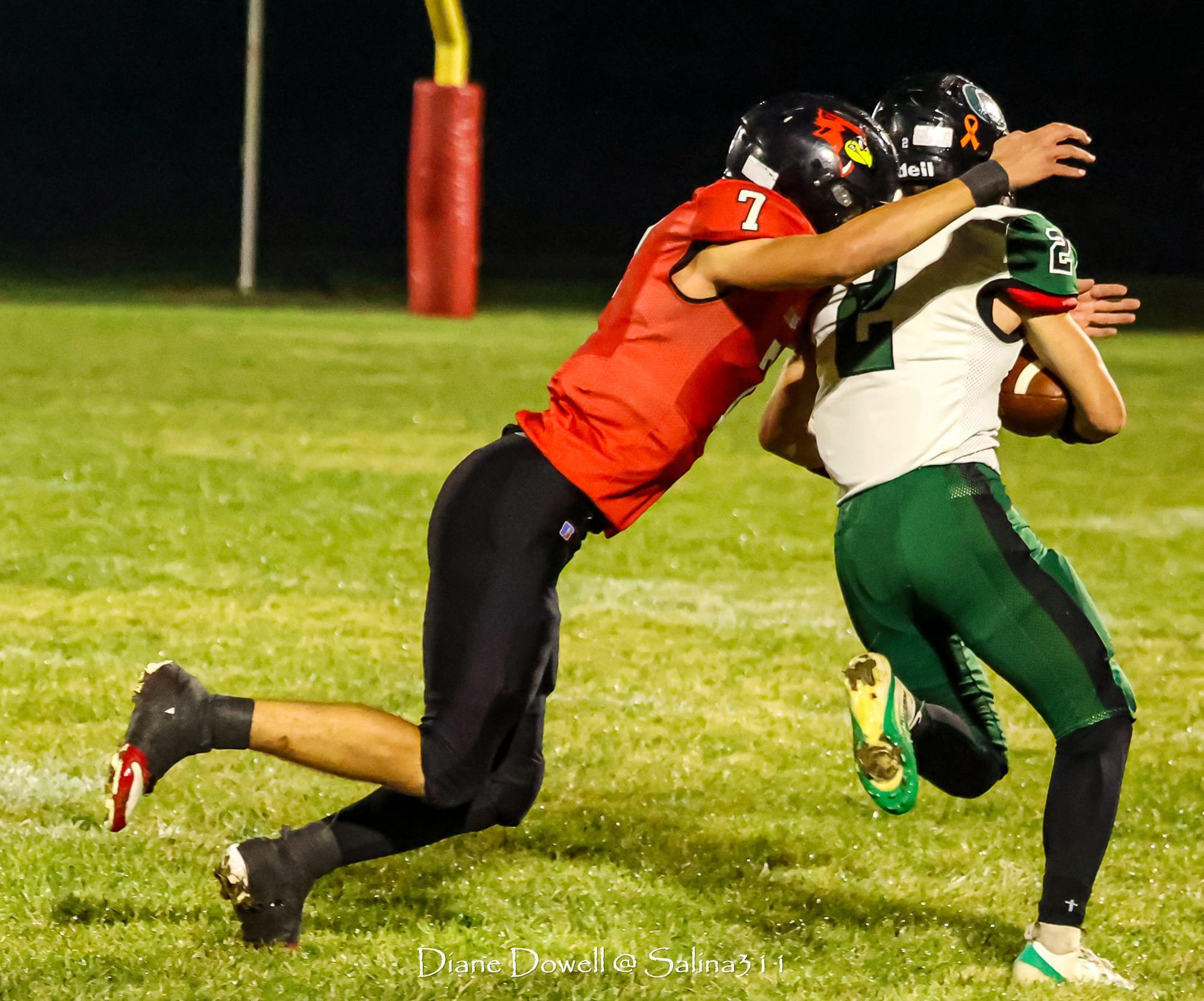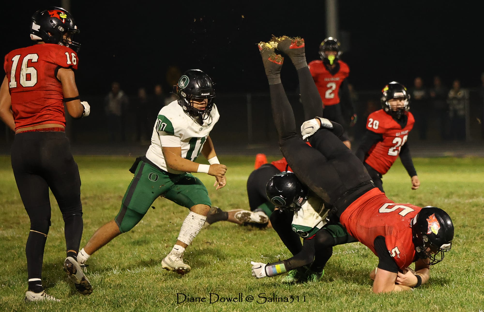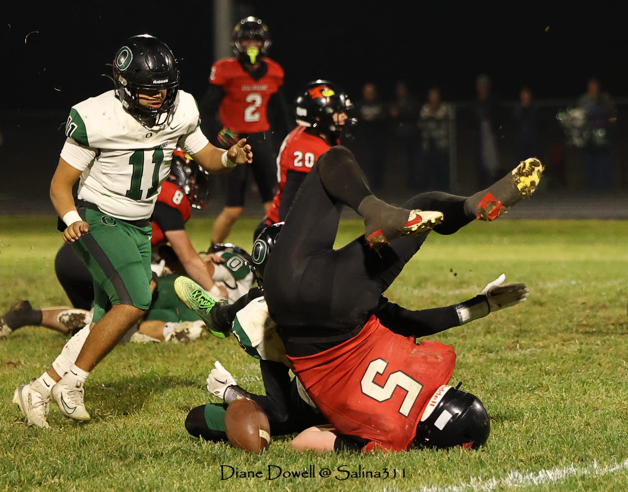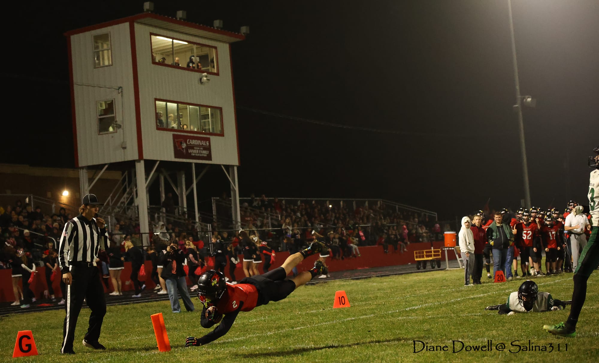 Brookville, KS- October 24, 2025, marked the final regular season game before district playoffs begin next week. The Central Plains Oilers with a 5-2 record traveled to Brookville for Ell-Saline's Sr. Night recognition game. The Cardinals entered the night with a 6-1 record. The Friday Night Lights were on, and the fans pulled out their umbrellas and bundled up for a soggy night of football.