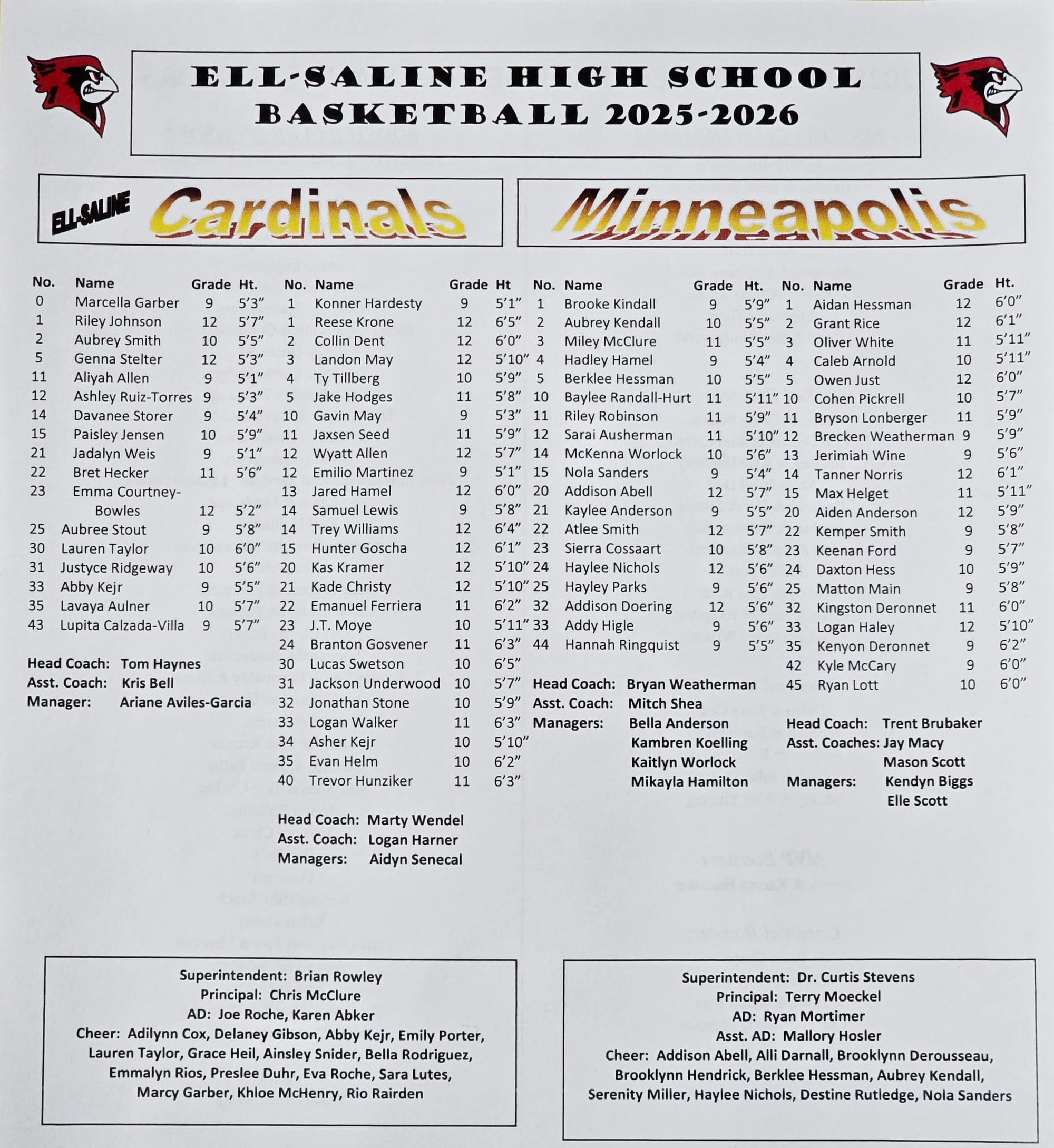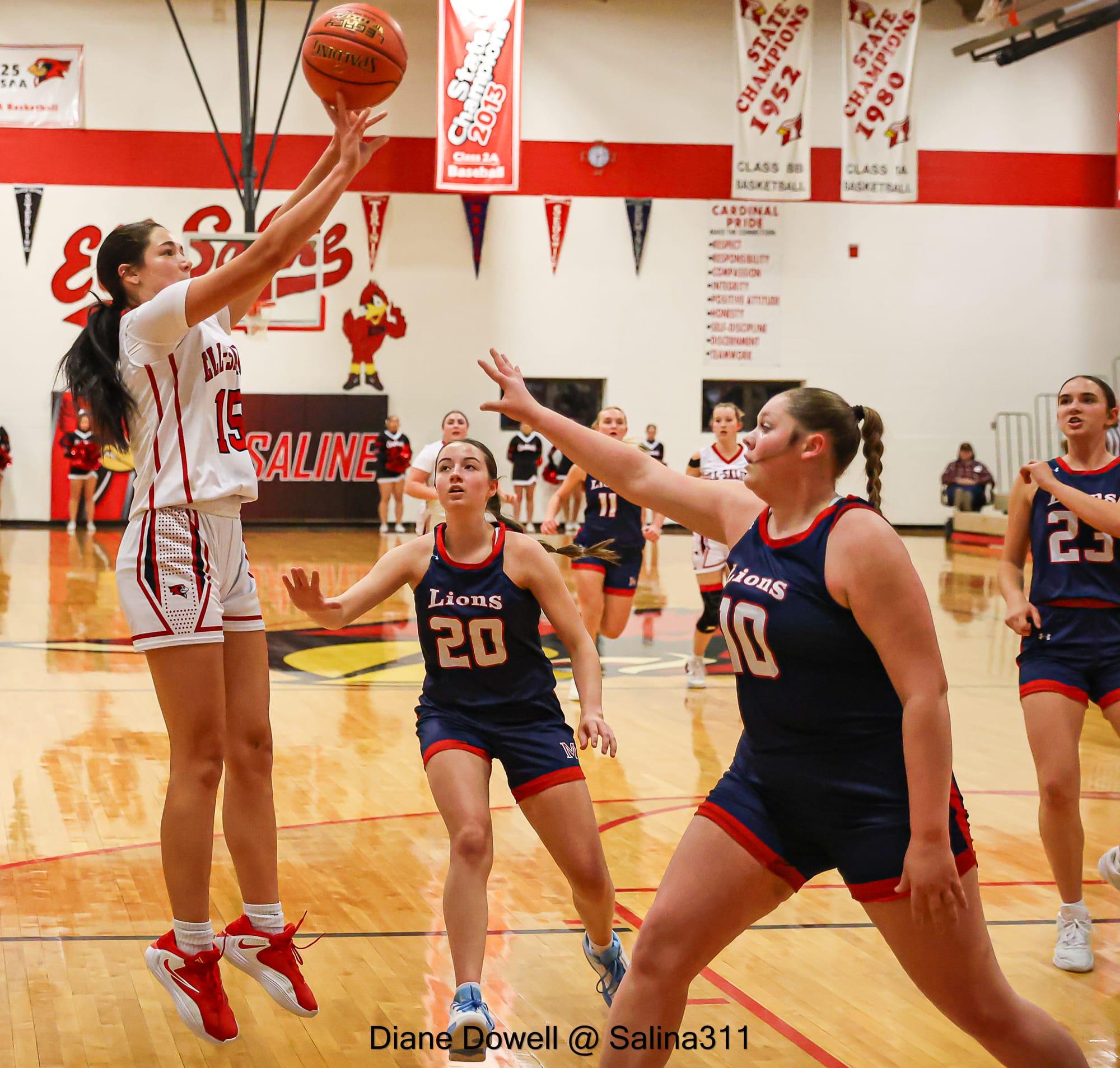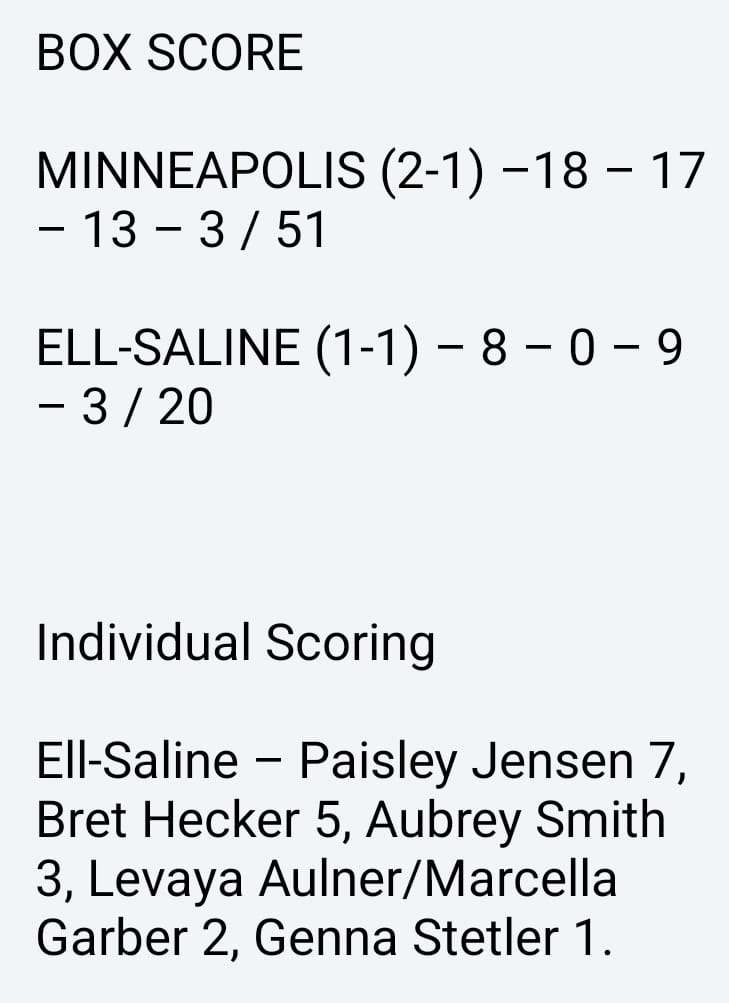 Although the Ell-Saline Girls basketball team came up short against the Minneapolis Lions in their home game, they never stopped fighting up to the final buzzer. Final score 20-51.
