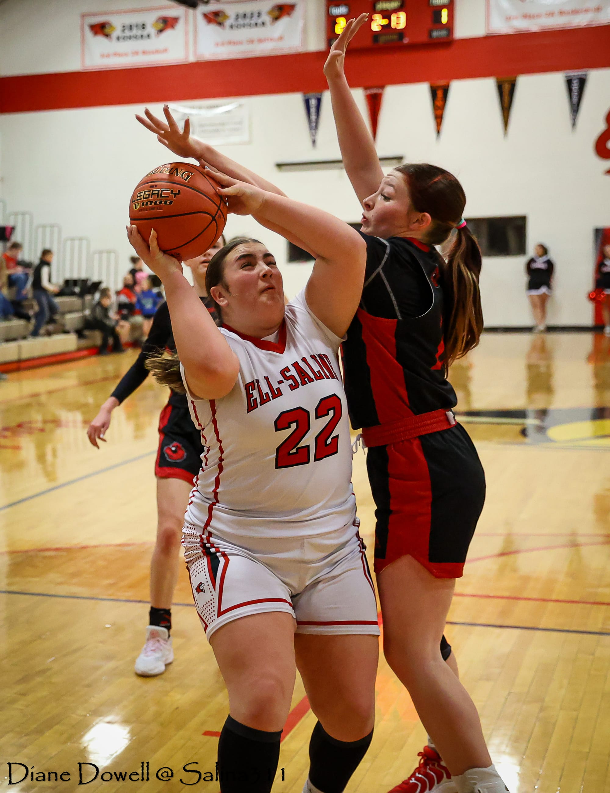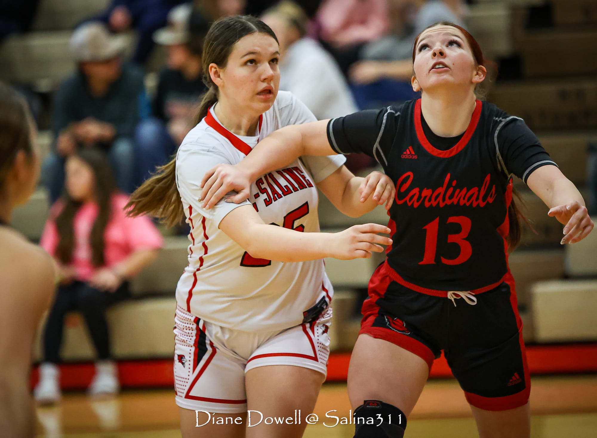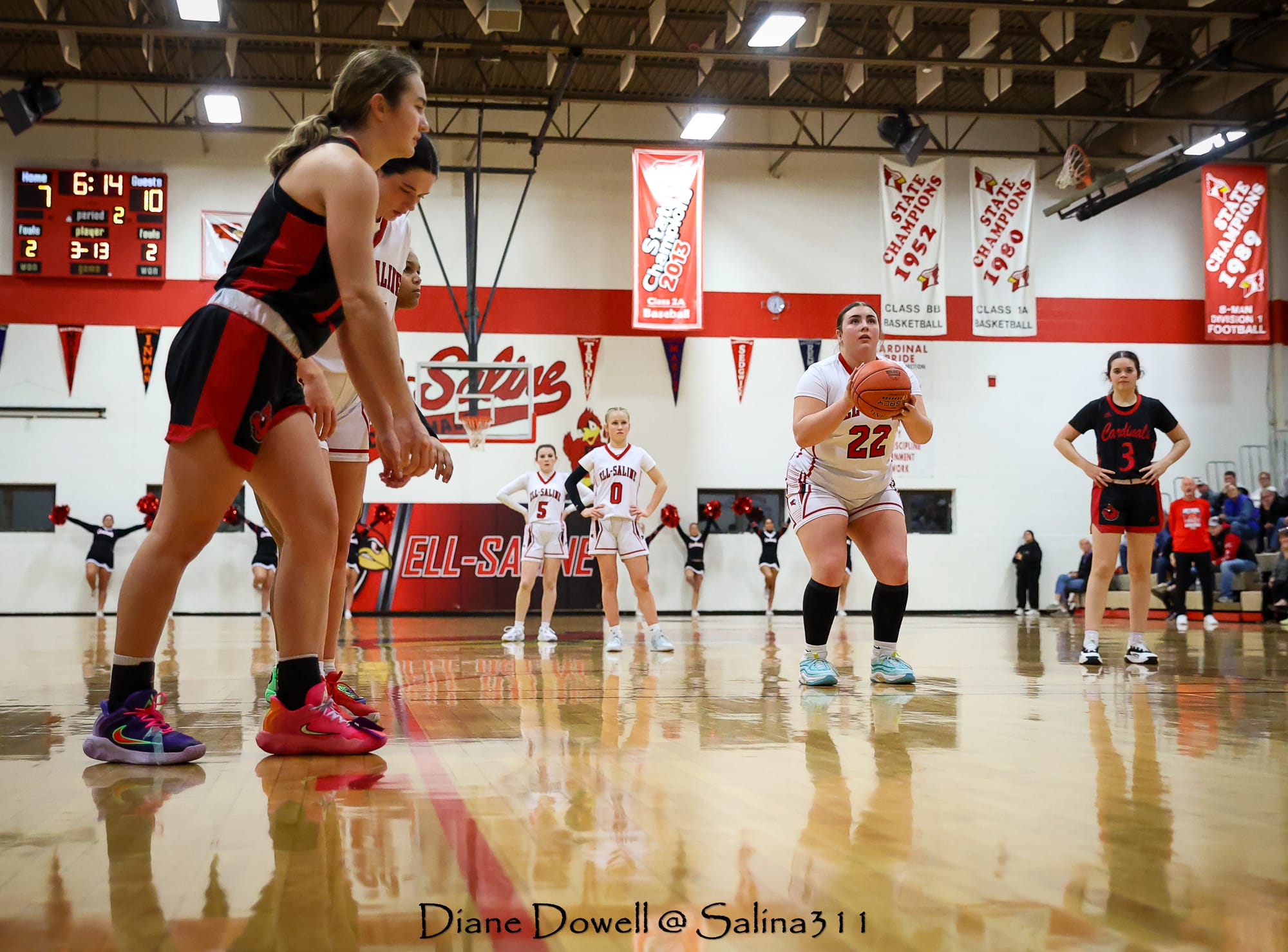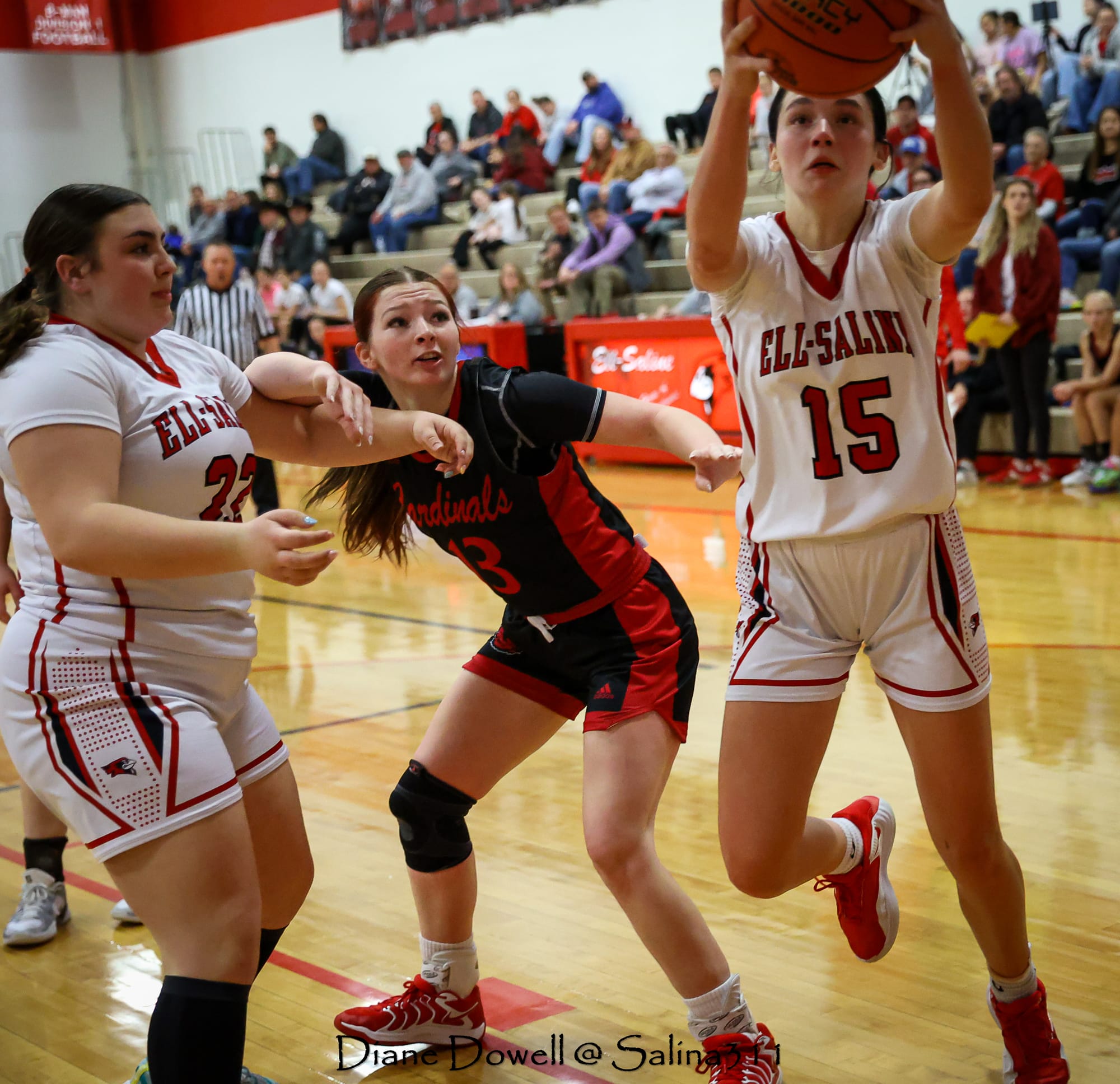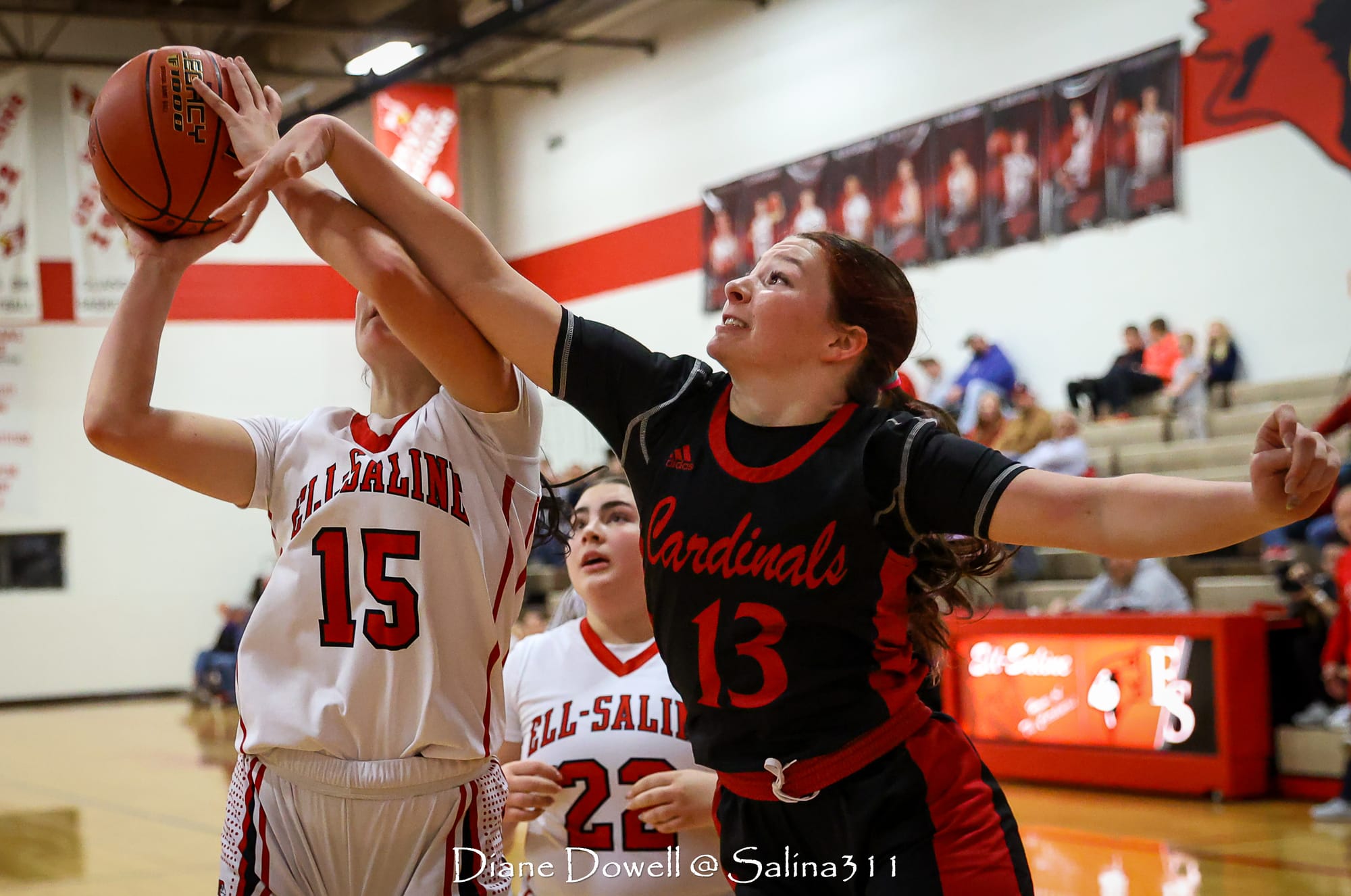 The Ell-Saline Cardinals put up a valiant fight, but came up short, falling to the Sedgwick Lady Cardinals 41-53.