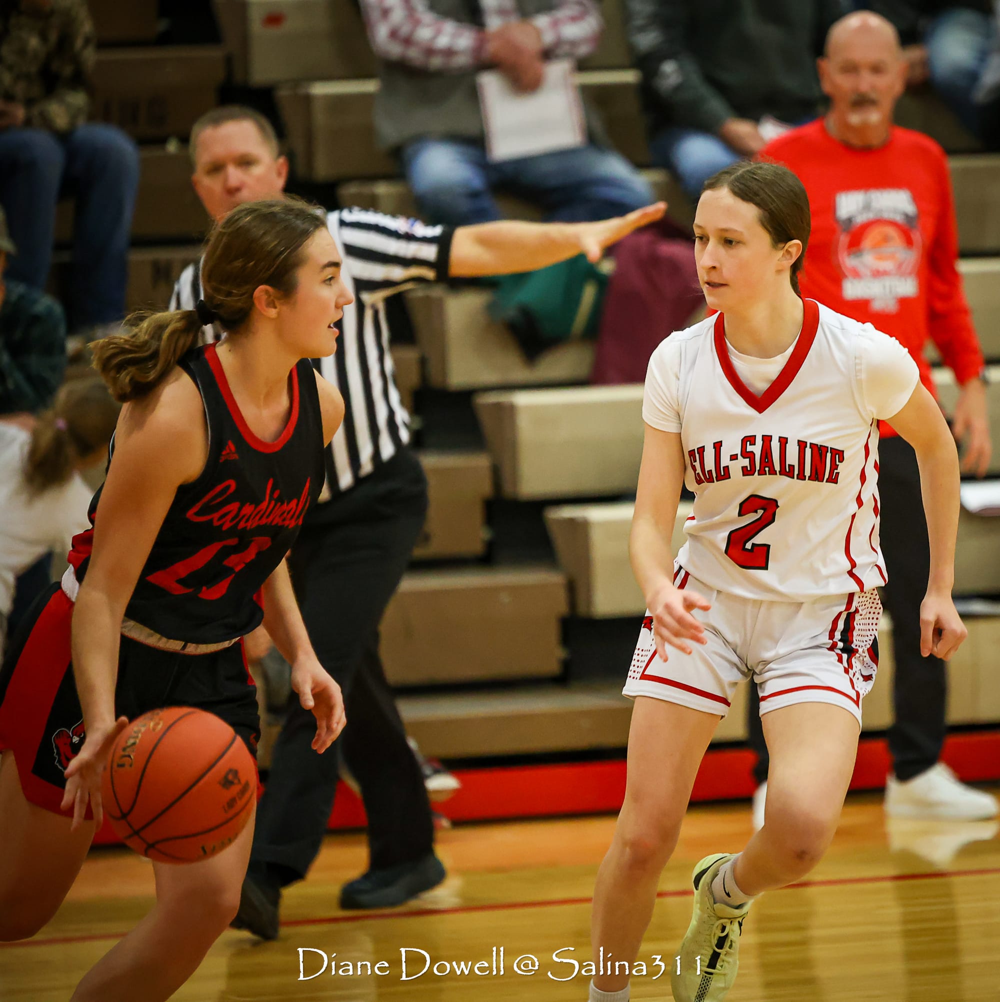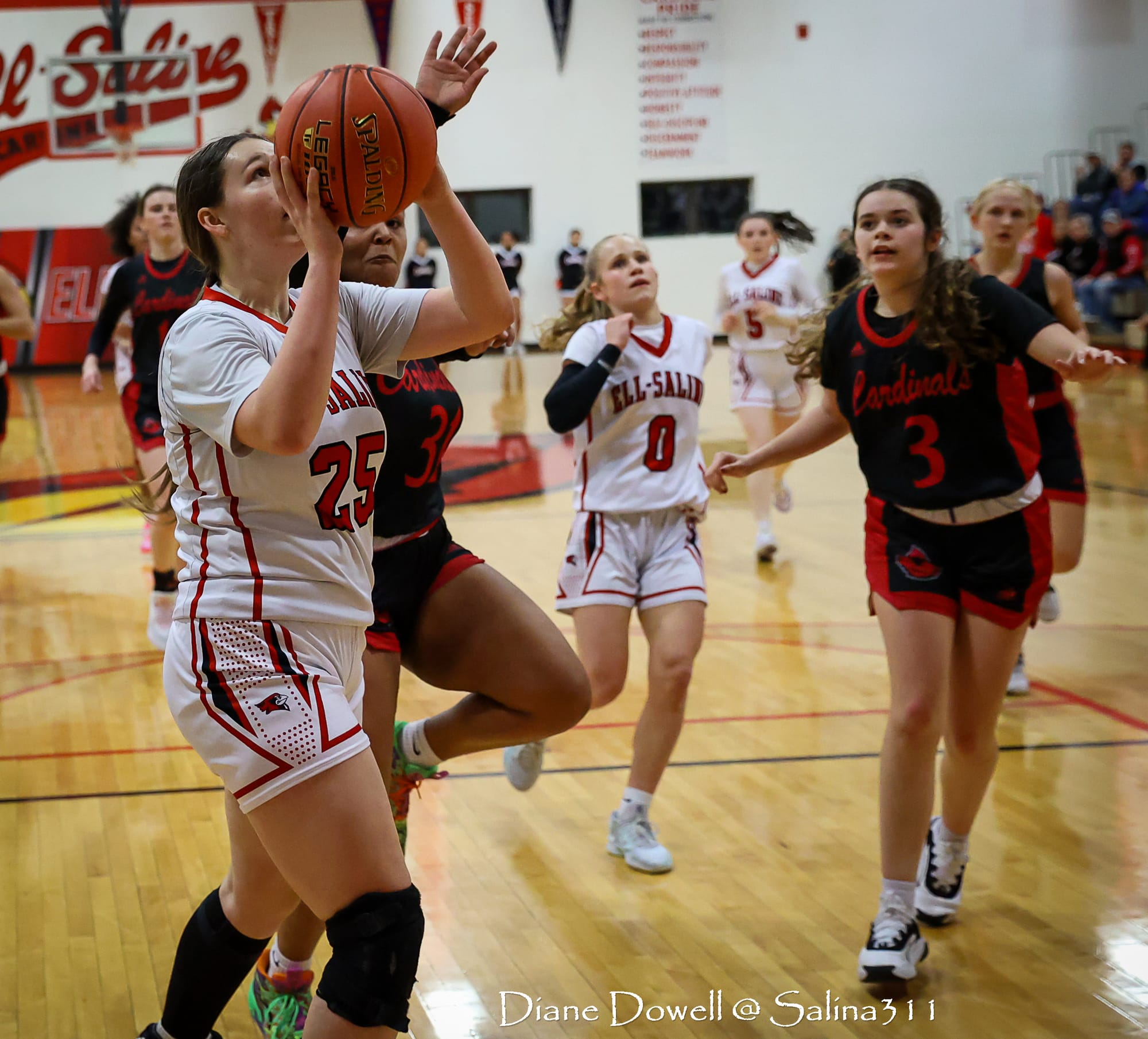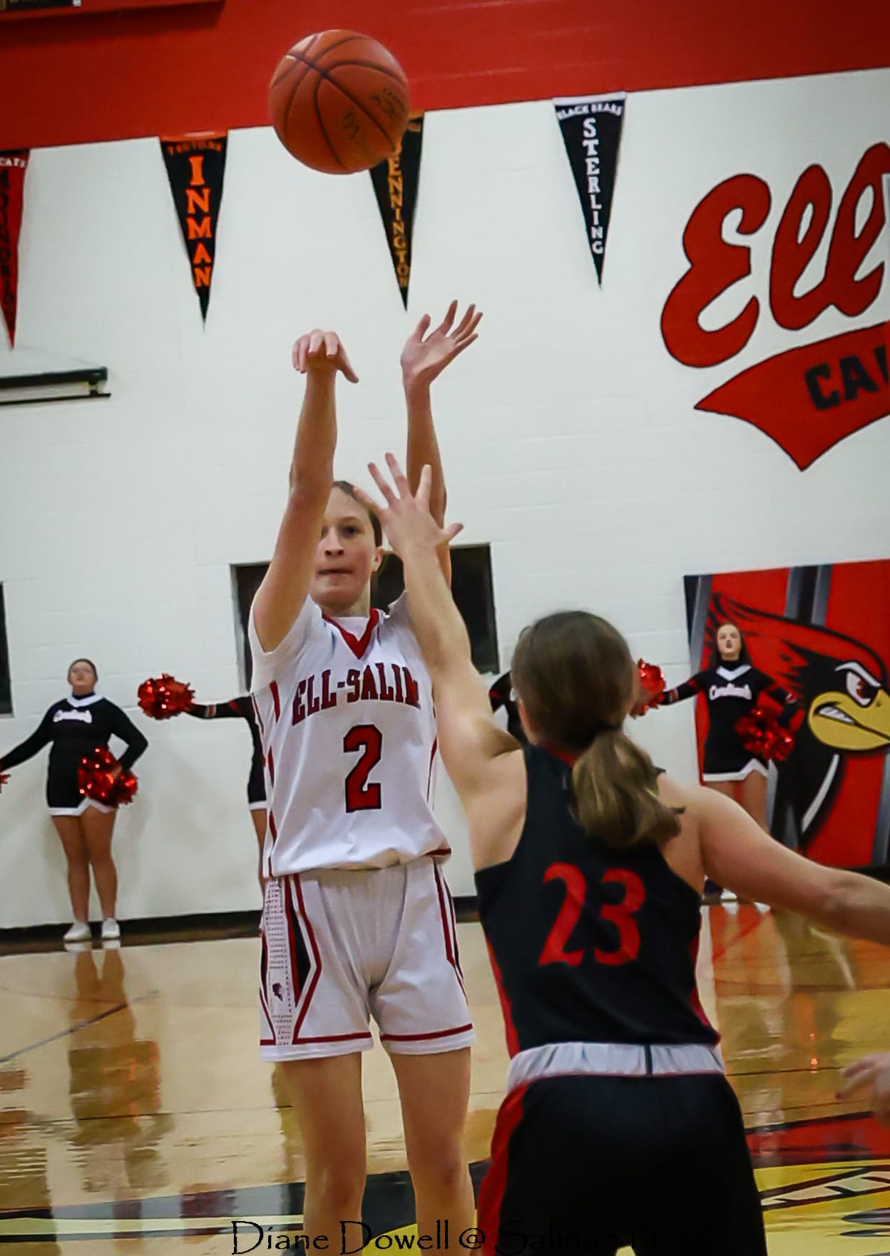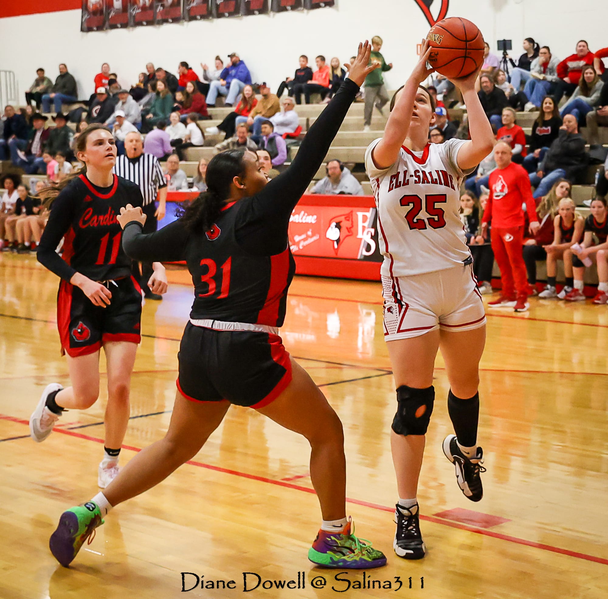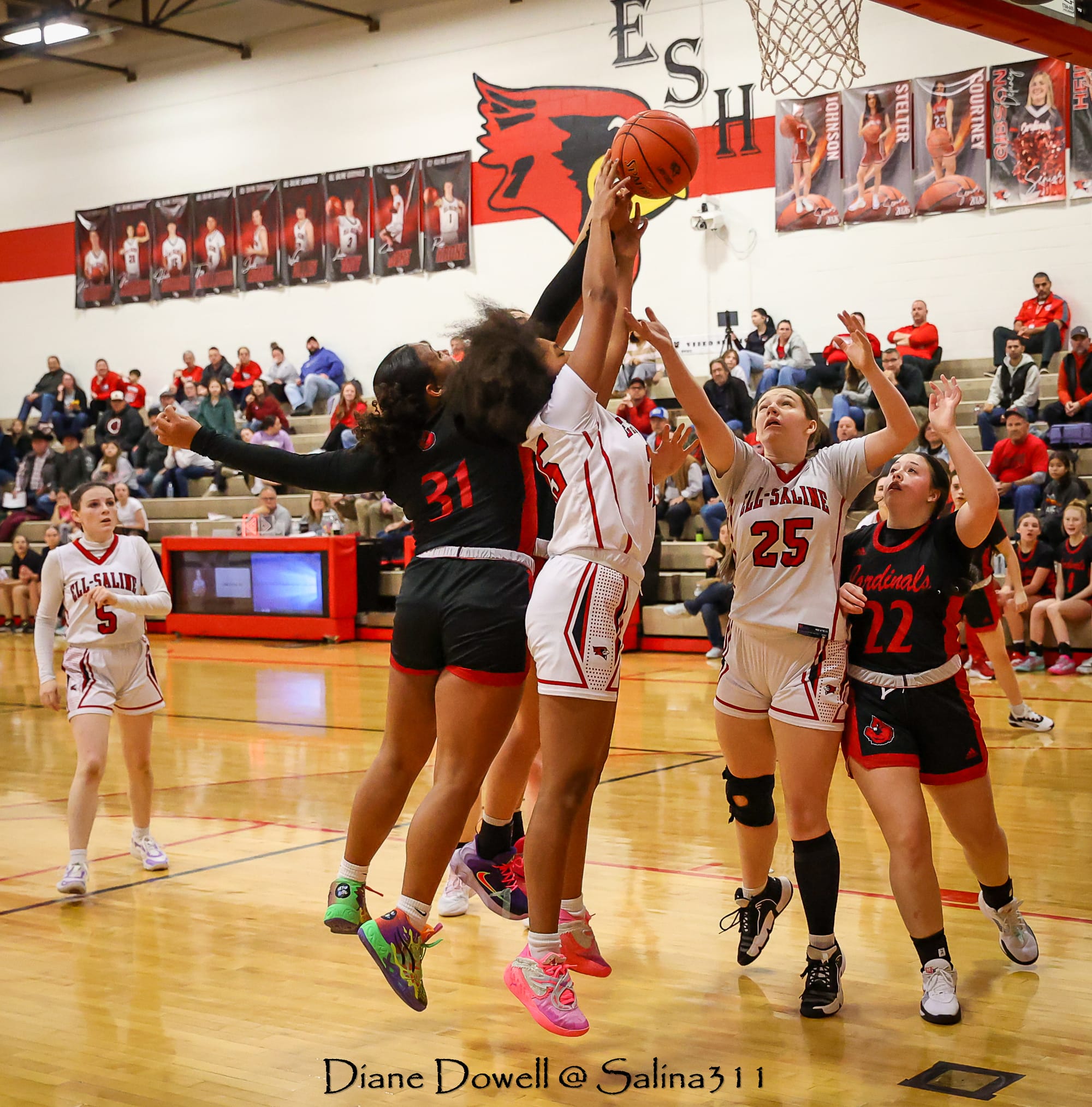 The Ell-Saline Cardinals put up a valiant fight, but came up short, falling to the Sedgwick Lady Cardinals 41-53.