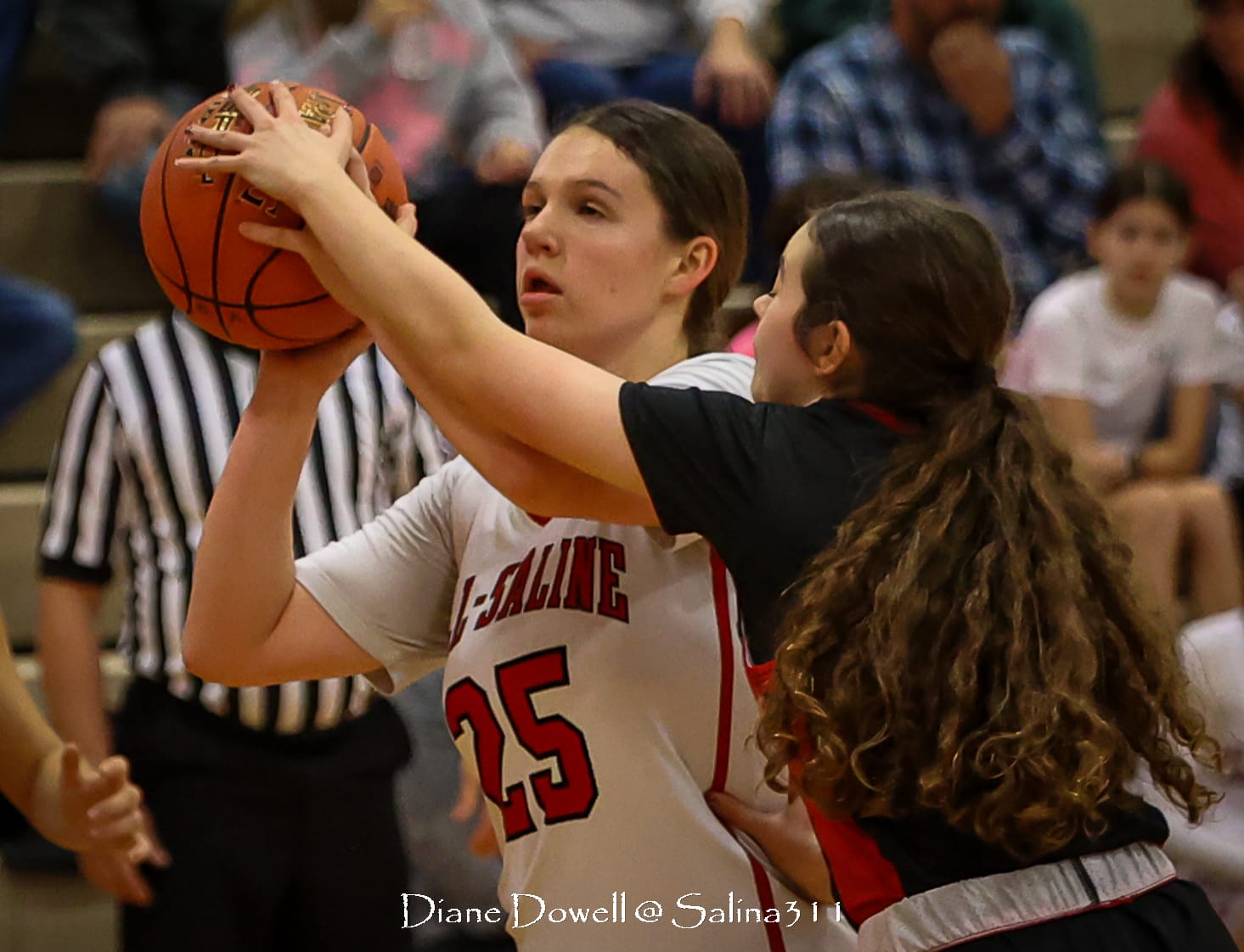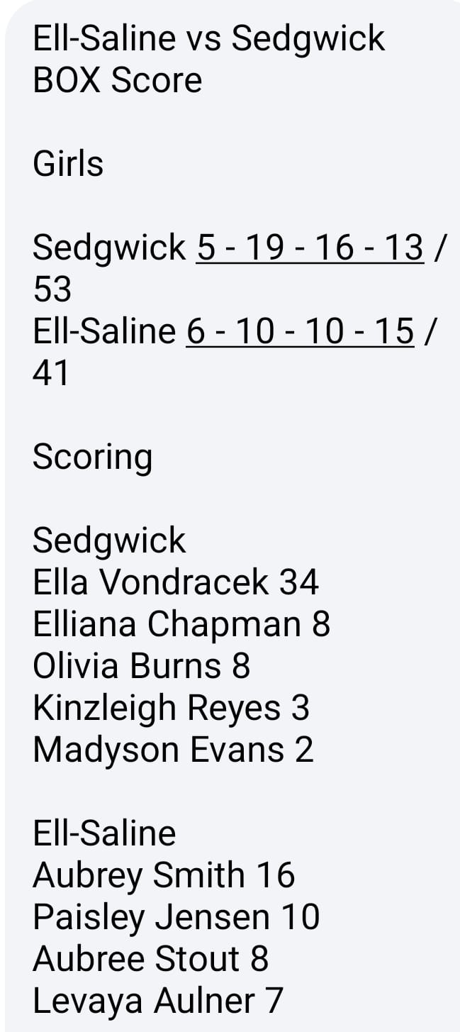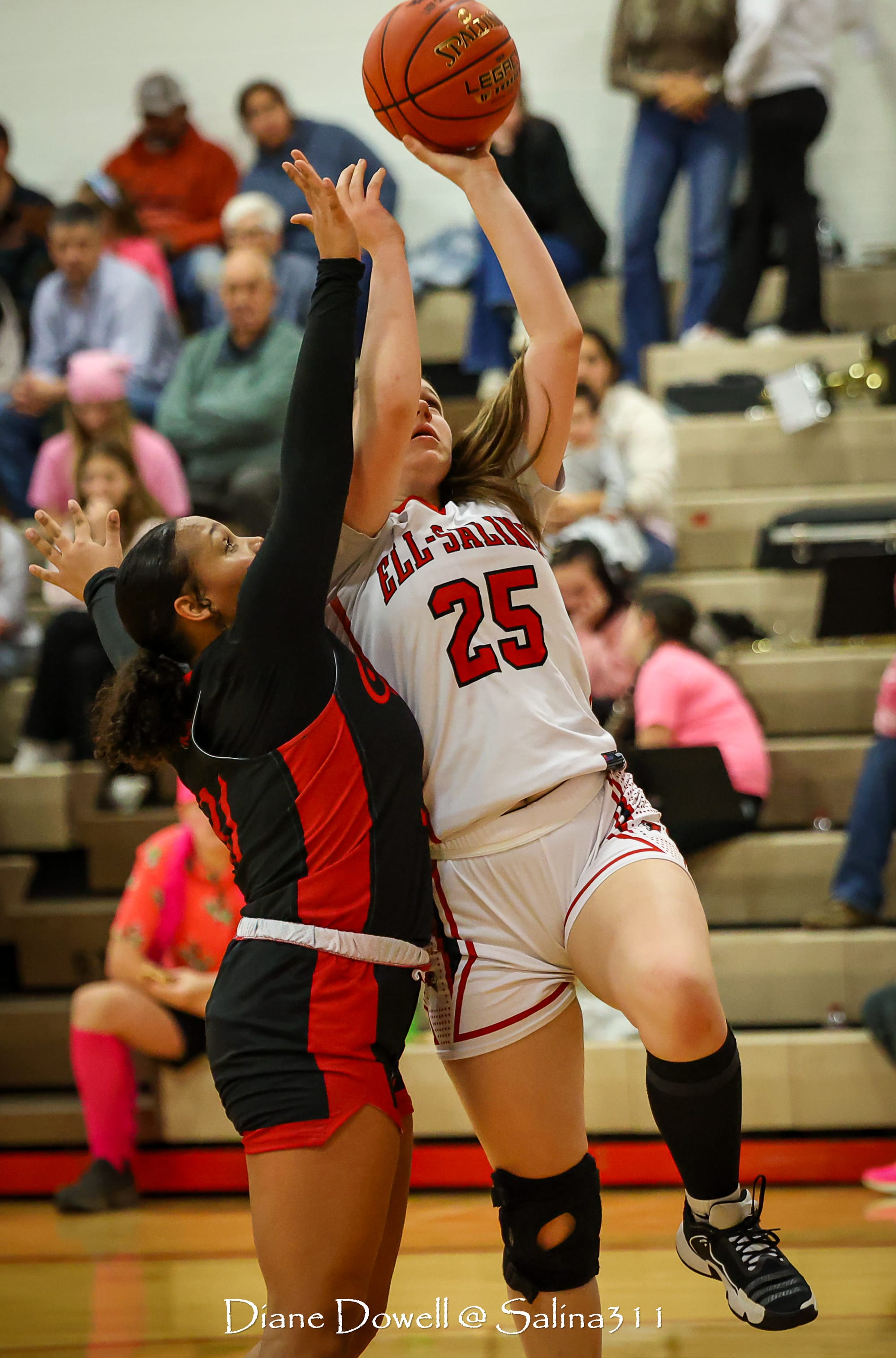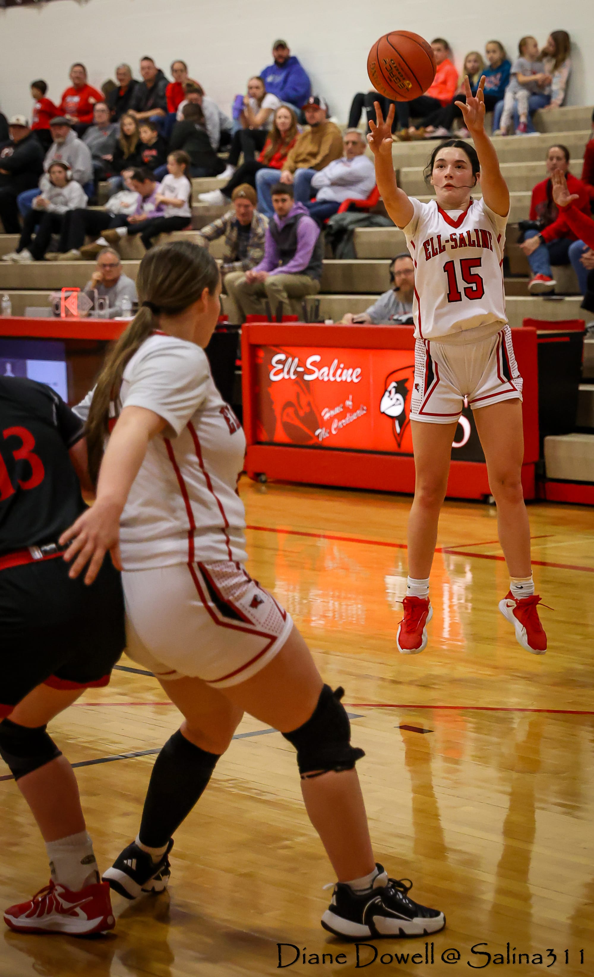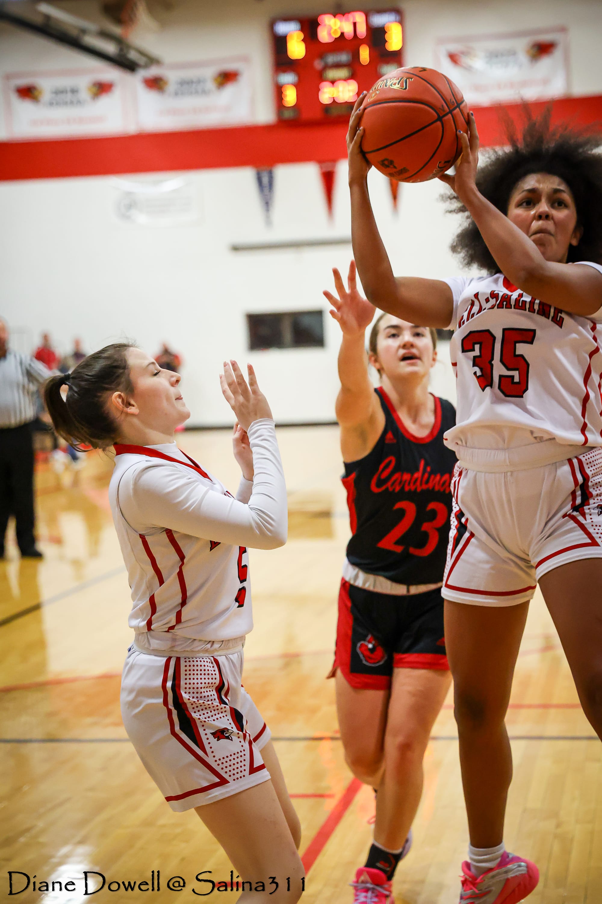The Ell-Saline Cardinals put up a valiant fight, but came up short, falling to the Sedgwick Lady Cardinals 41-53.