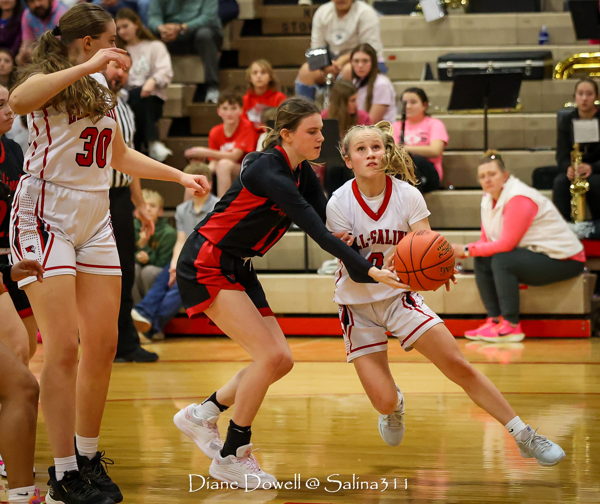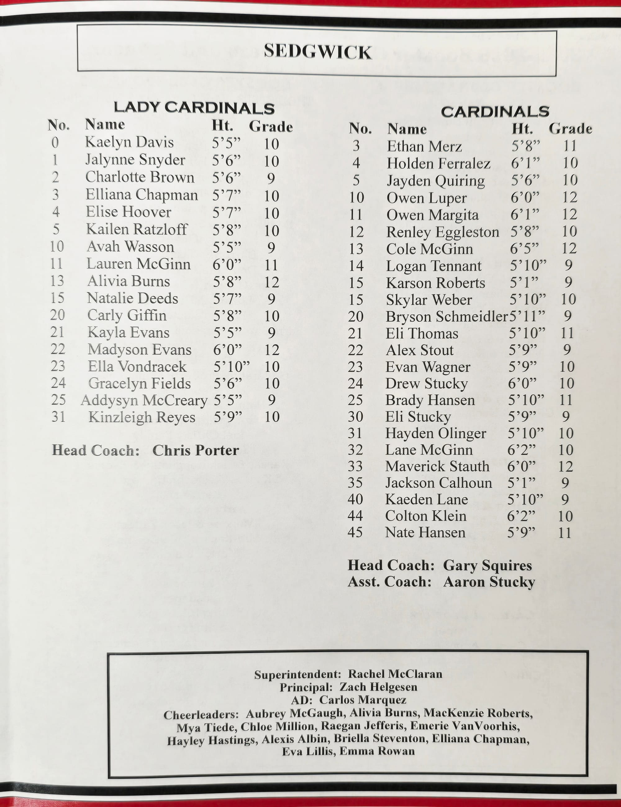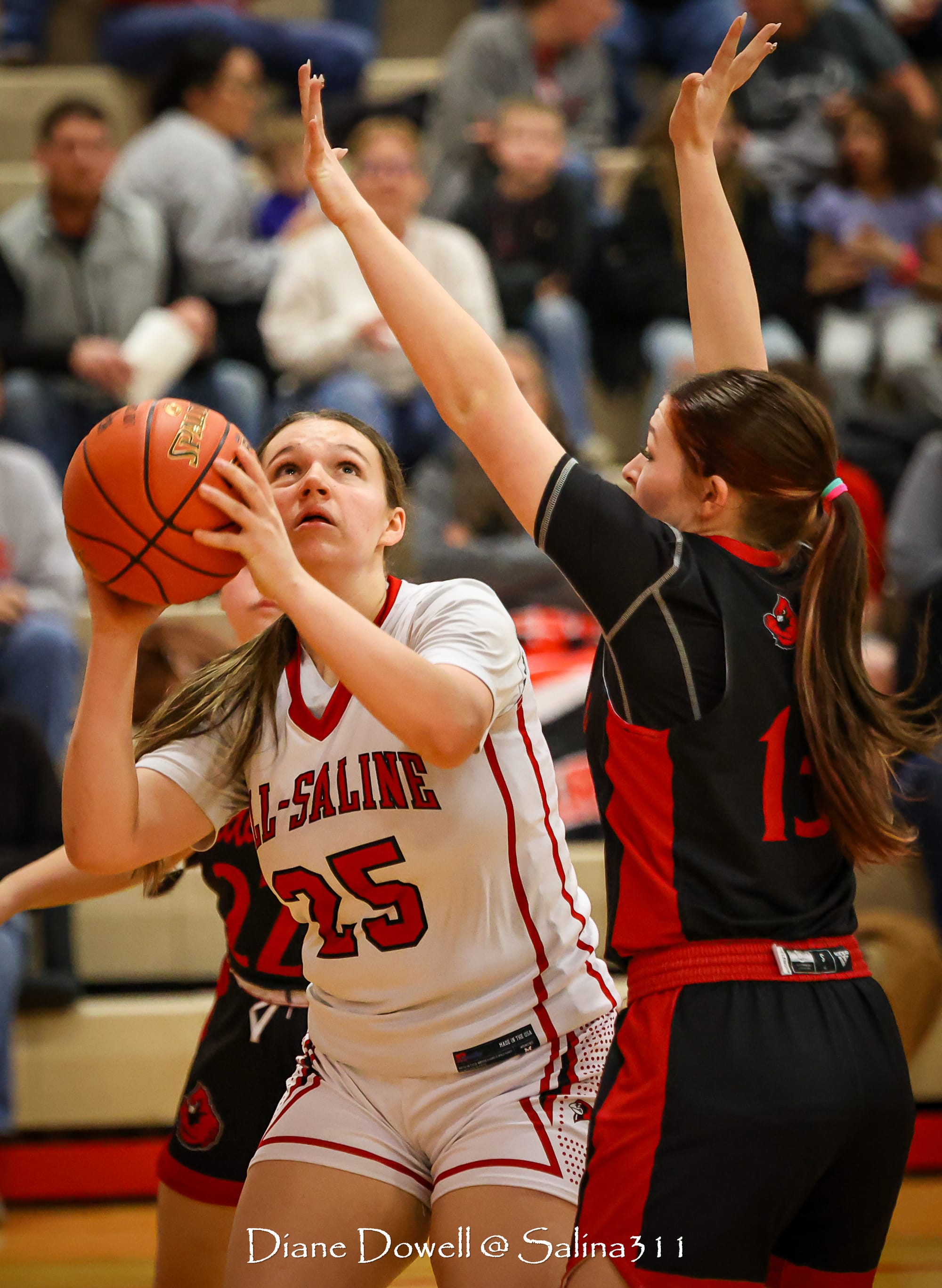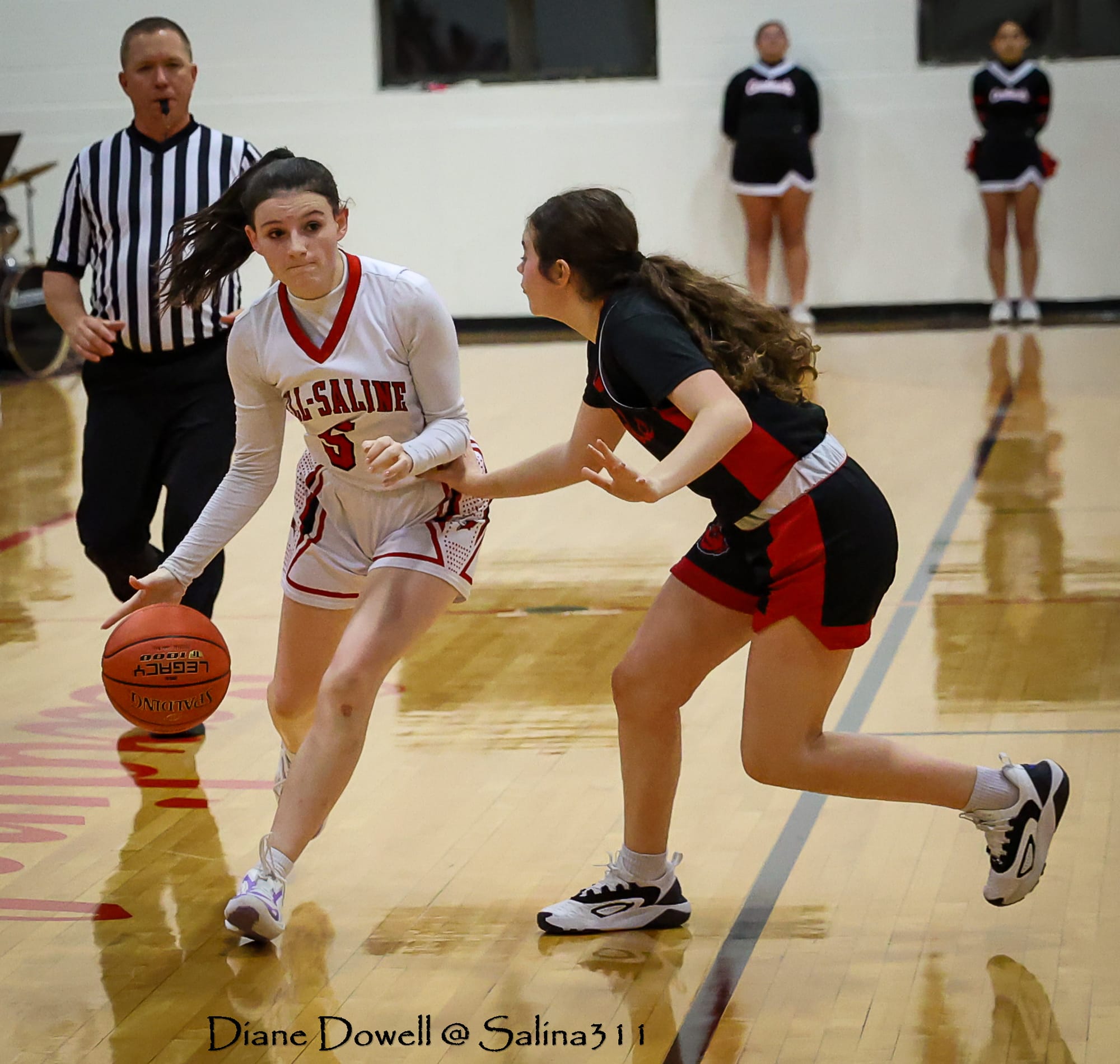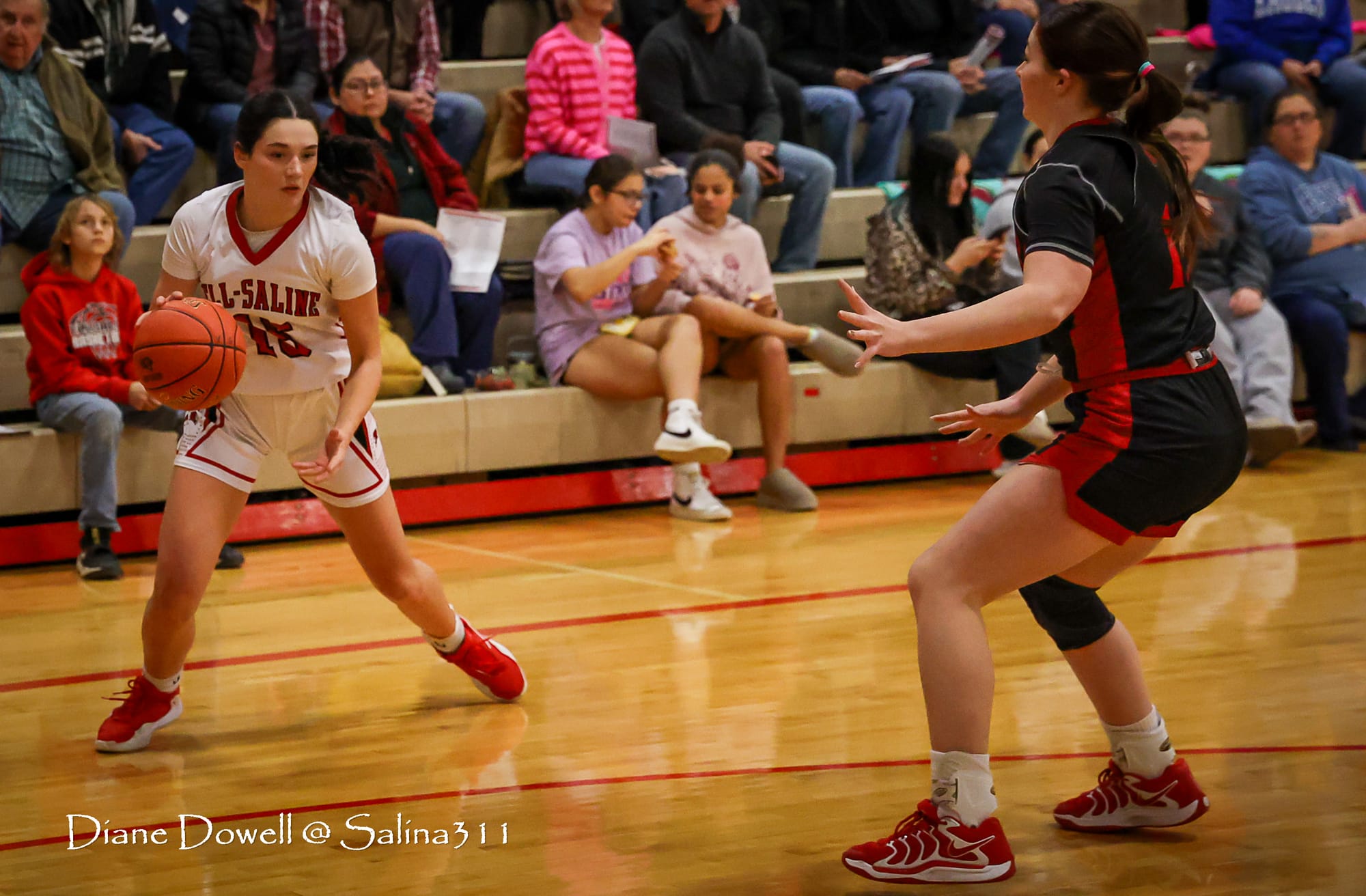 The Ell-Saline Cardinals put up a valiant fight, but came up short, falling to the Sedgwick Lady Cardinals 41-53.