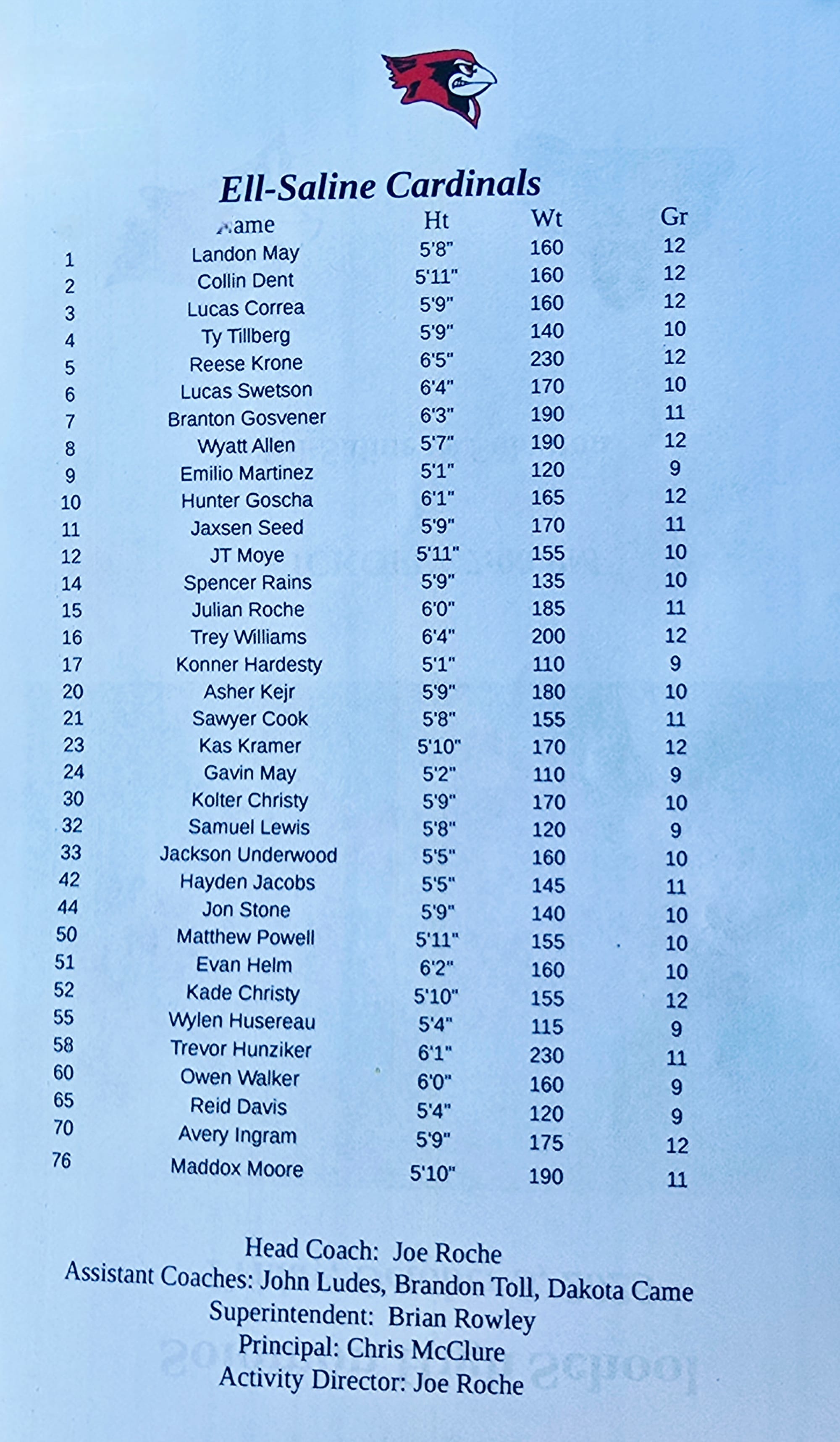 Ell-Saline started out strong and finish with a punch. The game was called at half time due to the Cardinals being up 50-0. They will play at home, in Brookville, on October 10, 2025, against Little River. Homecoming crowning will take place so be sure to make the short drive and watch the Cardinals in action.