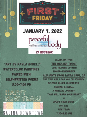 This Friday, is First Friday in Downtown Salina! A perfect way to end the first week of the New year!