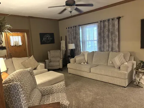 Outdoor living stands out here. Off the kitchen is a large covered deck, built for gatherings and relaxed evenings. The property includes a detached two-car garage/mancave with alley access and additional parking.