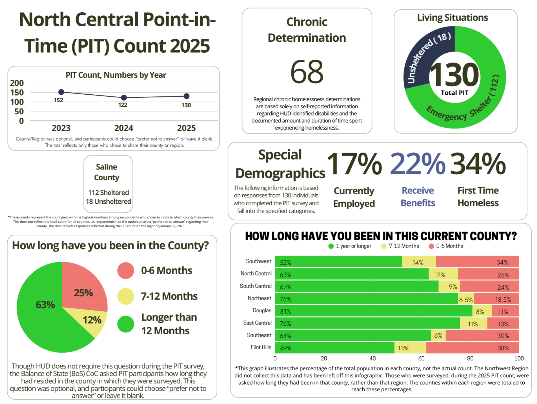 “Beyond the annual Point-in-Time (PIT) count, homelessness data for this region is collected and maintained through the Kansas Statewide Homeless Coalition,” Martin said.