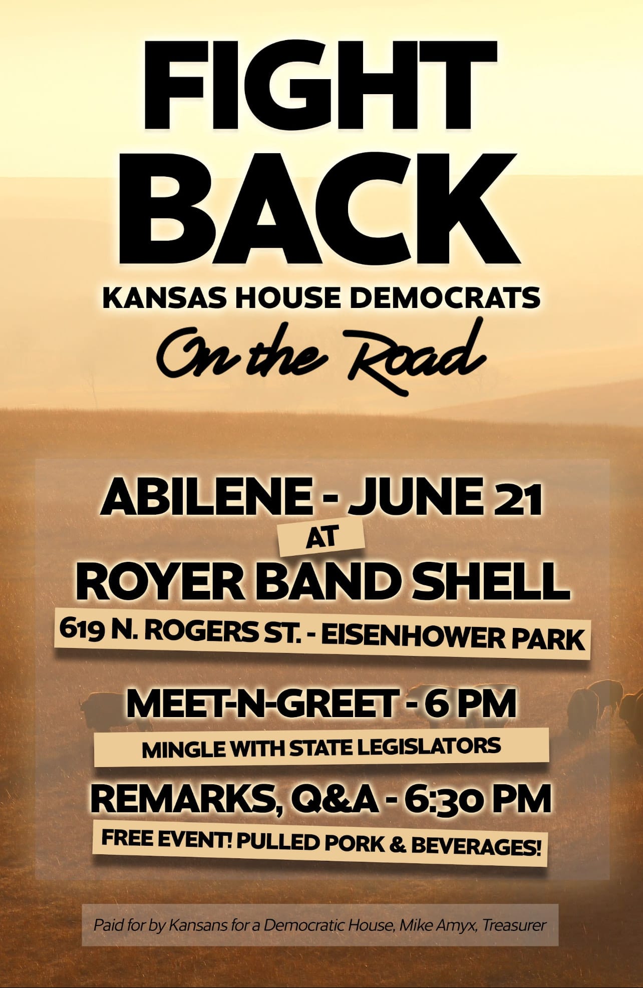 The Kansas House Democrats' Fight Back Tour, a statewide initiative aimed at engaging directly with Kansans, is heading to Abilene, Kansas, on Saturday, June 21.