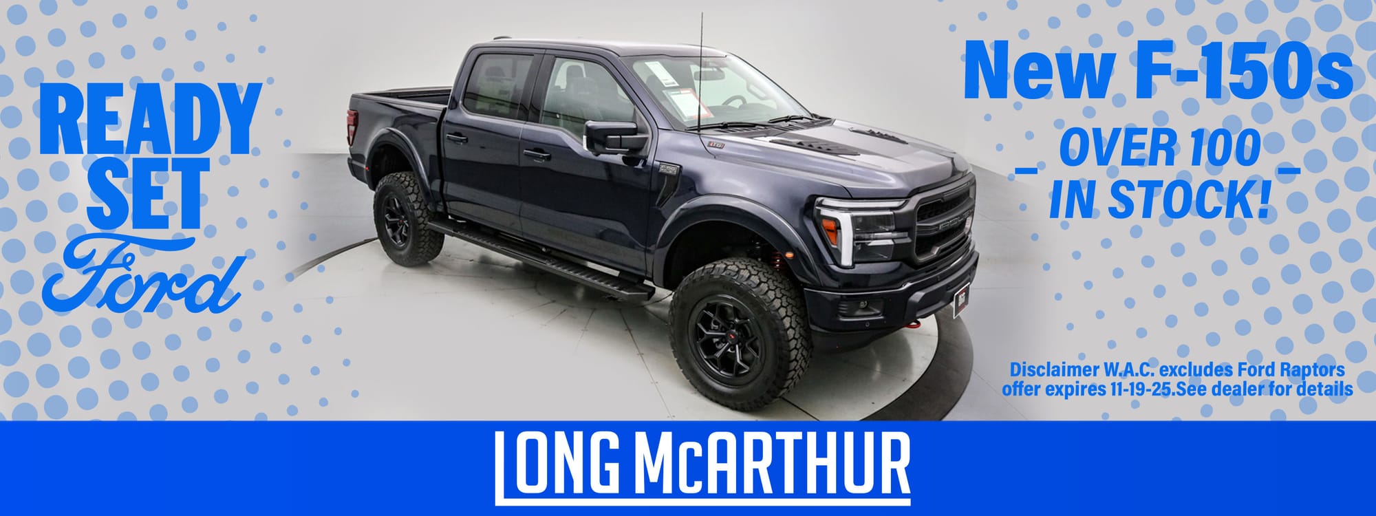 Long McArthur Ford has announced a new financing offer on select new Ford F-150 trucks, featuring 0.0% APR for 60 months and no payments for 90 days, available for a limited time.