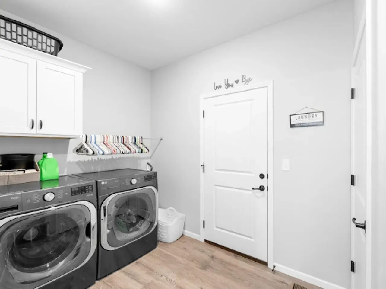 The spacious laundry room includes a boot bench and cubbies. The basement layout offers 2 bedrooms, a bonus room, full bathroom, storage space, and another electric fireplace for added ambience.