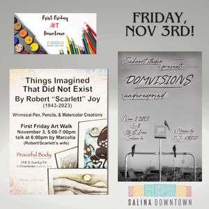 November First Friday is on November 3 in Downtown Salina. Make sure you visit Peaceful Body Wellness Retreat for their artist reception from 5-7. Subvert Studio has an artist reception and music by DJ Kidd from 5-8.