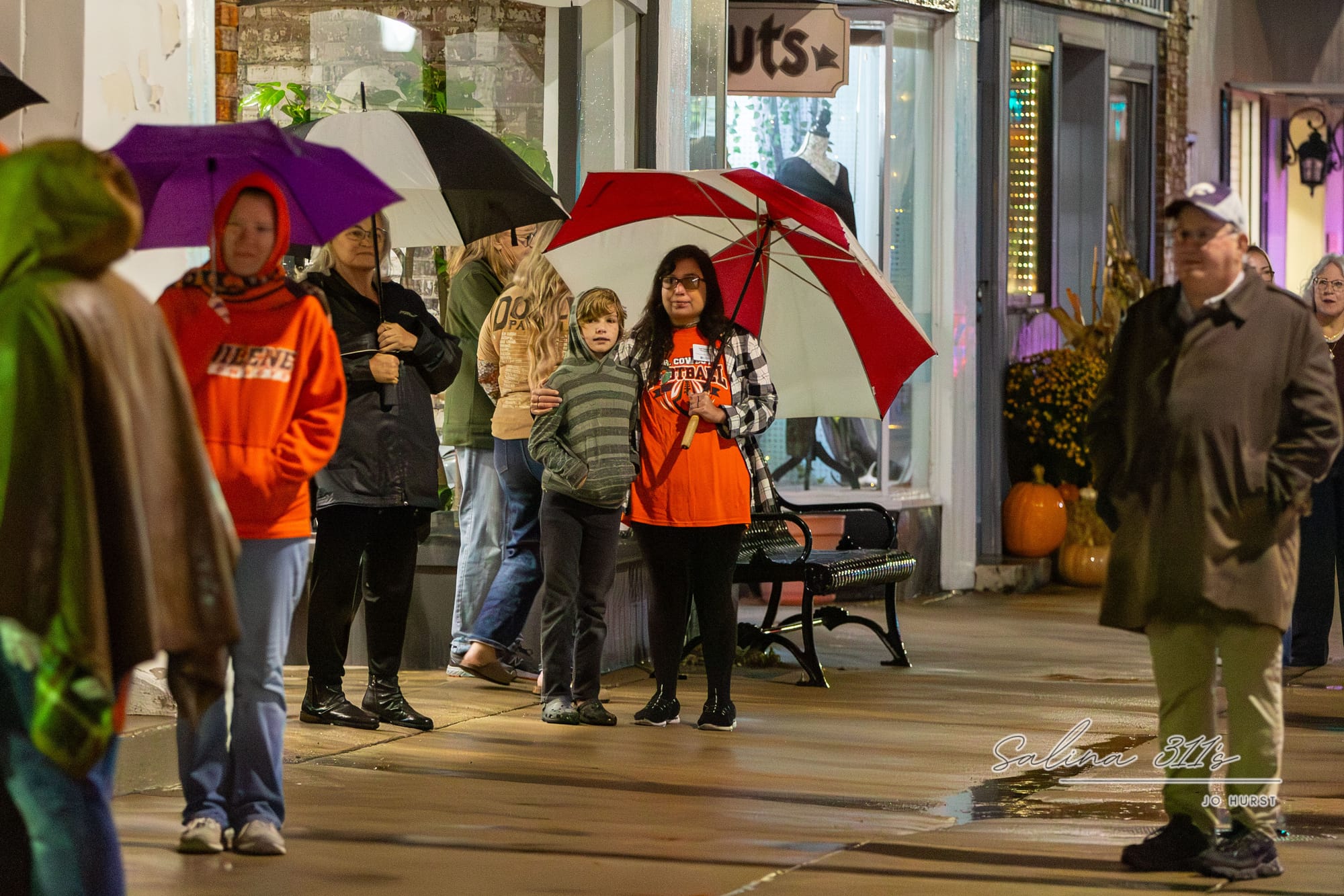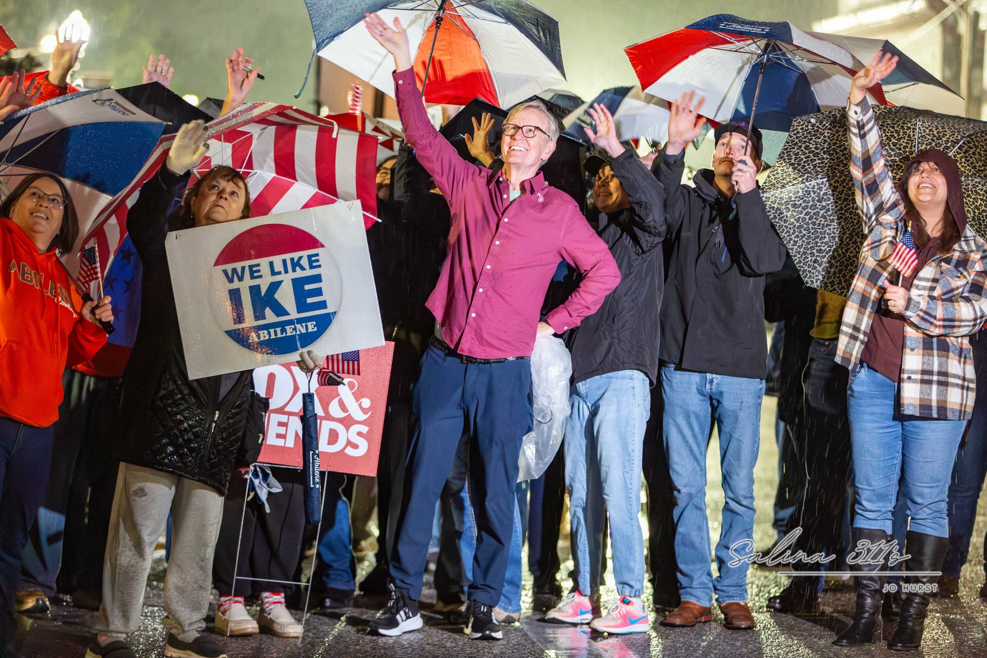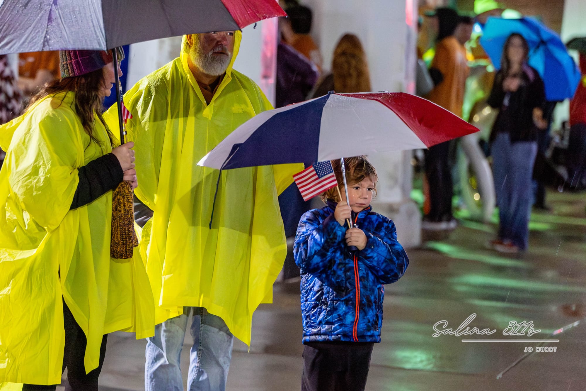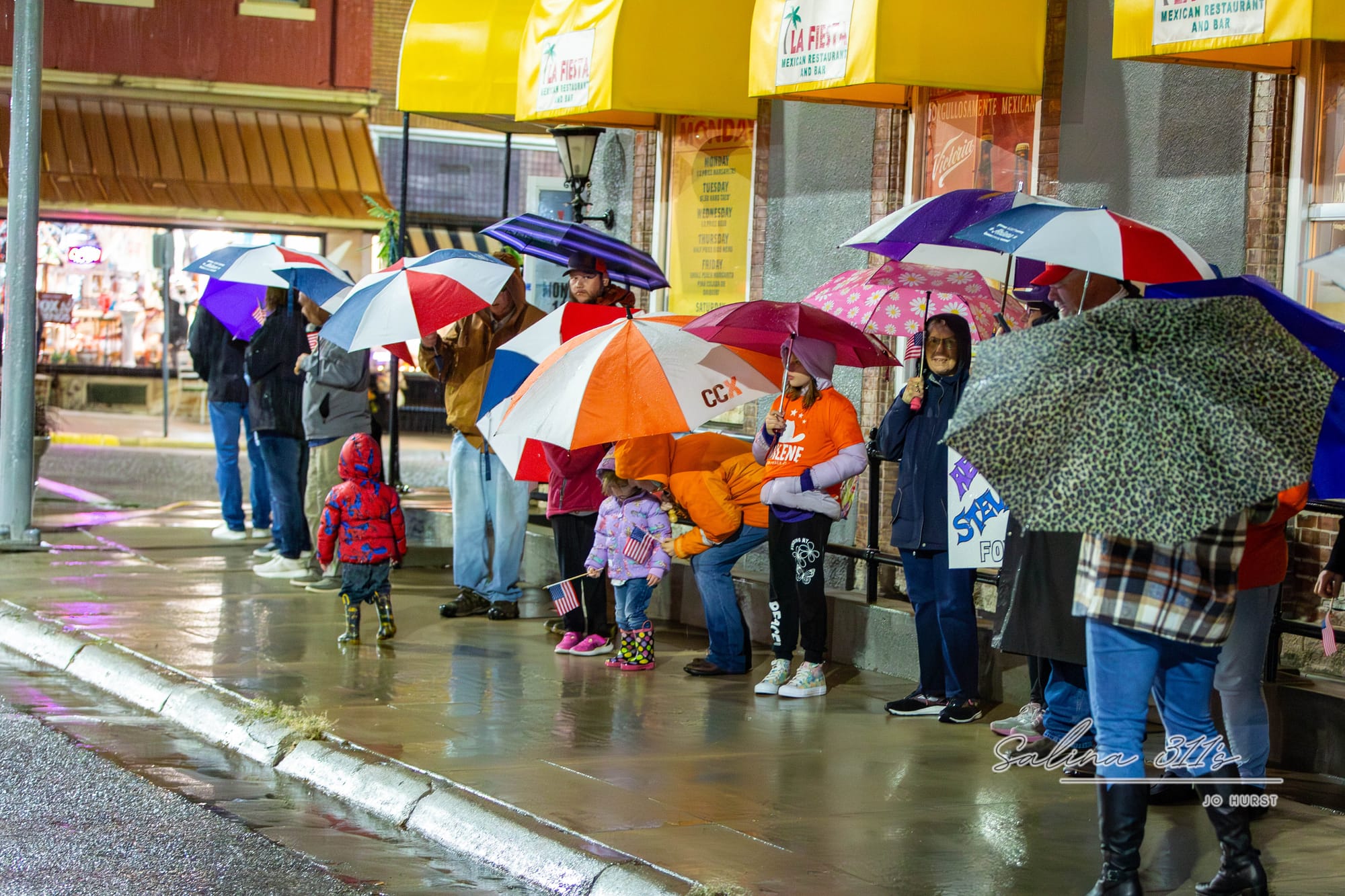 Downtown businesses opened early, and local manufacturers showcased products made in Abilene. The city’s Greyhounds mascot and several dogs were also part of the crowd—drawing onlookers despite umbrellas and wet conditions.