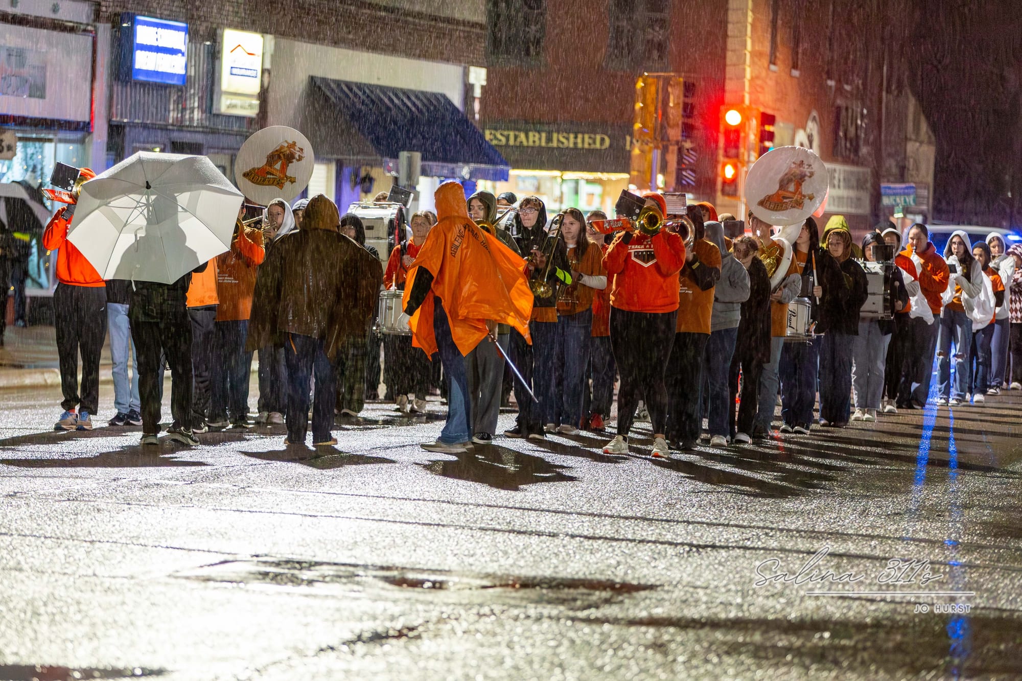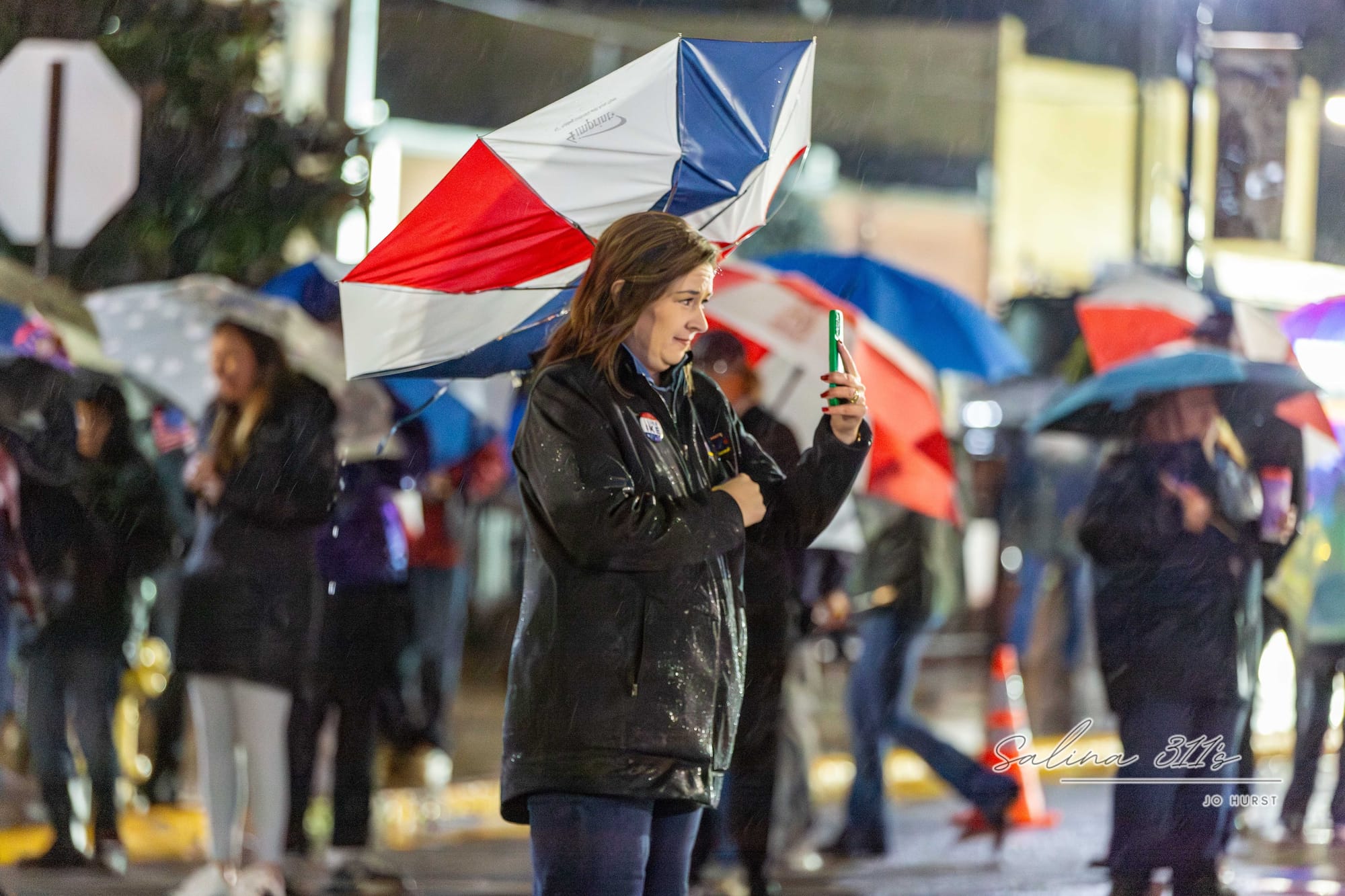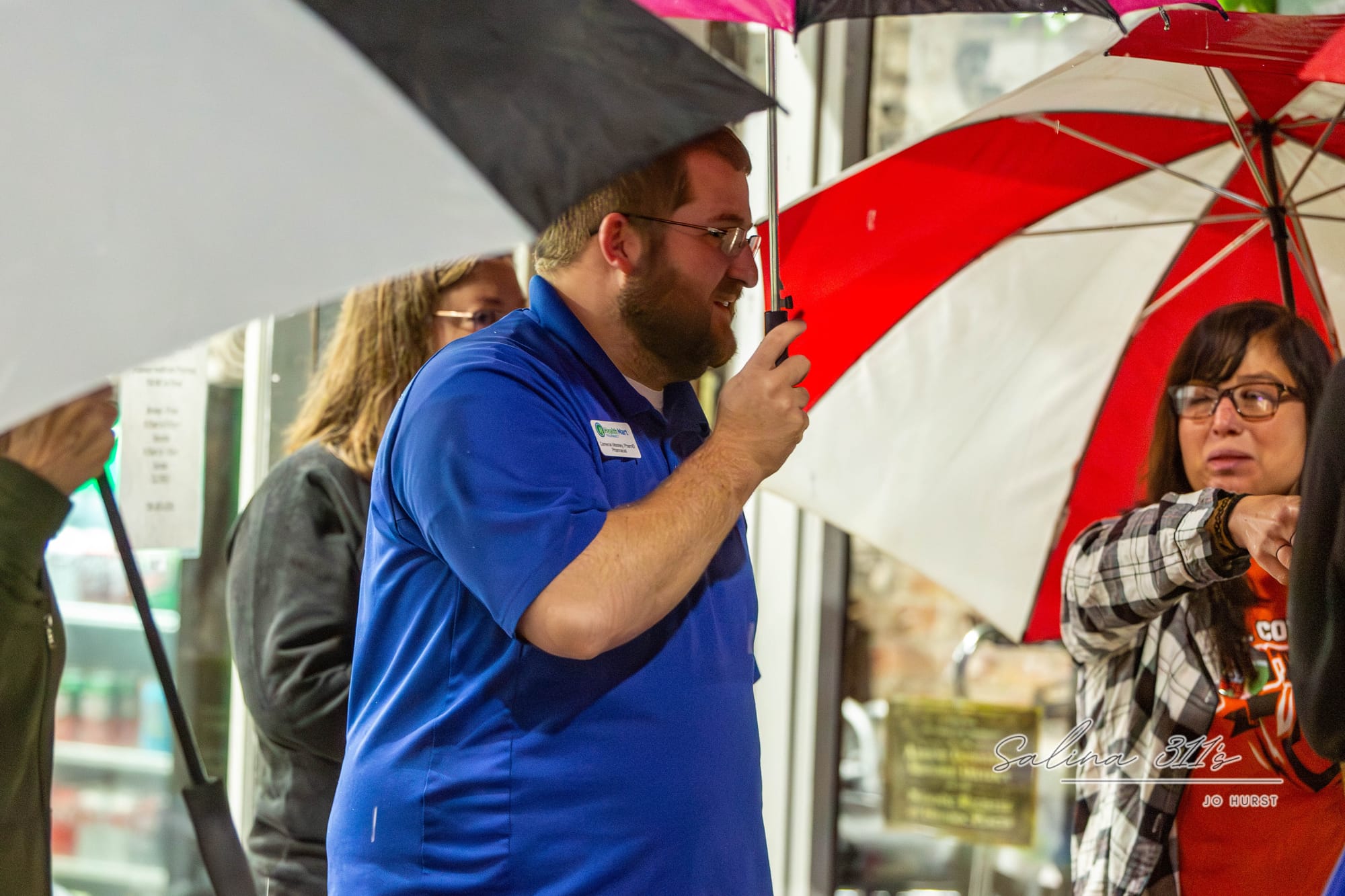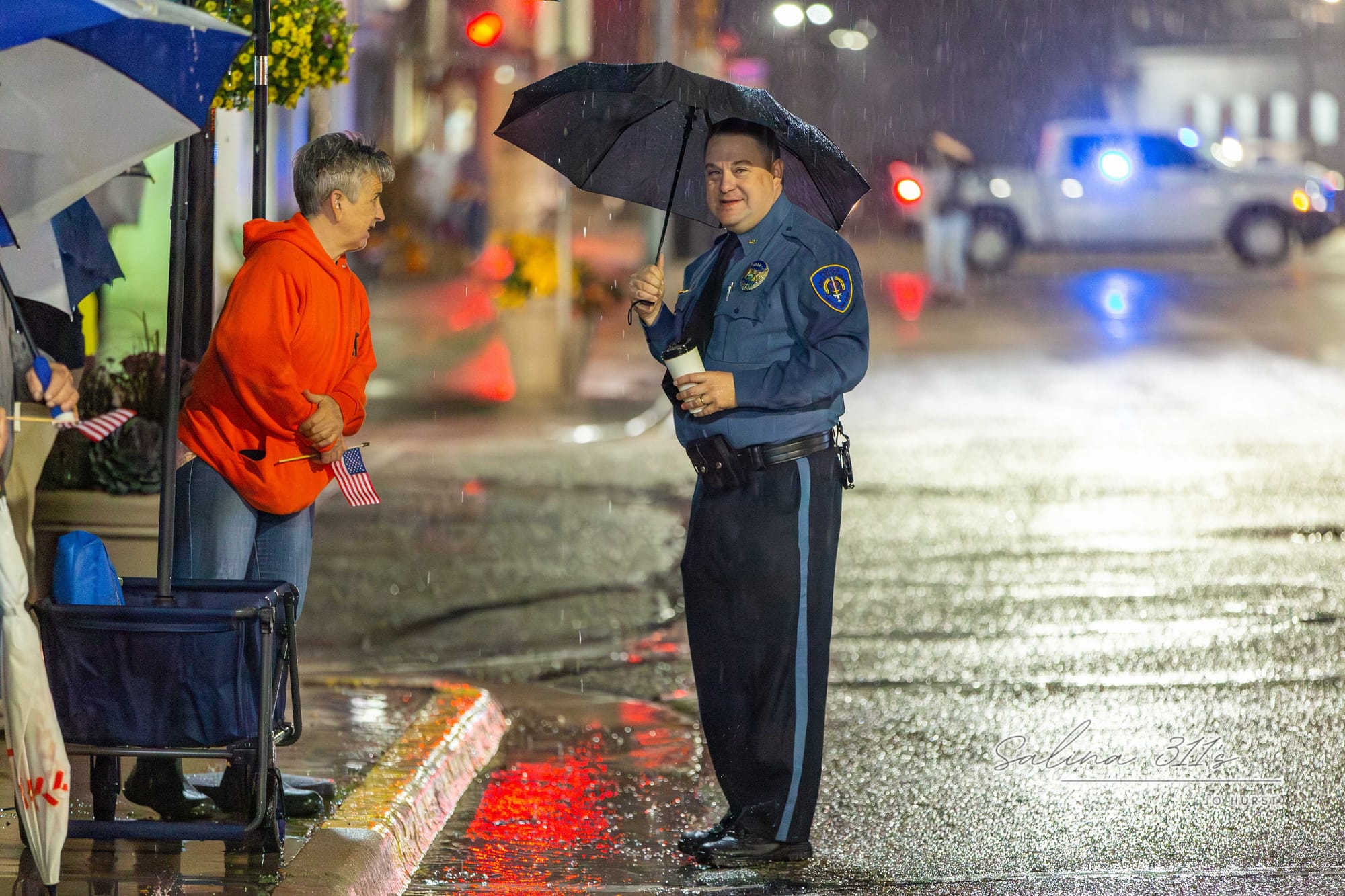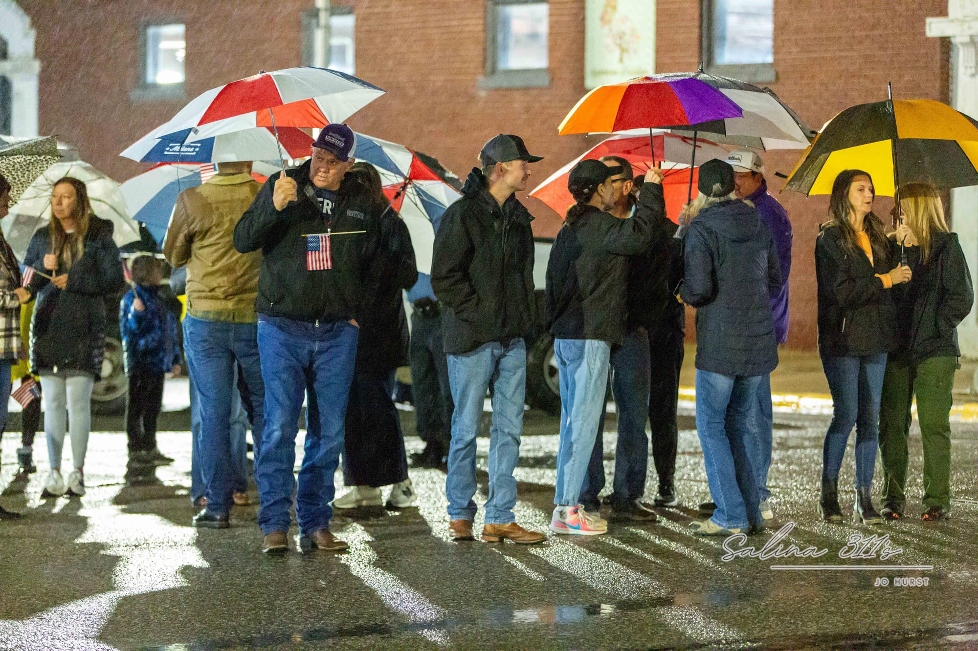 Downtown businesses opened early, and local manufacturers showcased products made in Abilene. The city’s Greyhounds mascot and several dogs were also part of the crowd—drawing onlookers despite umbrellas and wet conditions.