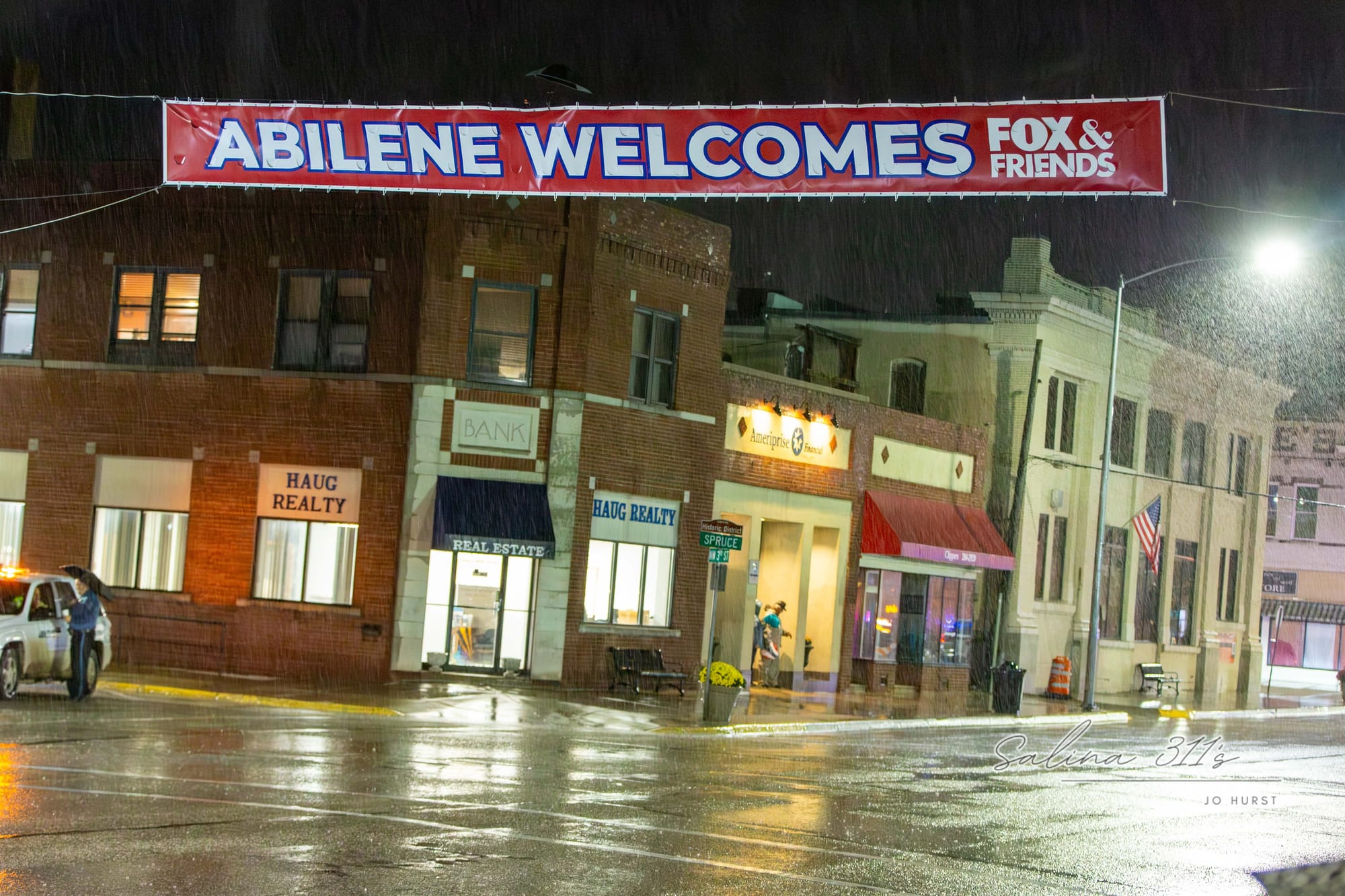 SALINA, KANSAS — Abilene’s early-morning appearance on Fox & Friends drew a strong crowd Friday despite steady rainfall, with both Abilene residents and Salina commuters showing up before dawn to participate in the live broadcast.