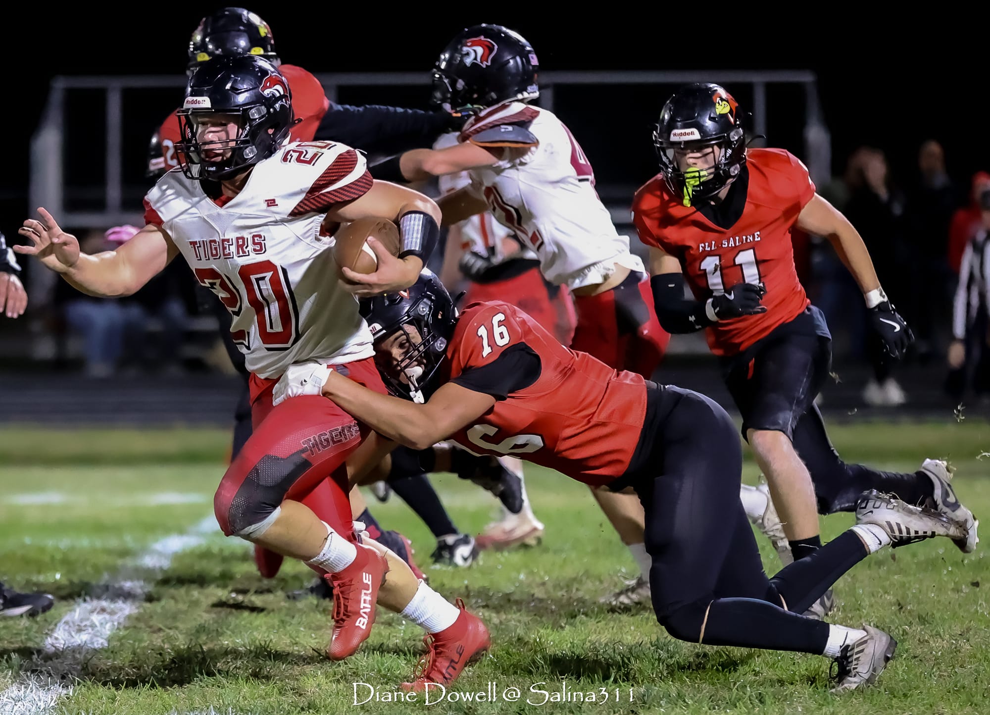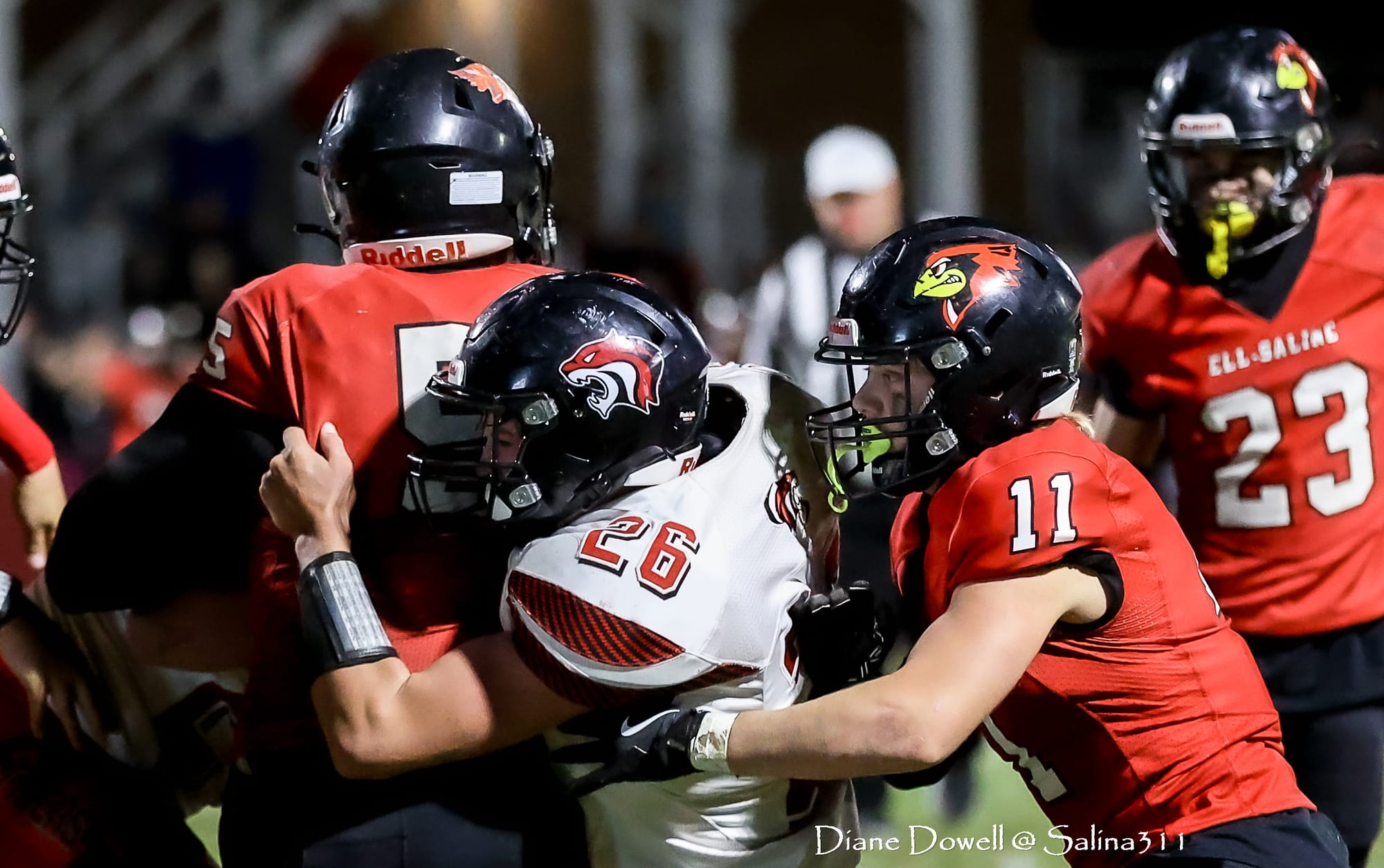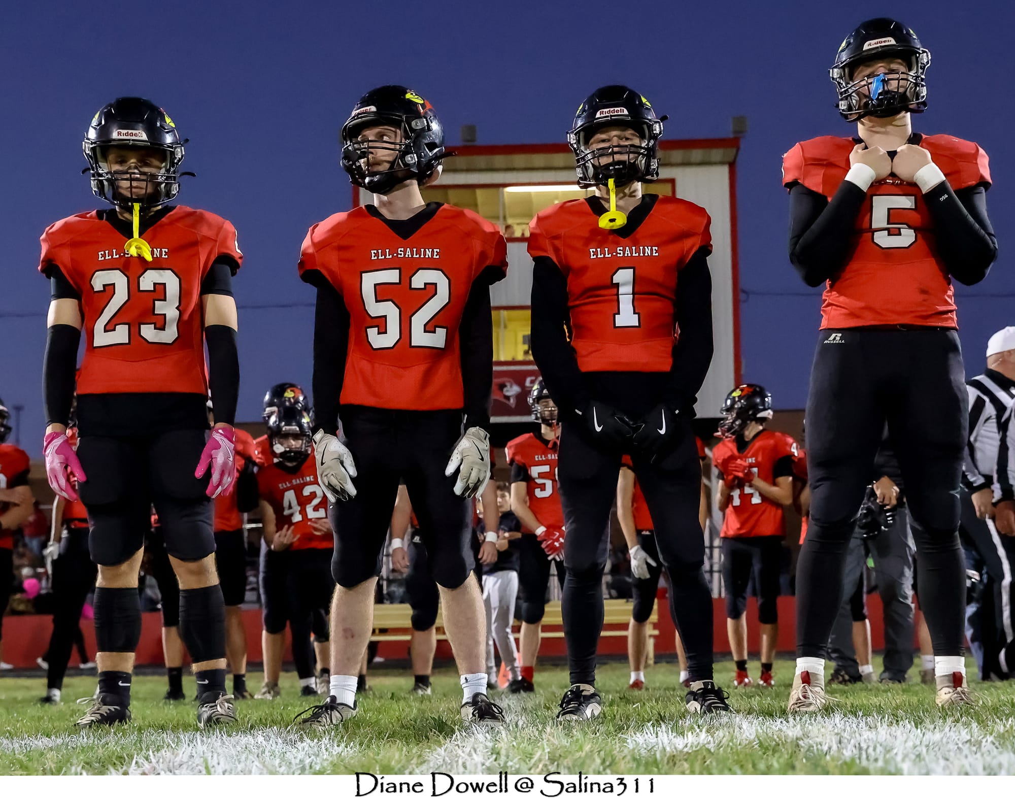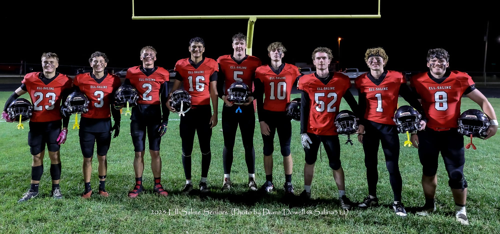 2025 Ell-Saline Senior football players, after the game against Washington County, Oct. 30, 2025 (Photo by Diane Dowell)