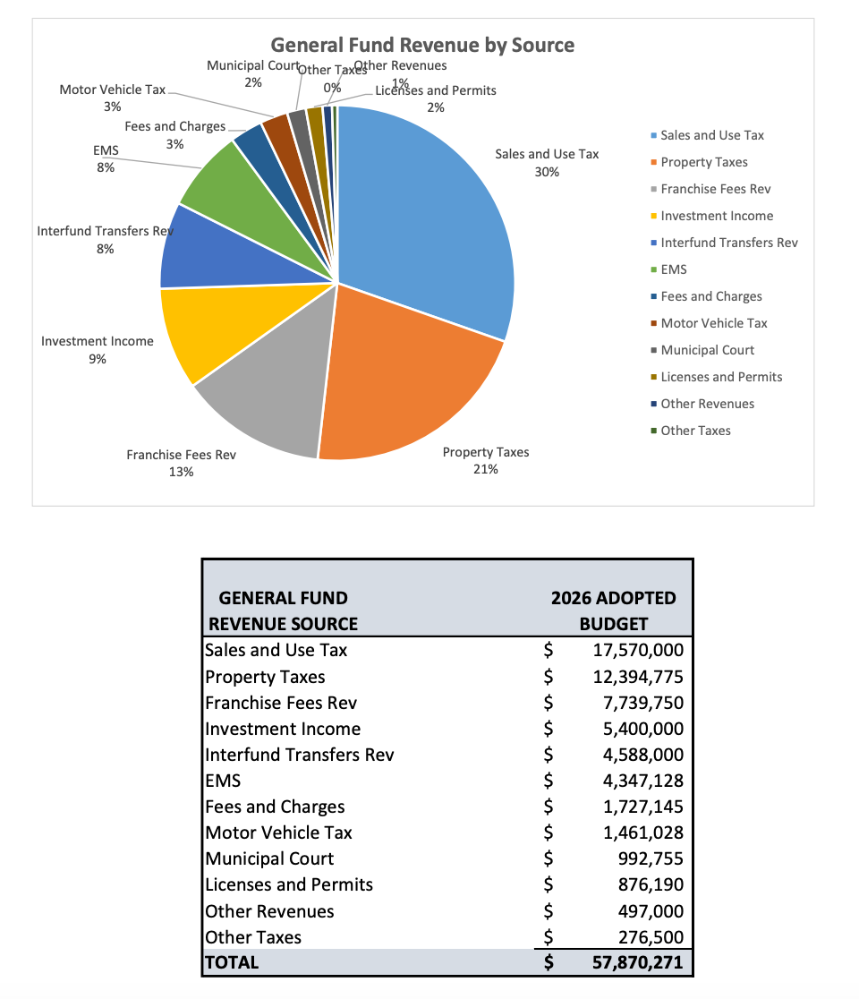 The proposed General Fund budget for 2026 totals $57,870,271, according to financial documents released by city staff. The General Fund is the cityβs primary operating fund and supports services including police, fire, public works, parks, and general administration.