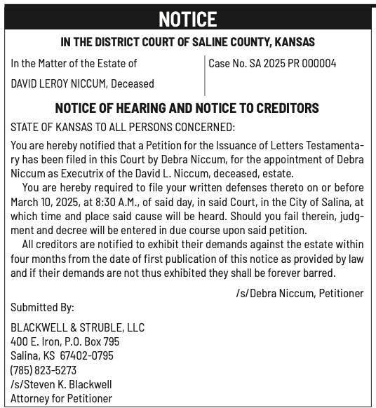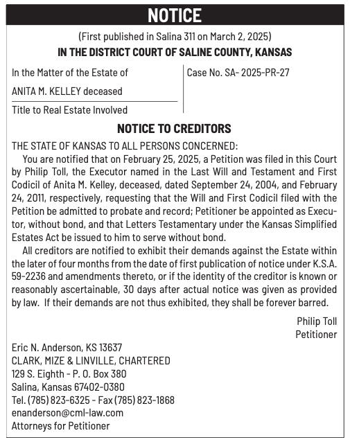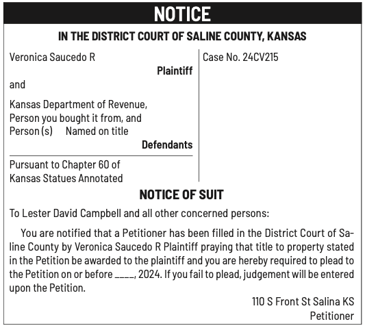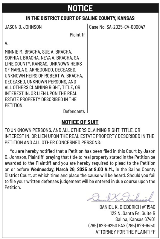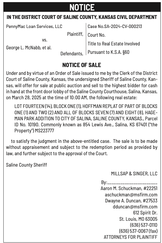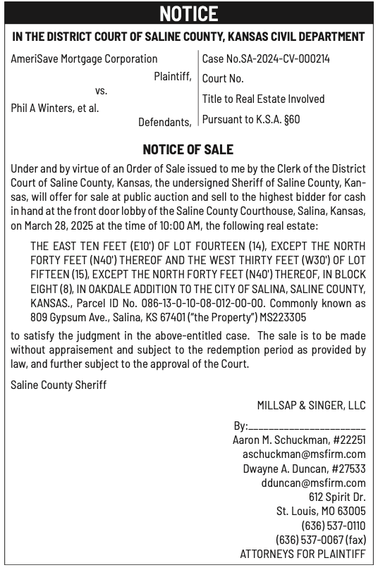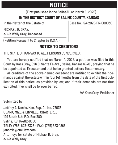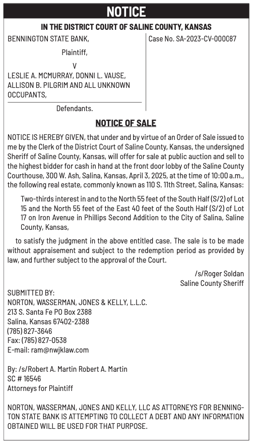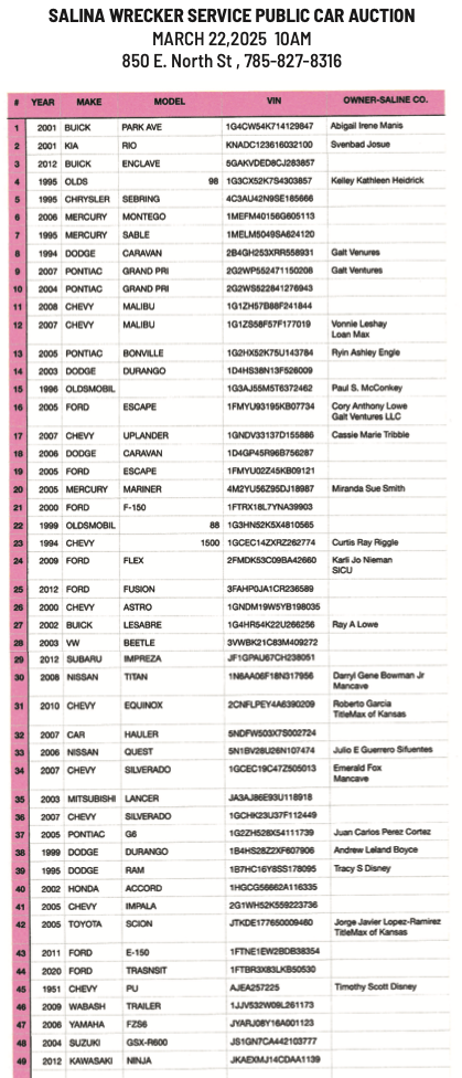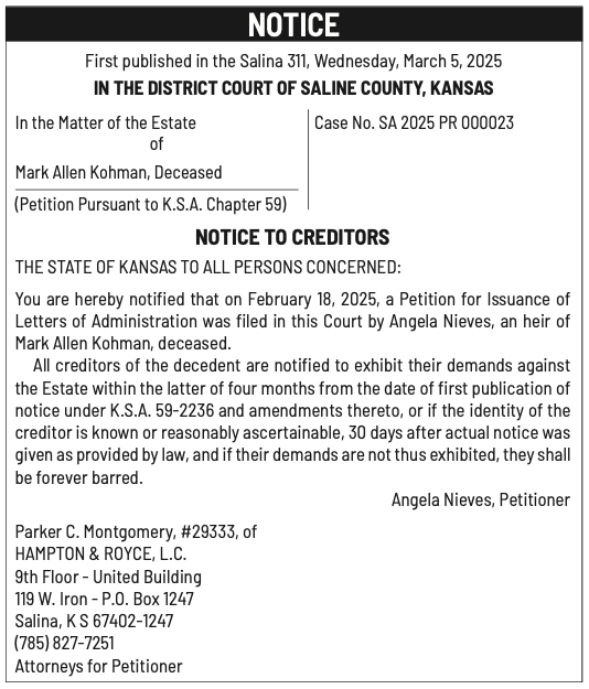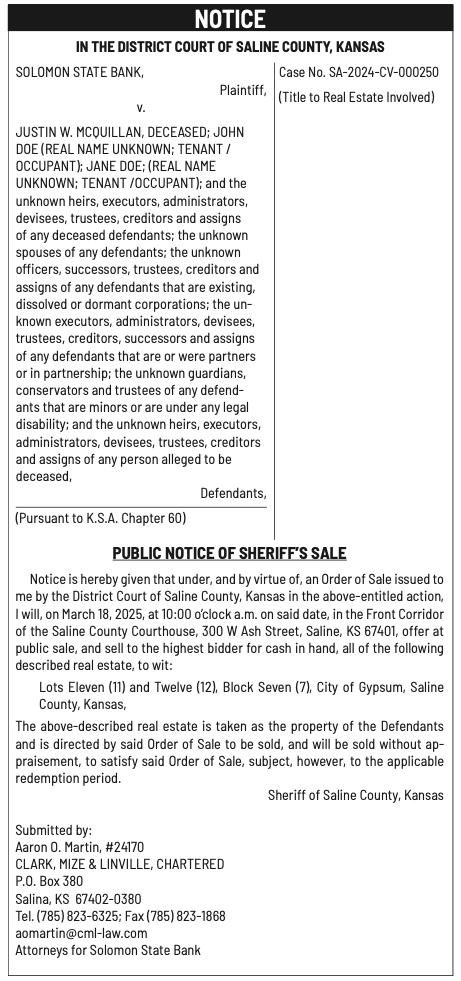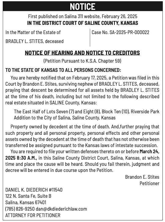 Public notices published in the Salina311 Newspaper on March 9th and/or March 5th.
