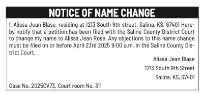 Public notices published in the Salina311 Newspaper on April 13th and/or April 9th.
