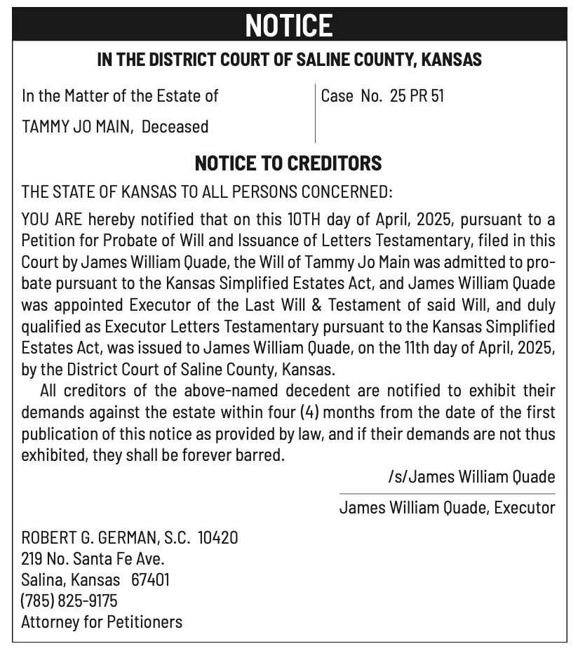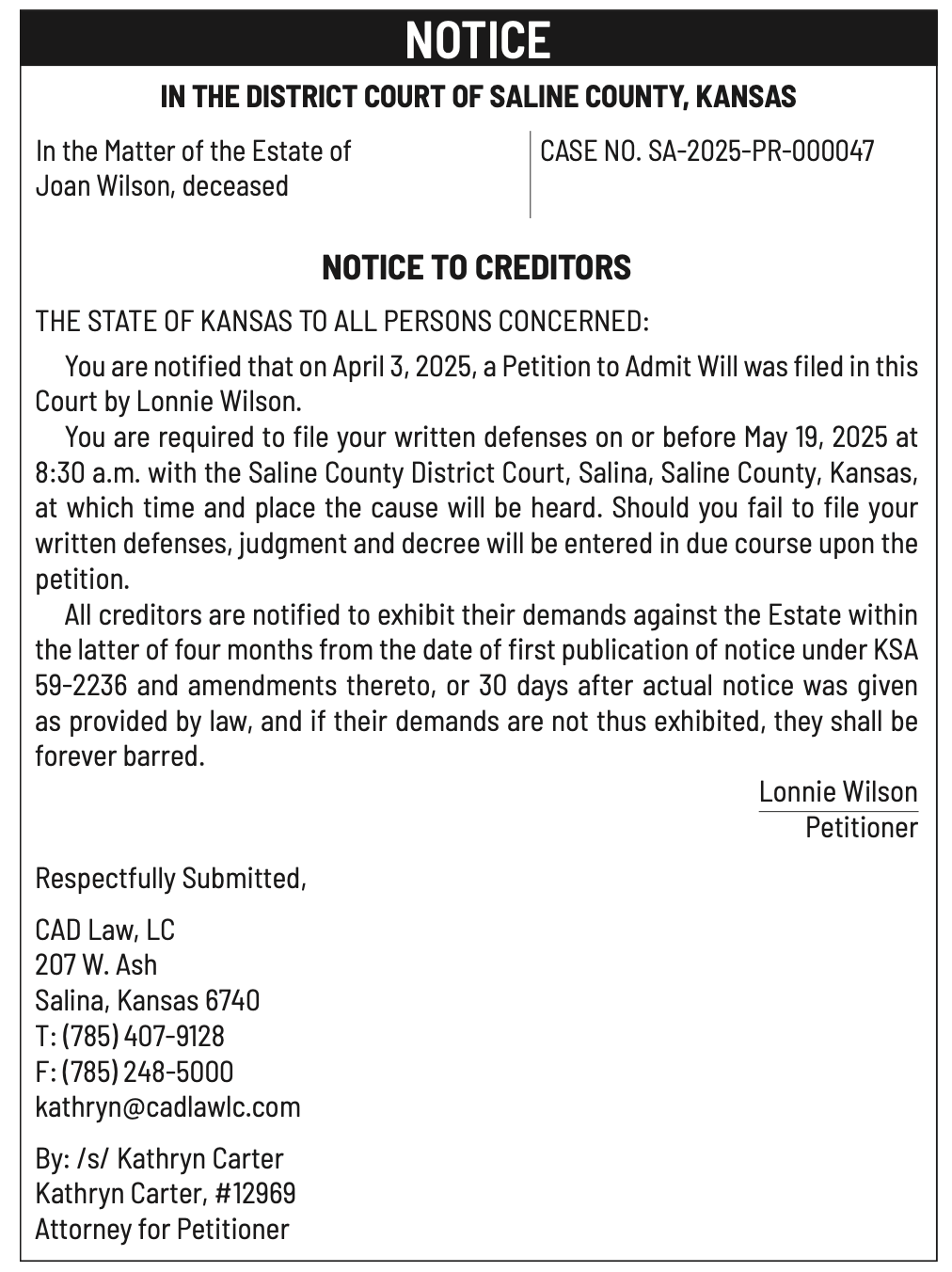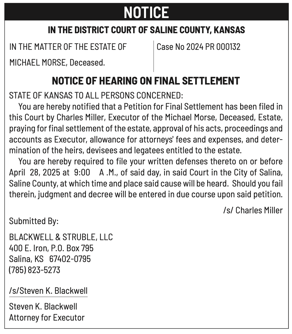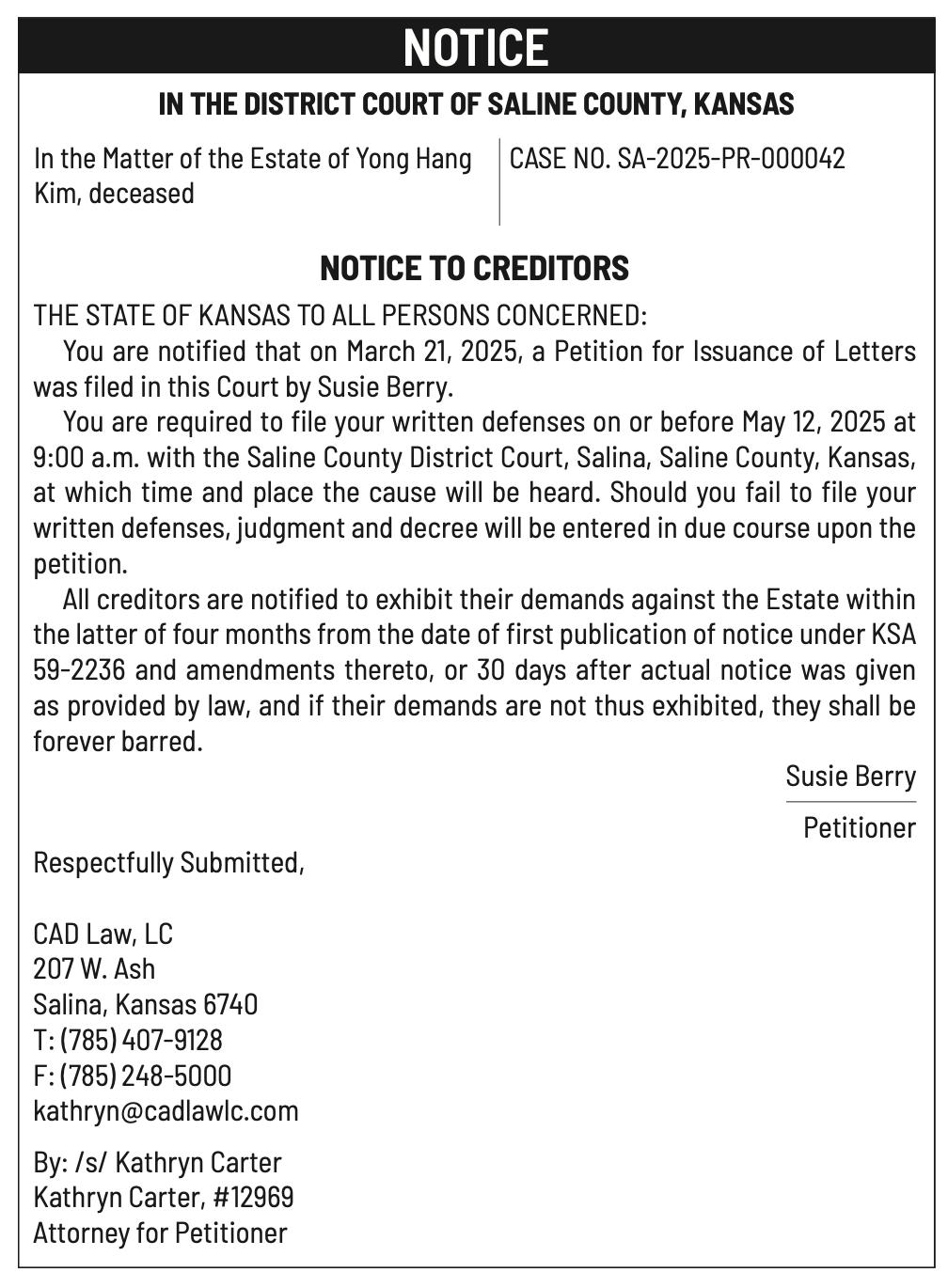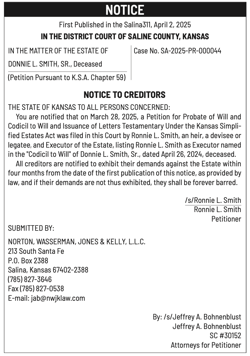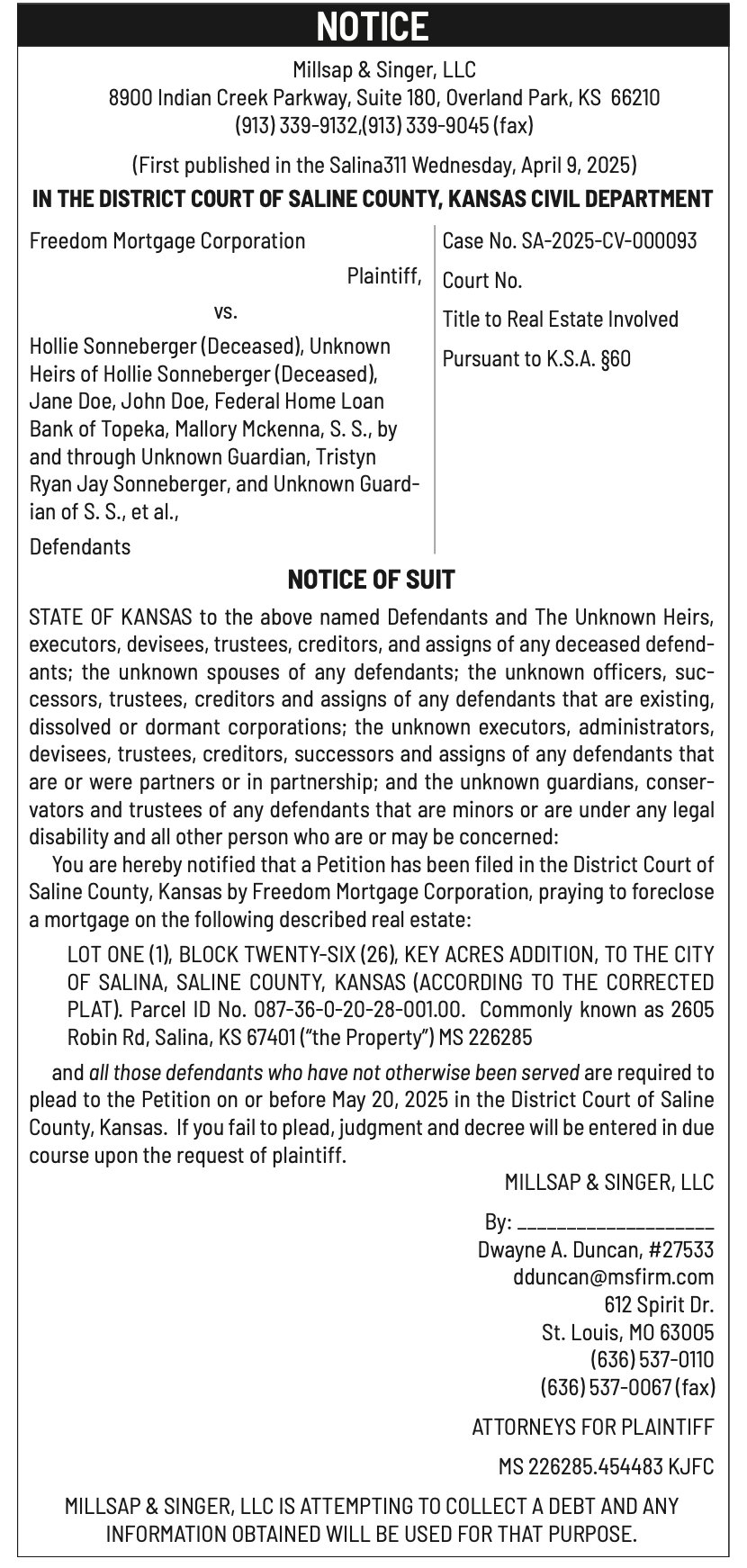 Public notices published in the Salina311 Newspaper on April 20 and/or April 16.๐กThis story was featured in the Salina311 Newspaper. Subscribe To The Paper
