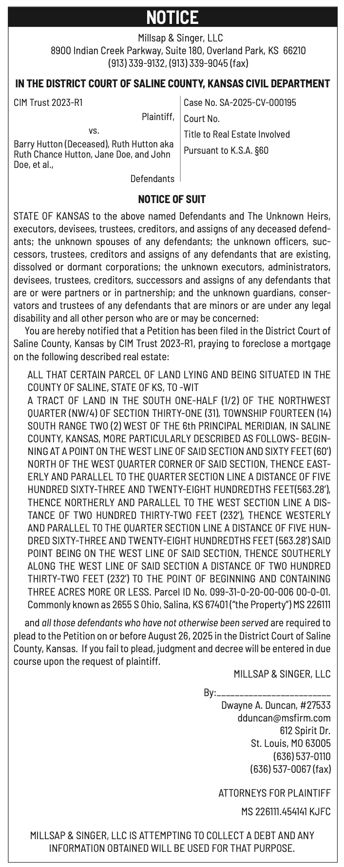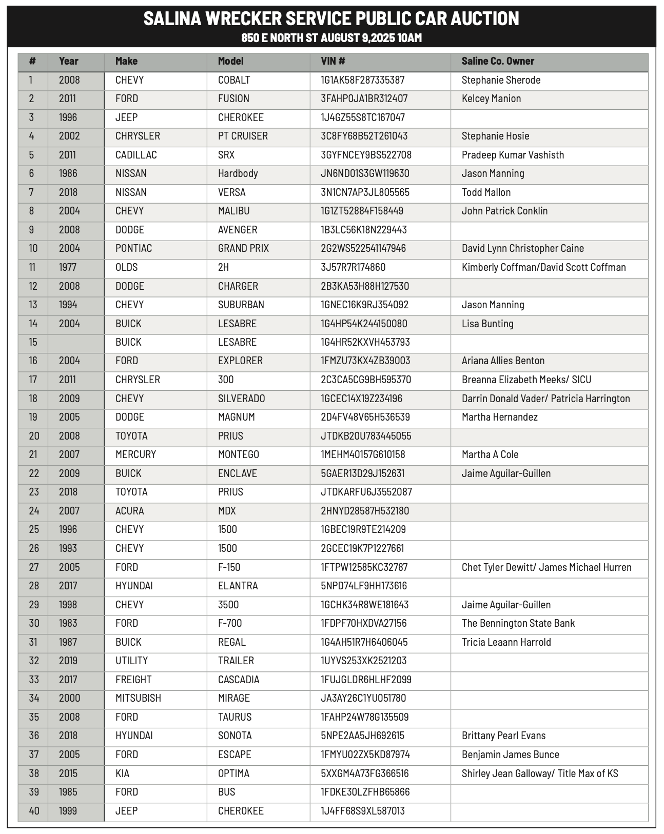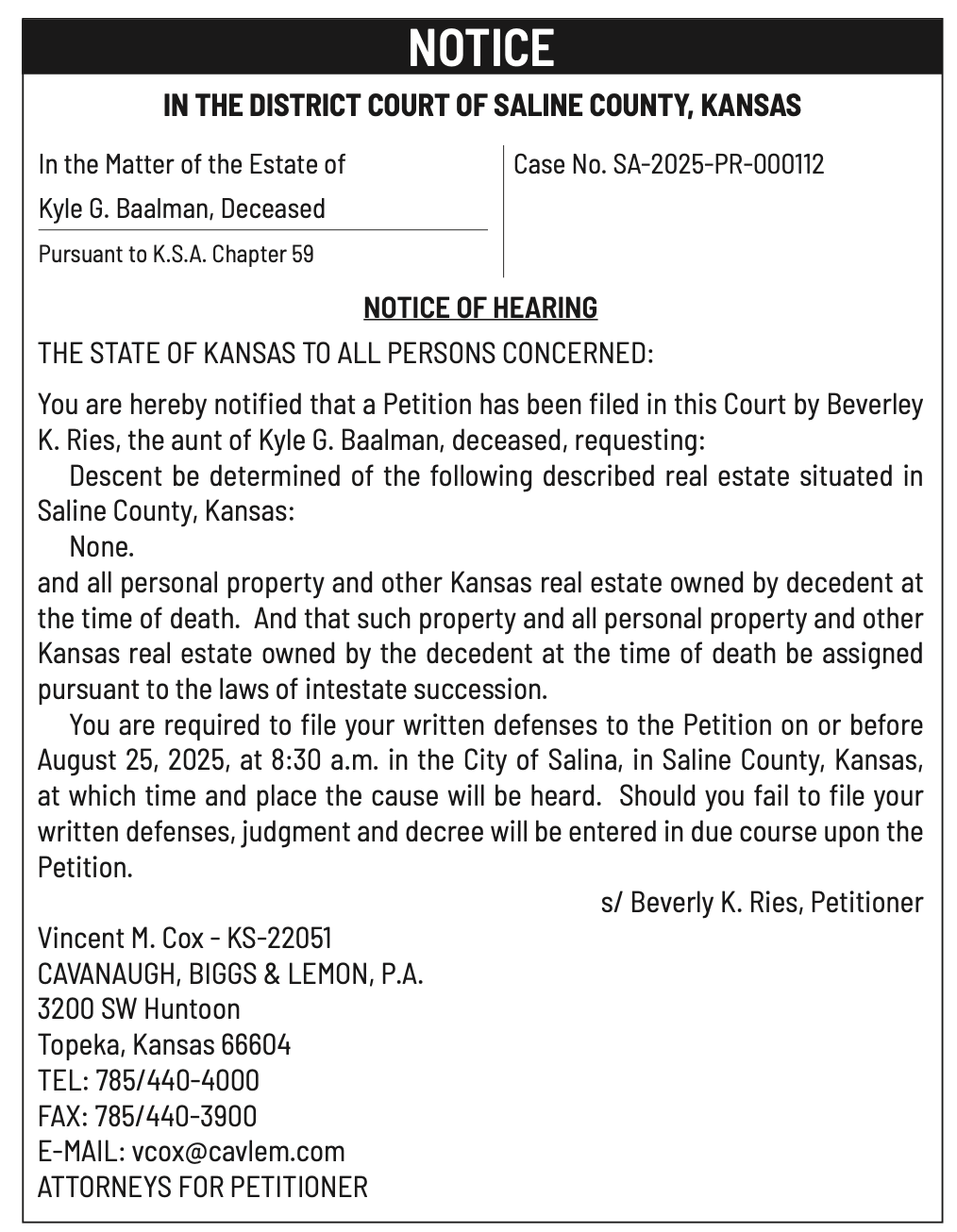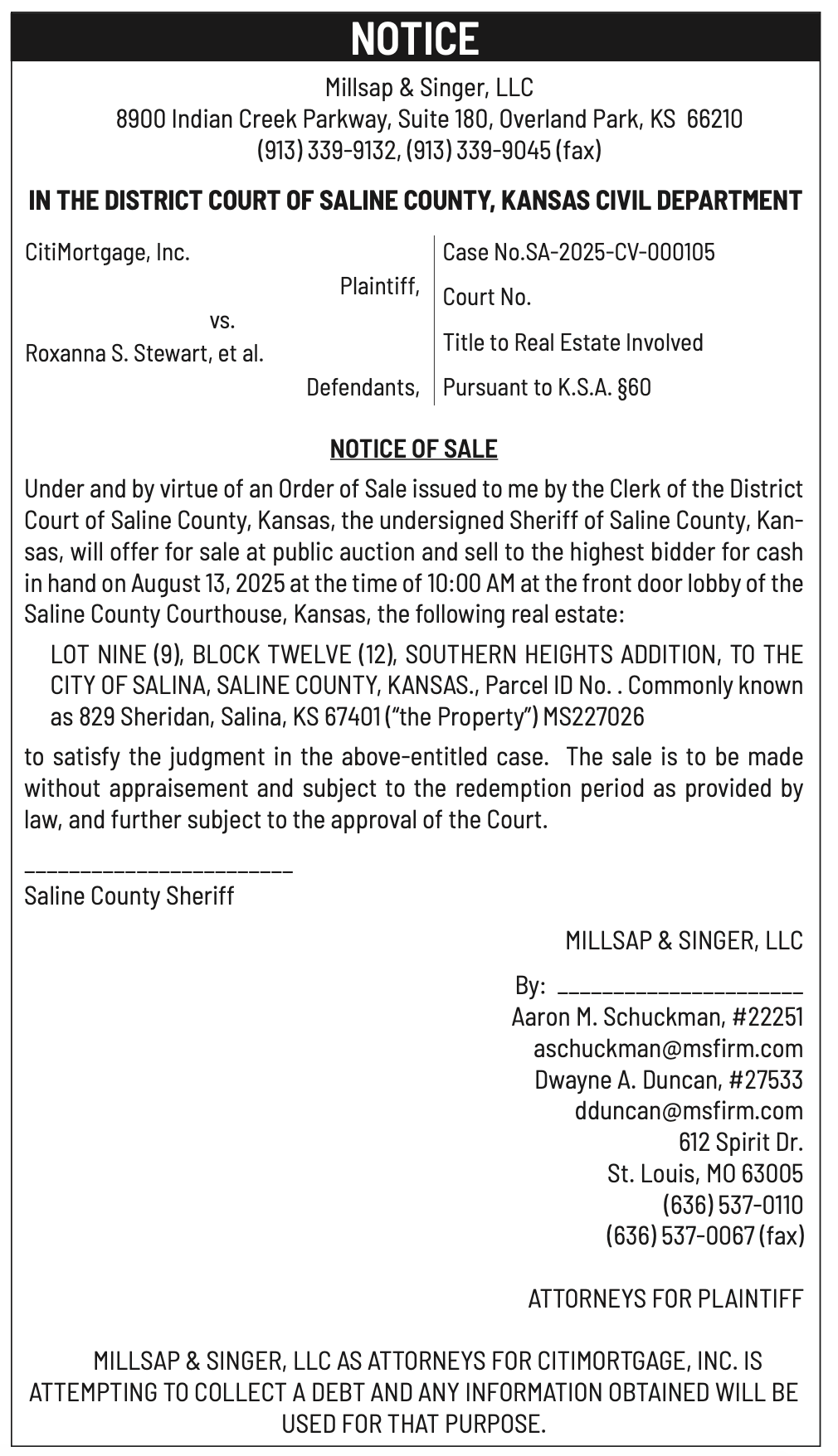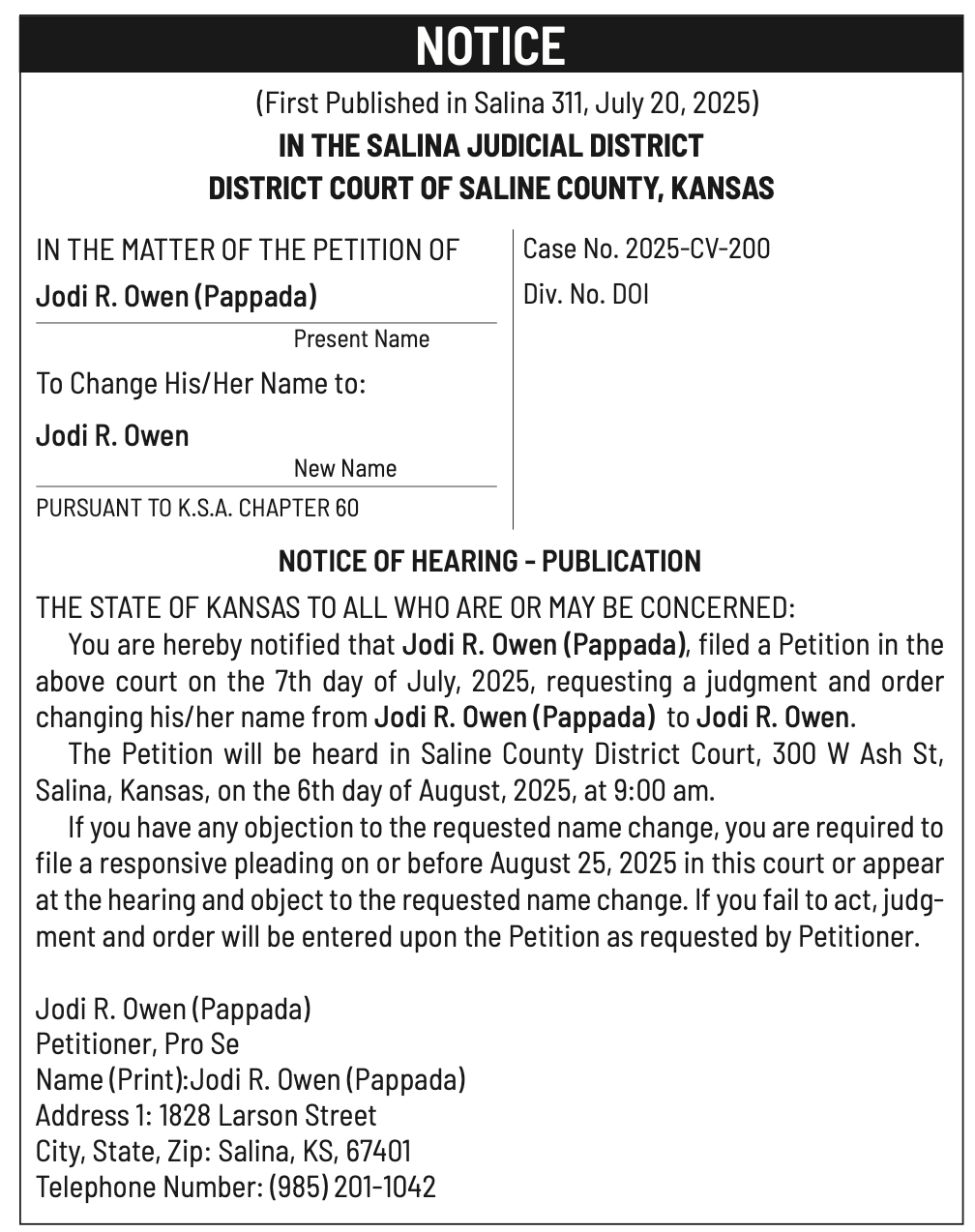 Public notices published in the Salina311 Newspaper on August 3rd and/or July 30th.