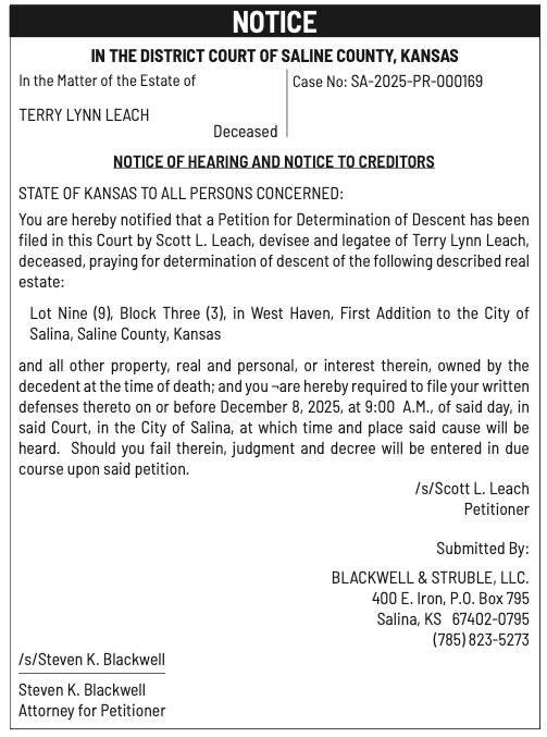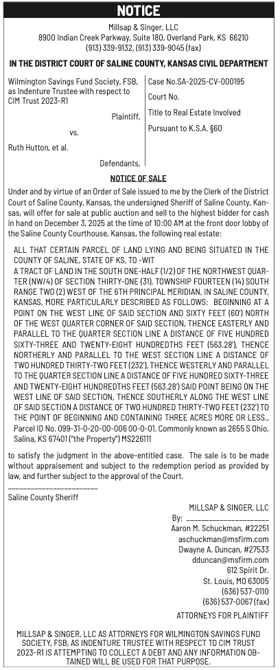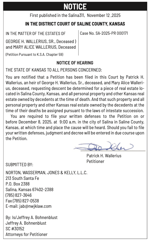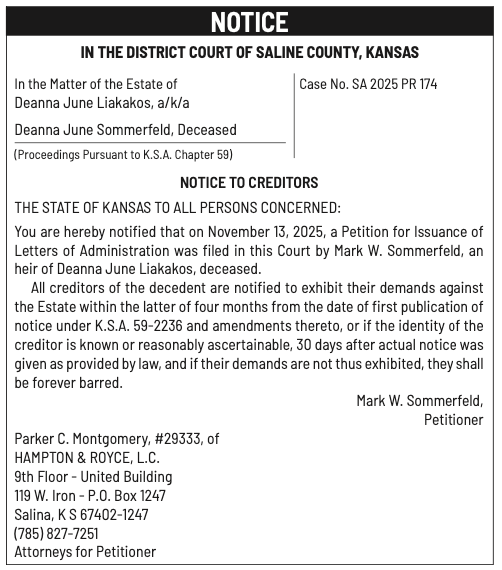 Public notices published in the Salina311 Newspaper on November 30th and/or November 26th.