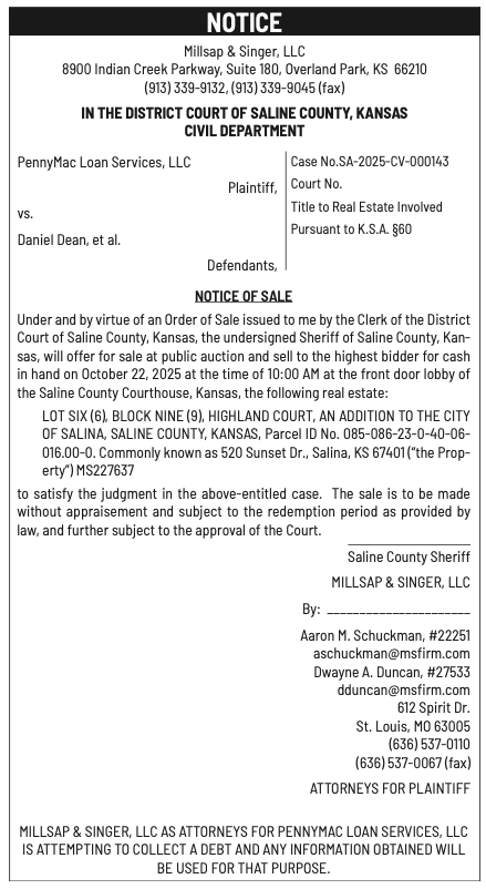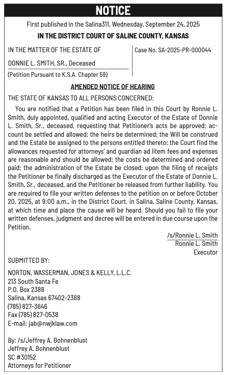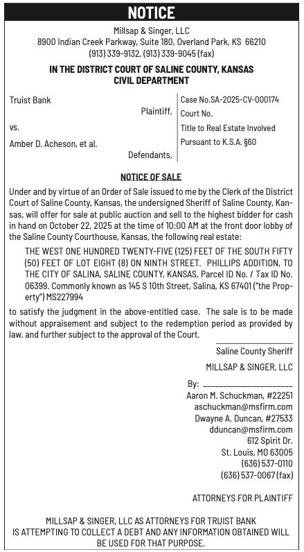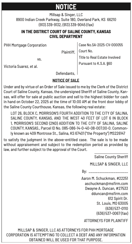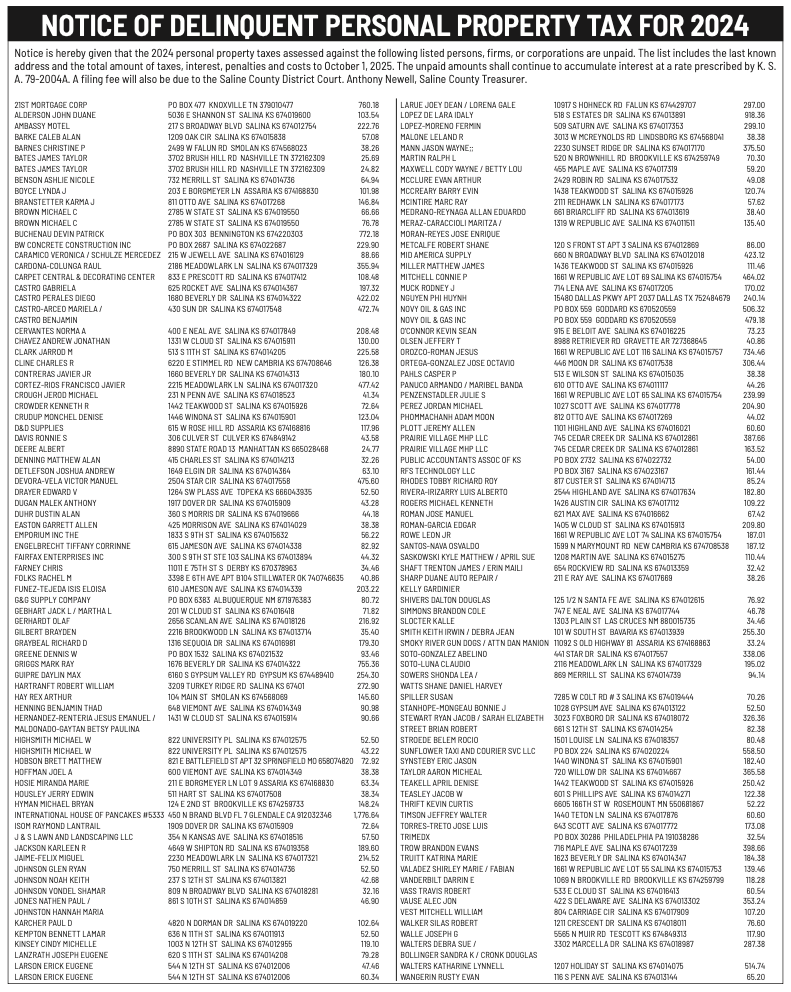 Public notices published in the Salina311 Newspaper on October 12th and/or October 8th.