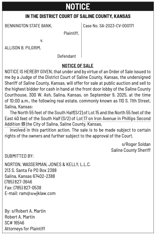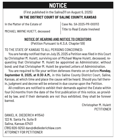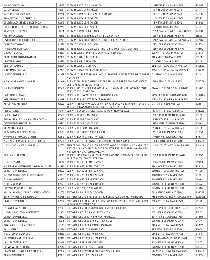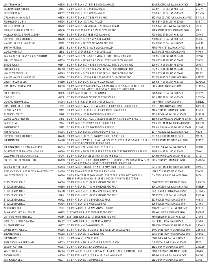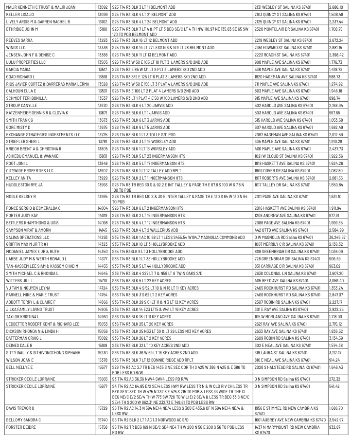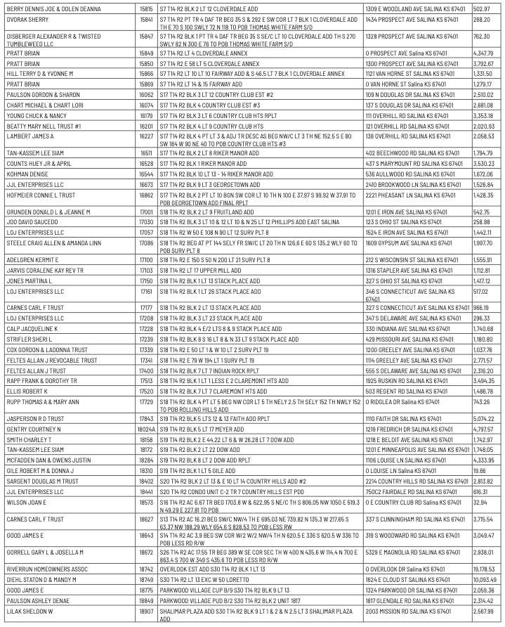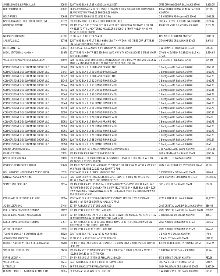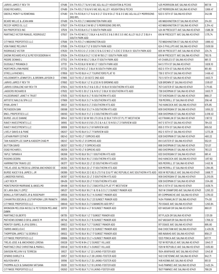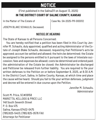 Public notices published in the Salina311 Newspaper on August 24th and/or August 20th.