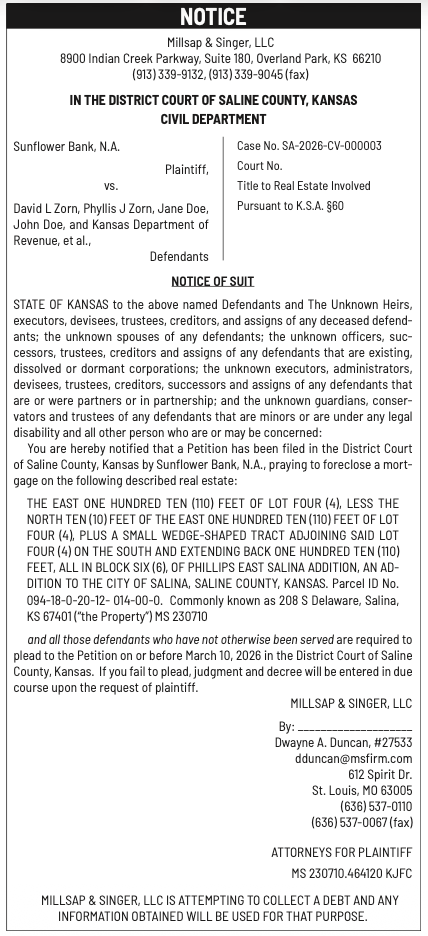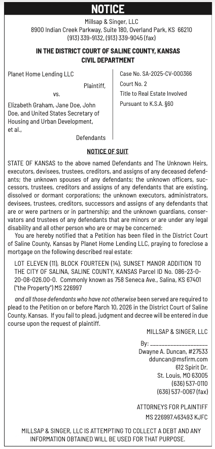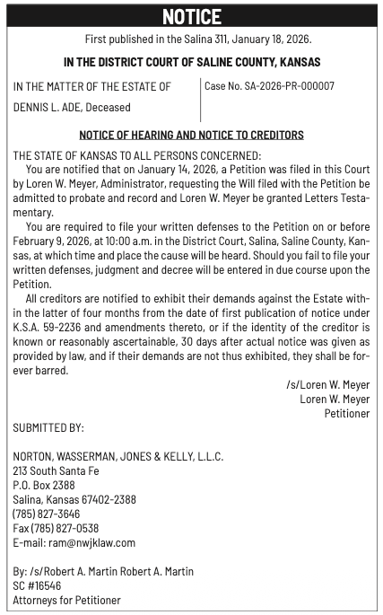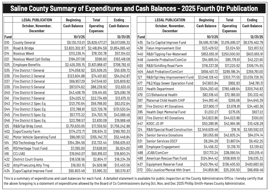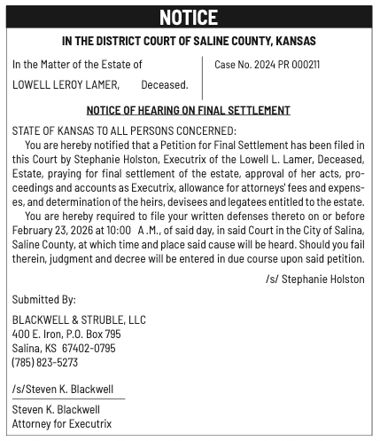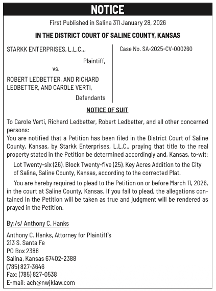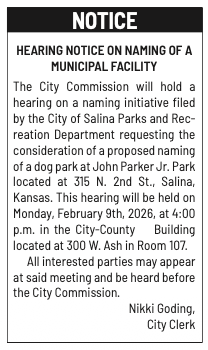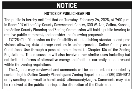 Public notices published in the Salina311 Newspaper on February 1st and/or January 28th.