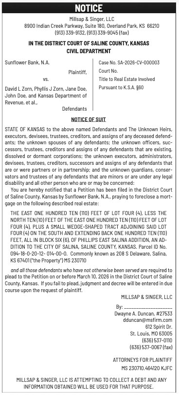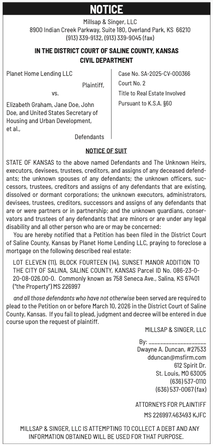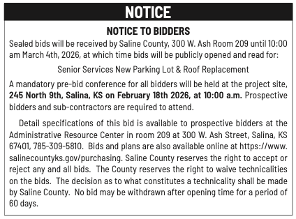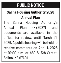 Public notices published in the Salina311 Newspaper on February 8th and/or February 4th.