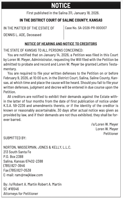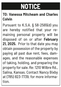 Public notices published in the Salina311 newspaper on January 25th and/or January 21st.