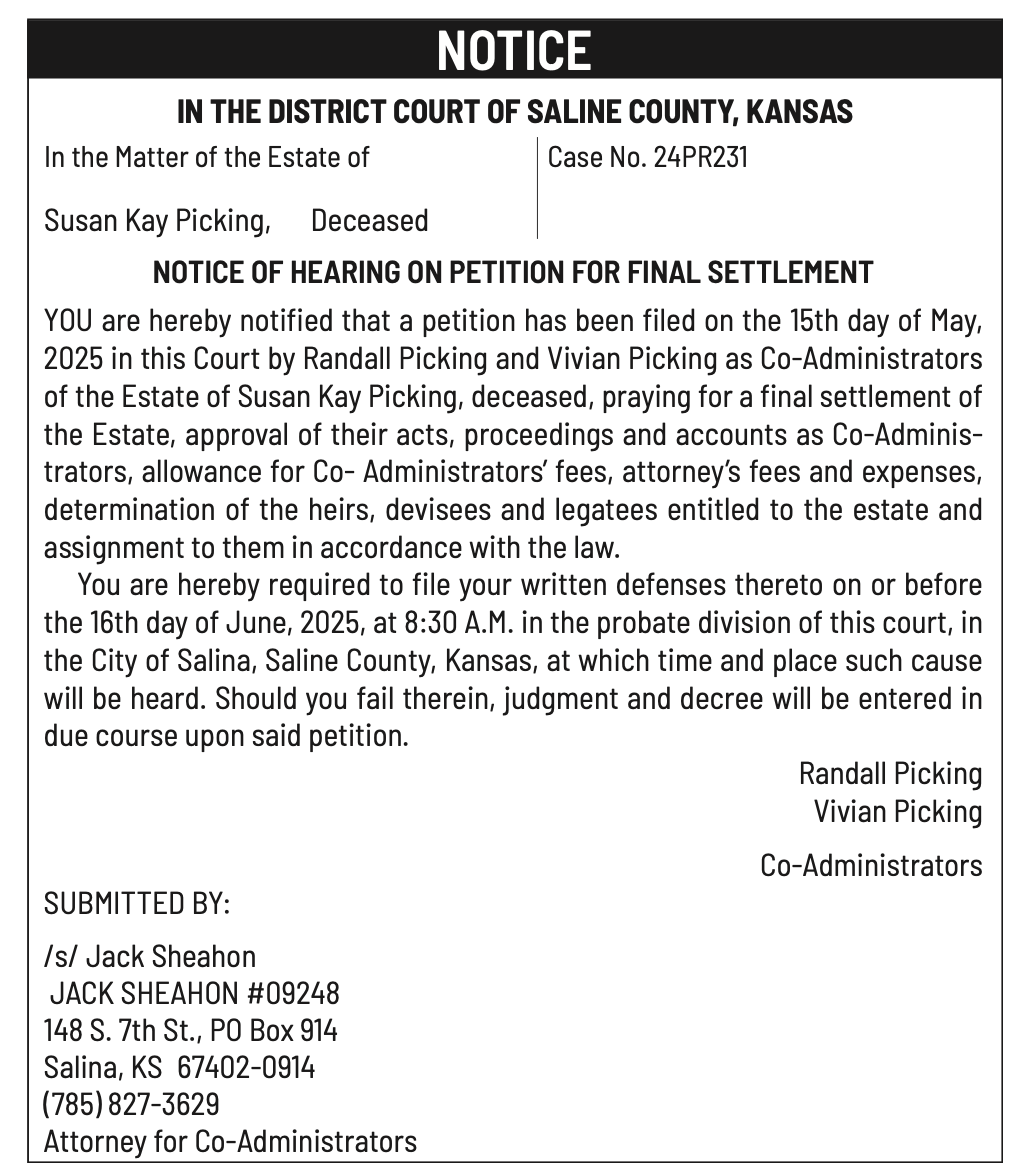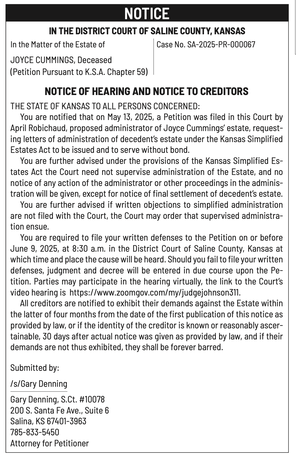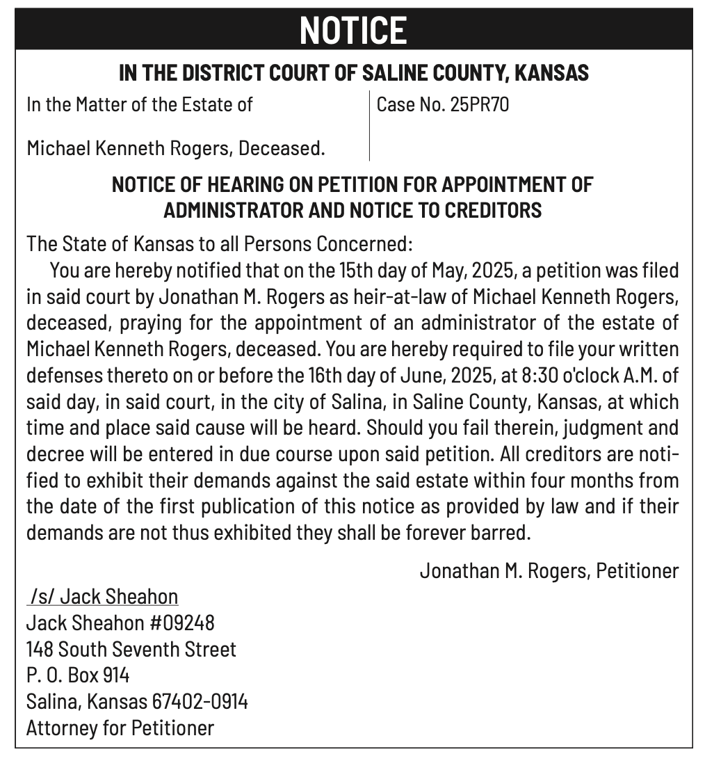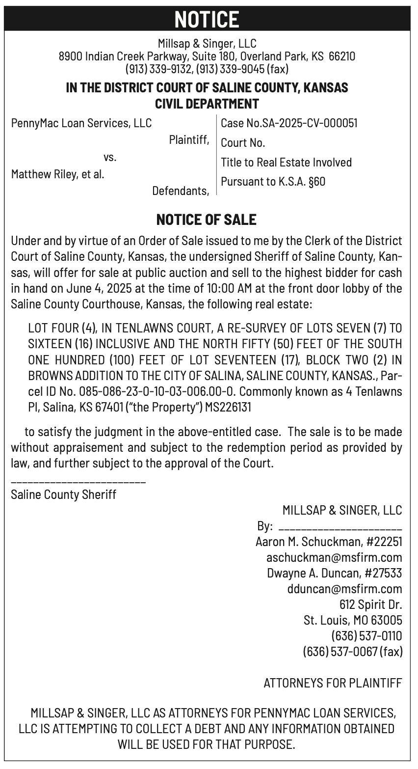 Public notices published in the Salina311 Newspaper on June 1 and/or May 28, 2025.