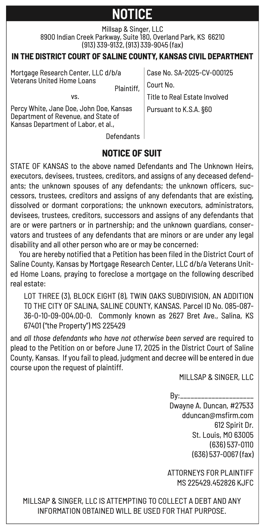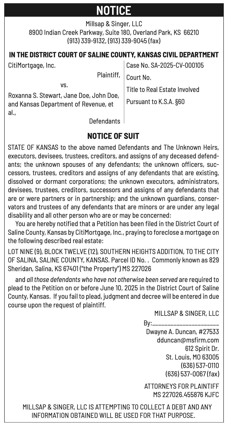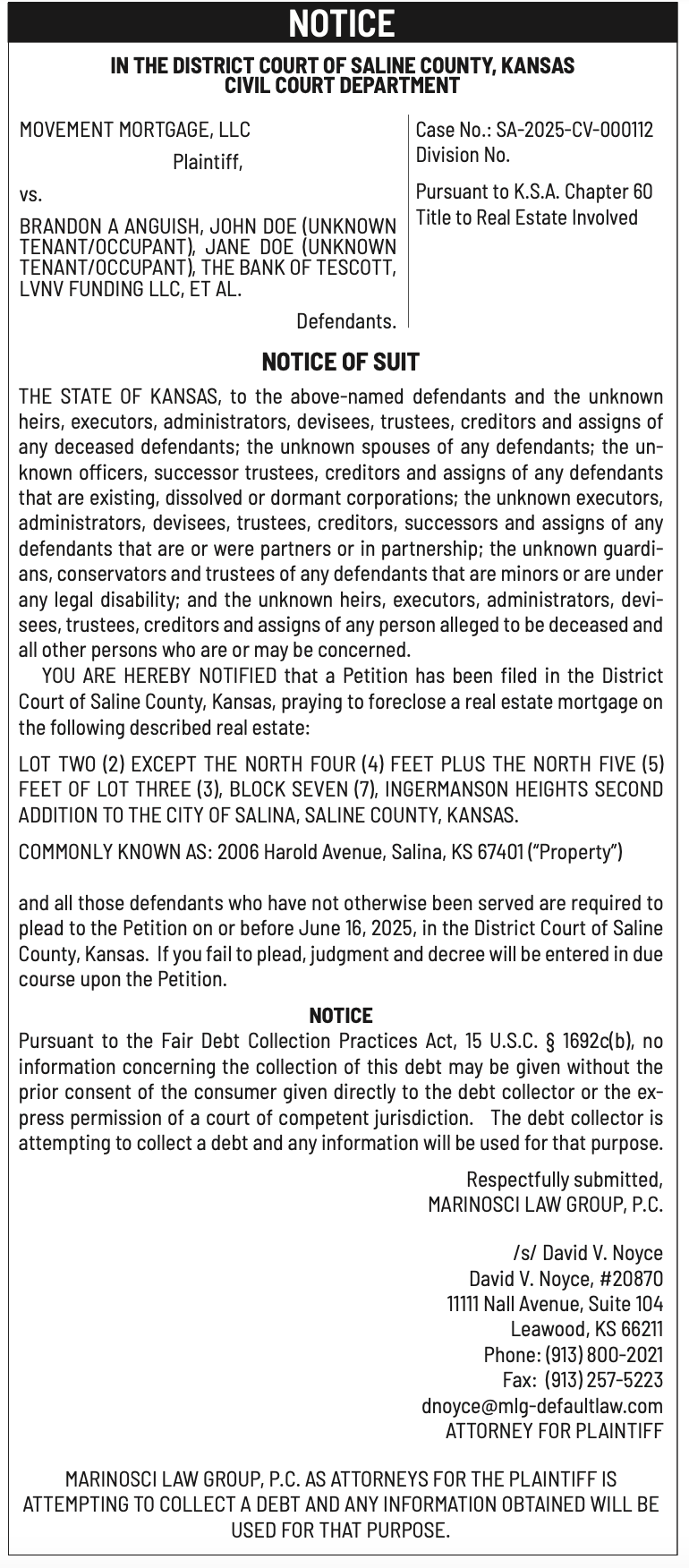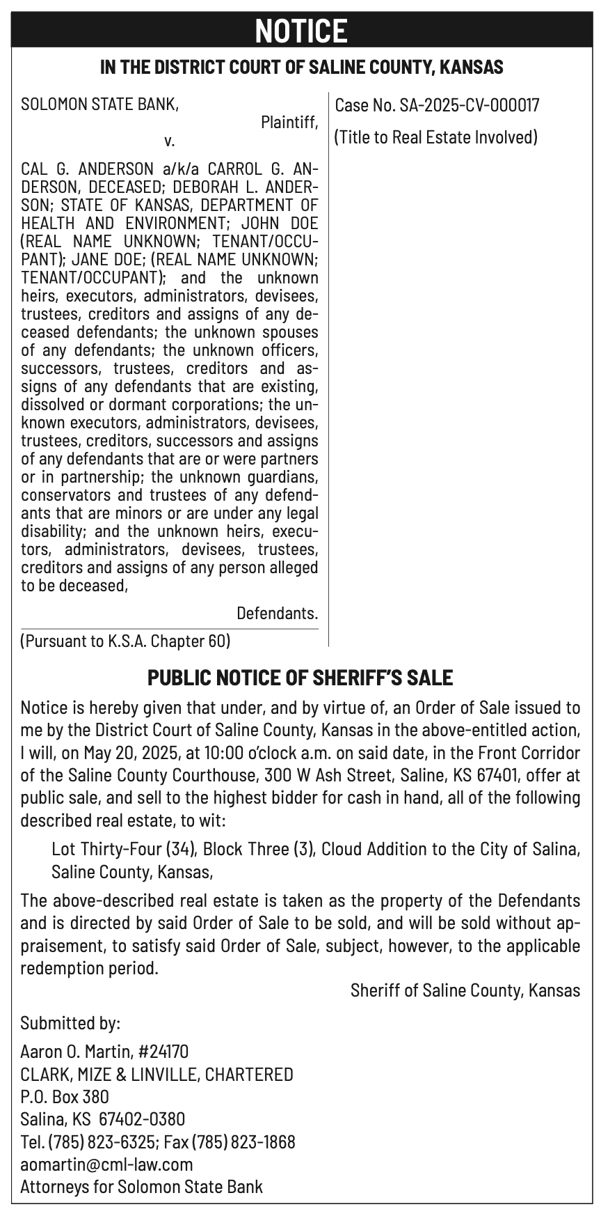 Public notices published in the Salina311 Newspaper on May 11th and/or May 7th.π‘This story was featured in the Salina311 Newspaper. Subscribe To The Paper