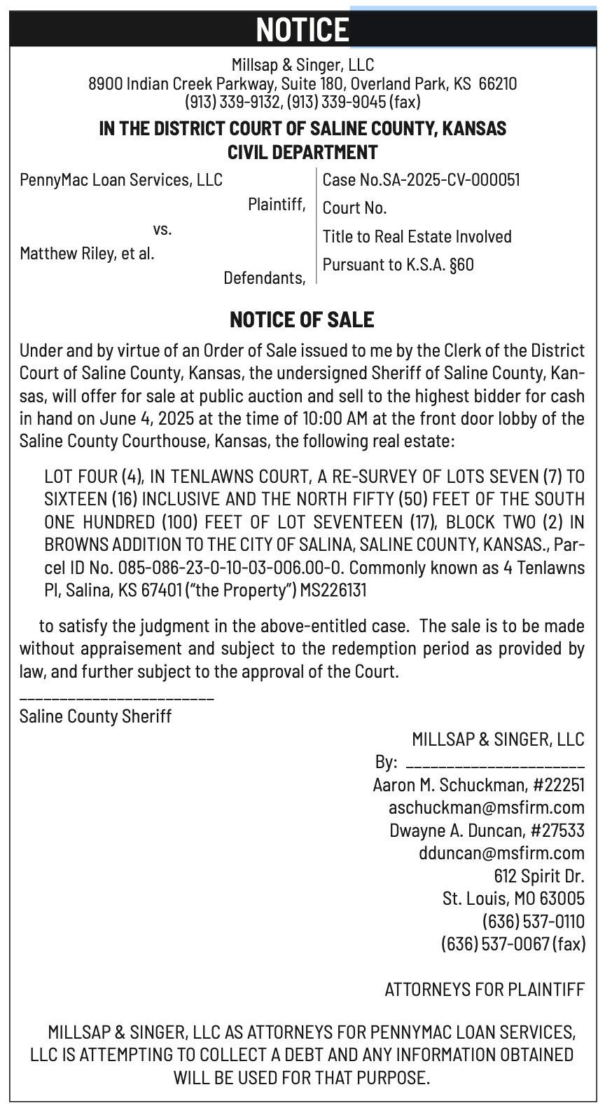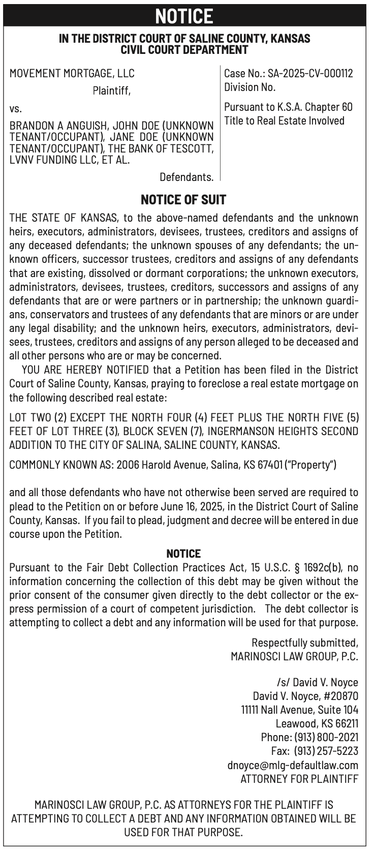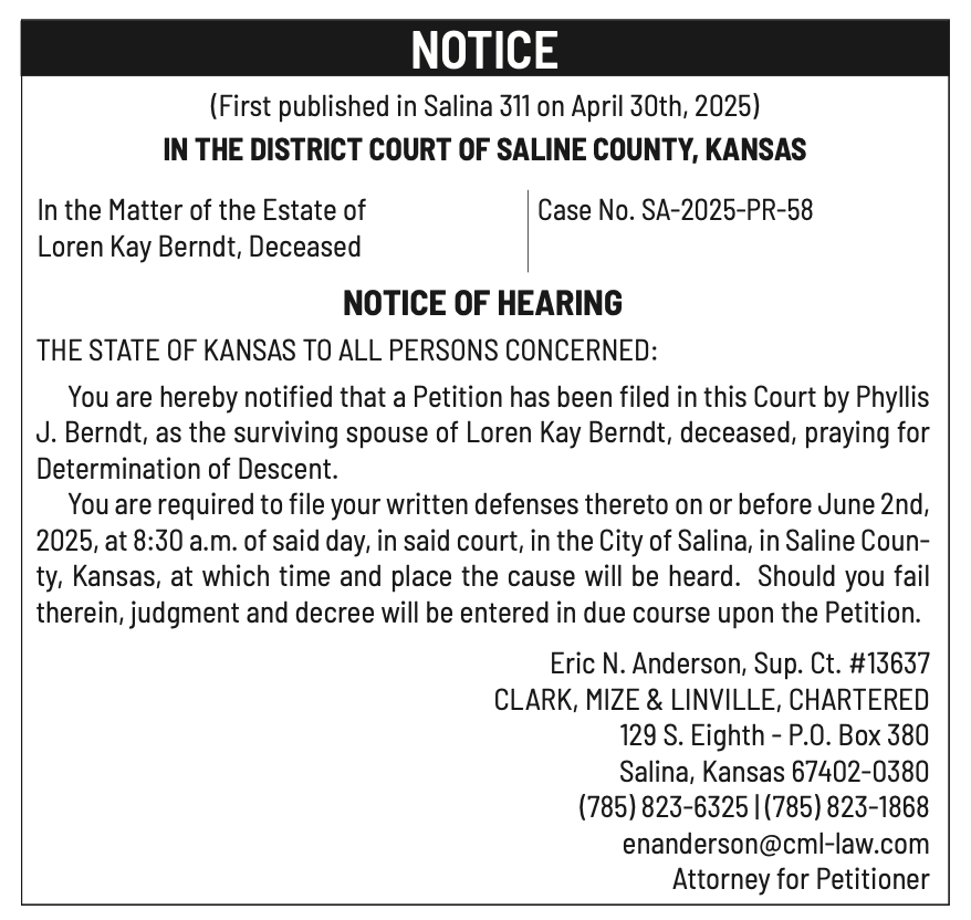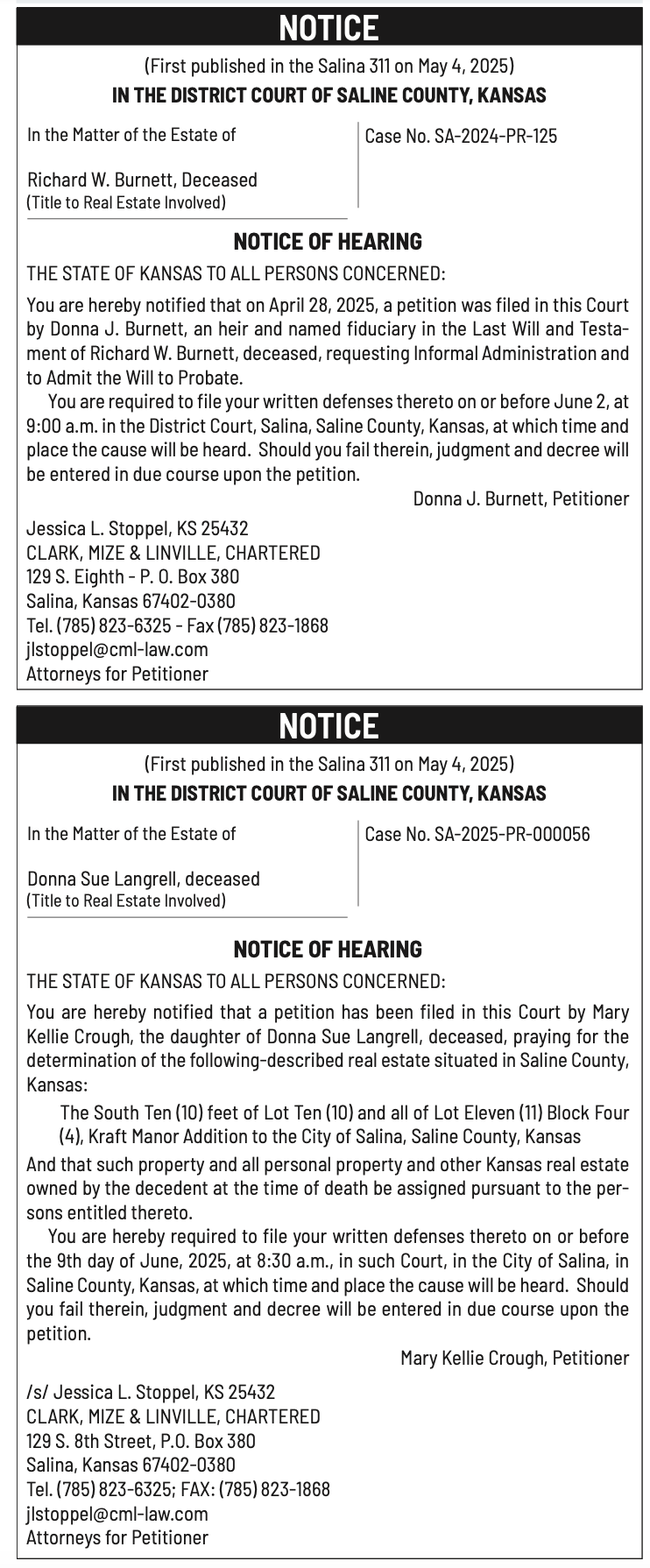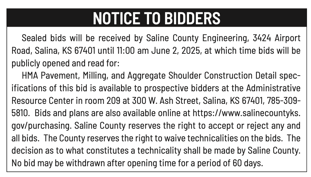 Public notices published in the Salina311 Newspaper on May 18th and/or May 14th, 2025.