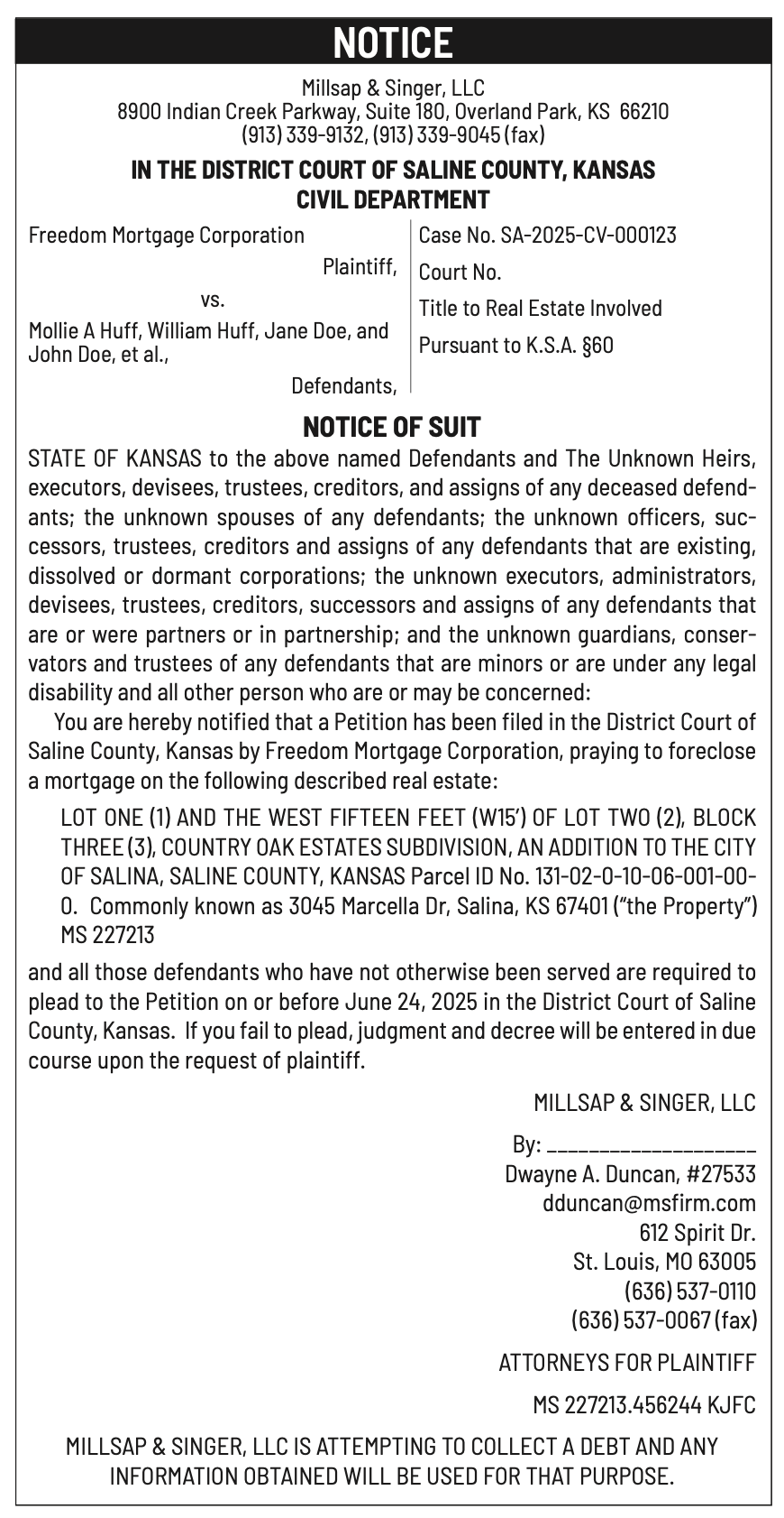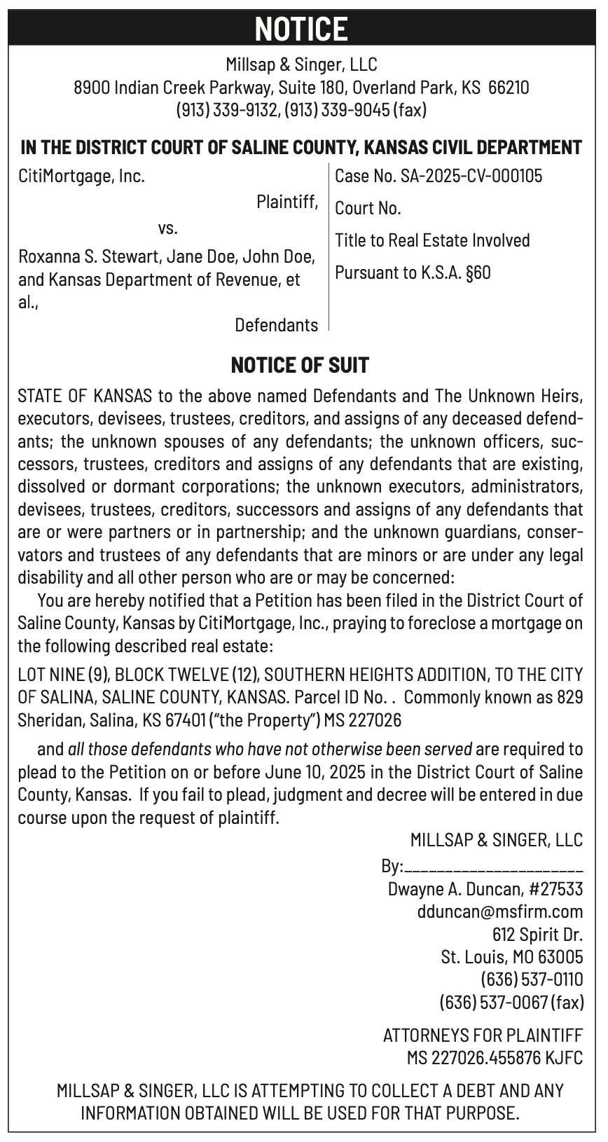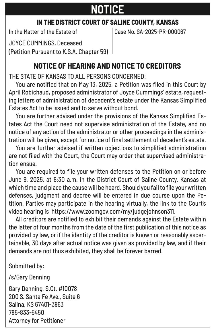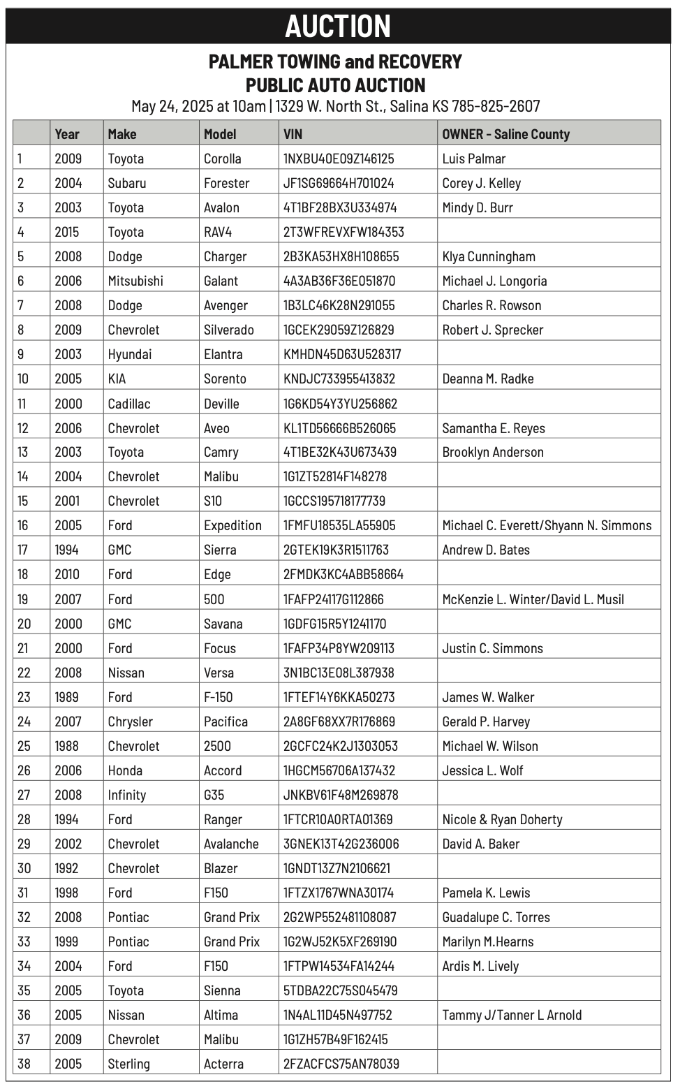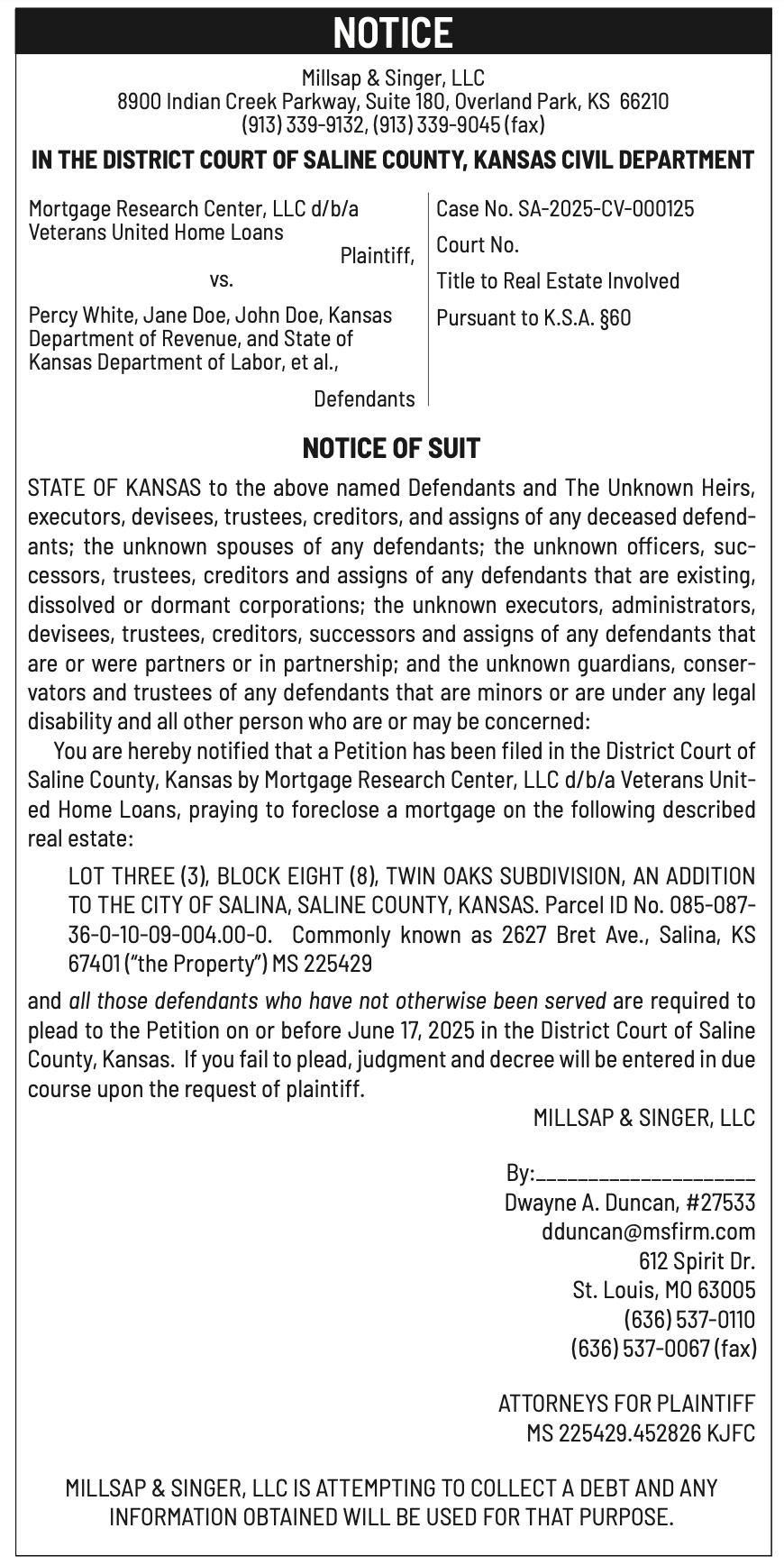 Public notices published in the Salina311 Newspaper on May 18th and/or May 14th, 2025.
