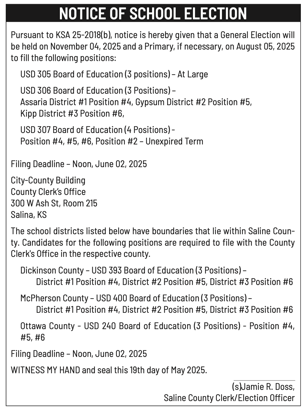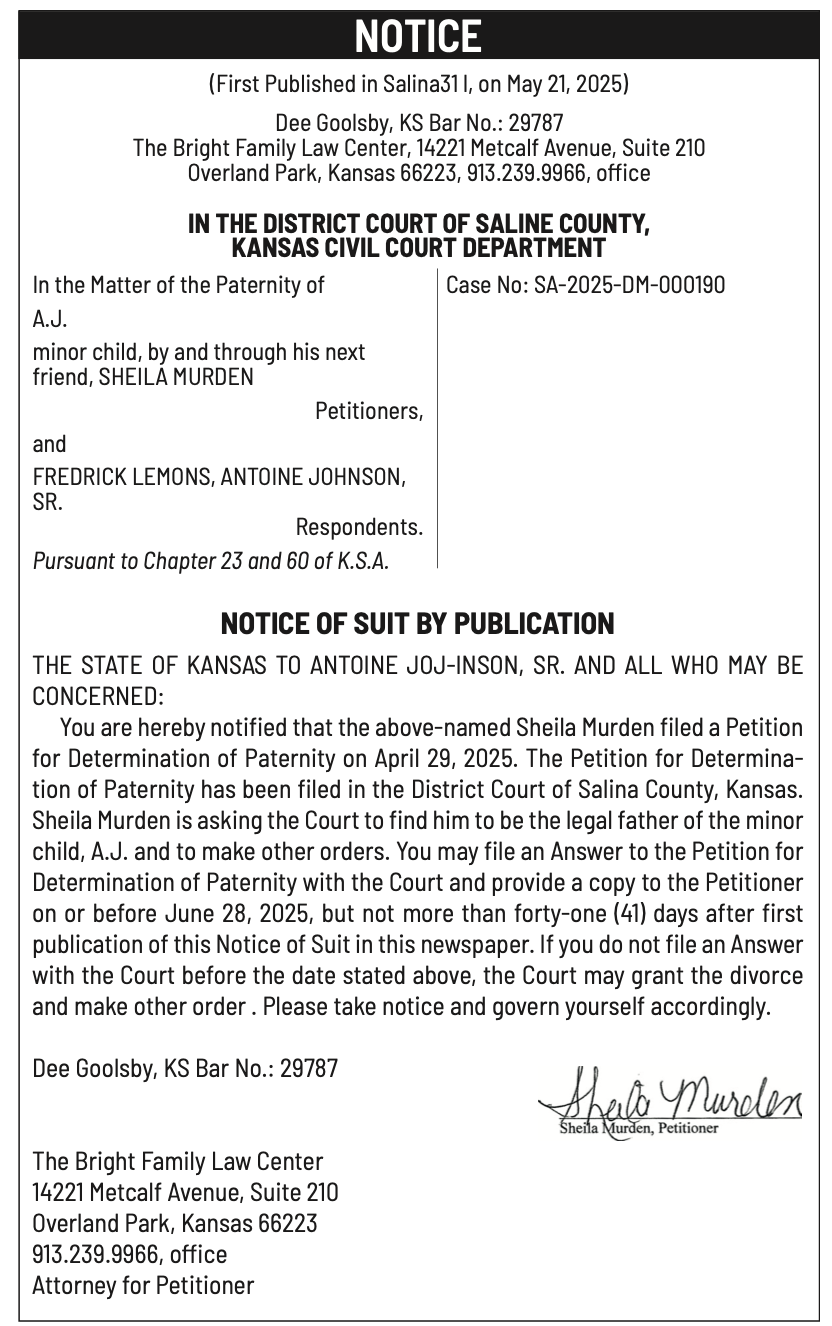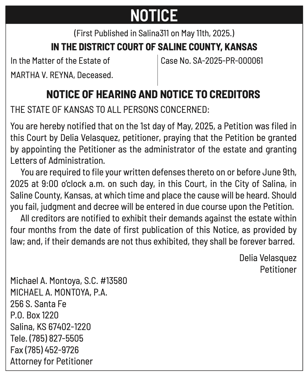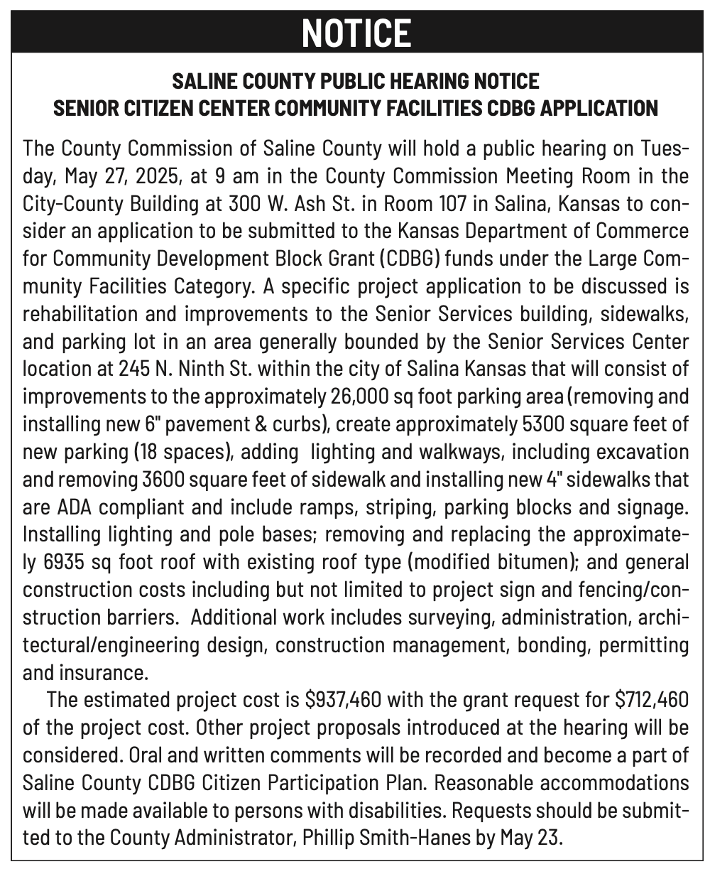 Public notices published in the Salina311 Newspaper on May 25th and/or May 21st.