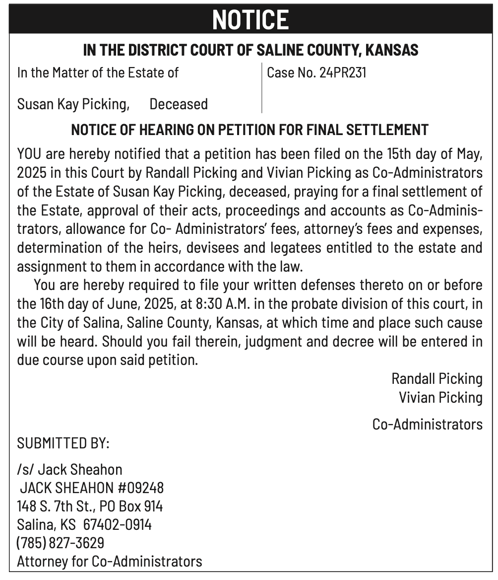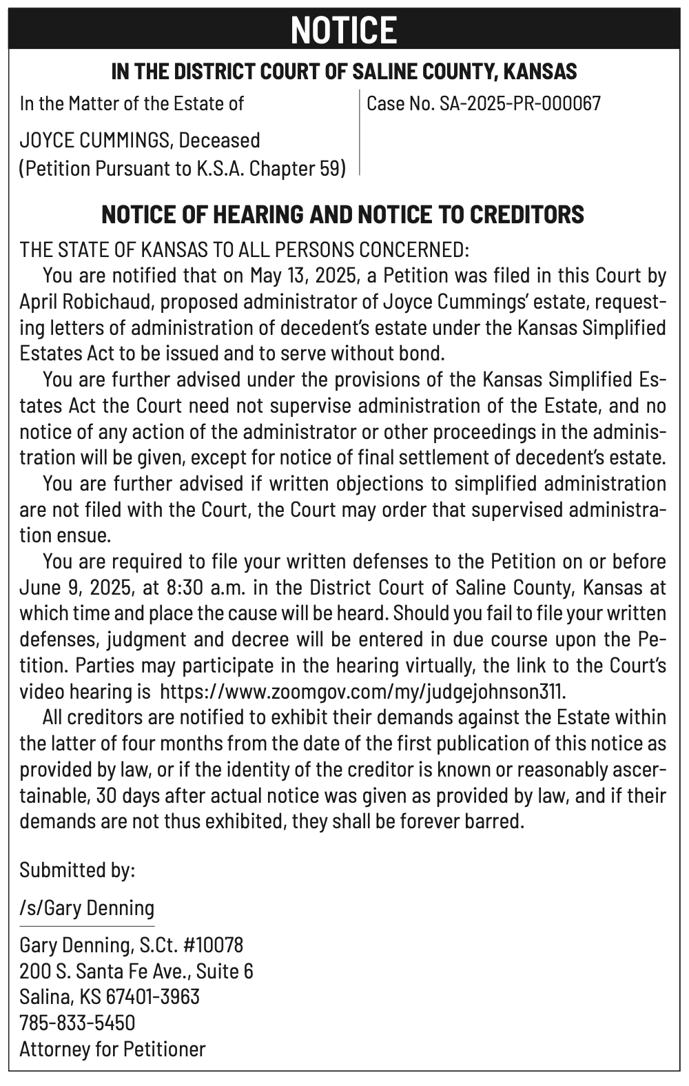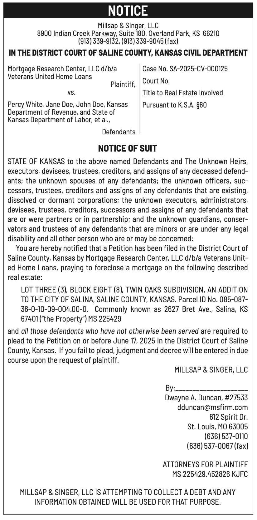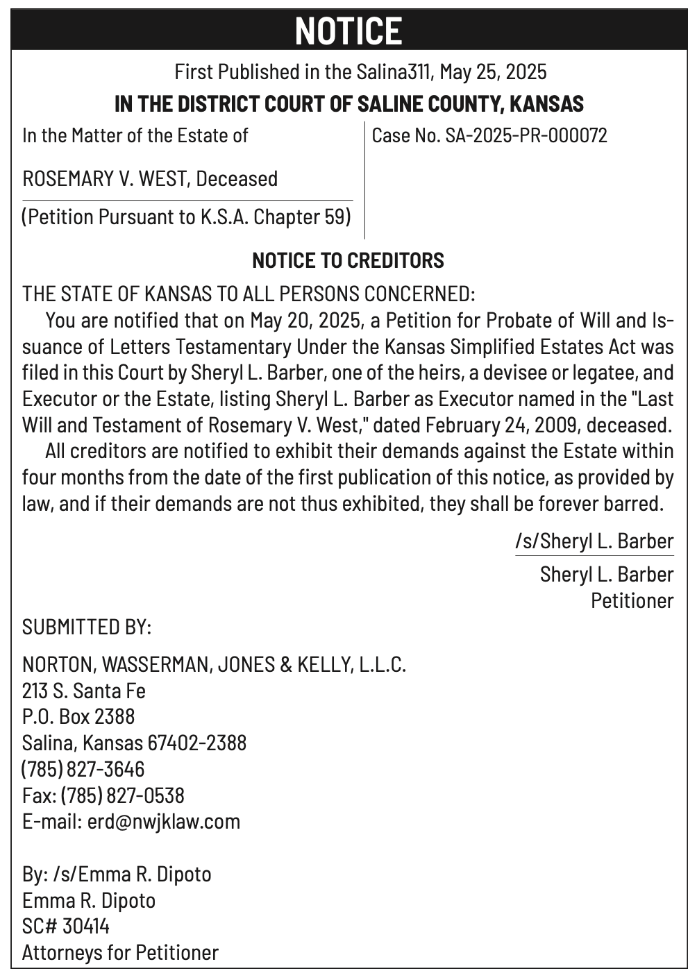 Public notices published in the Salina311 Newspaper on May 25th and/or May 21st.