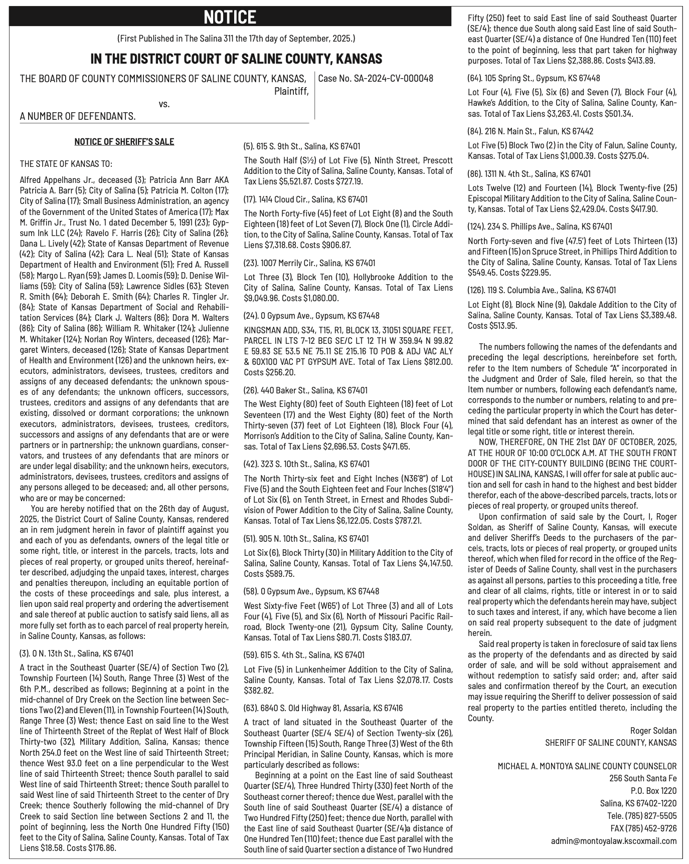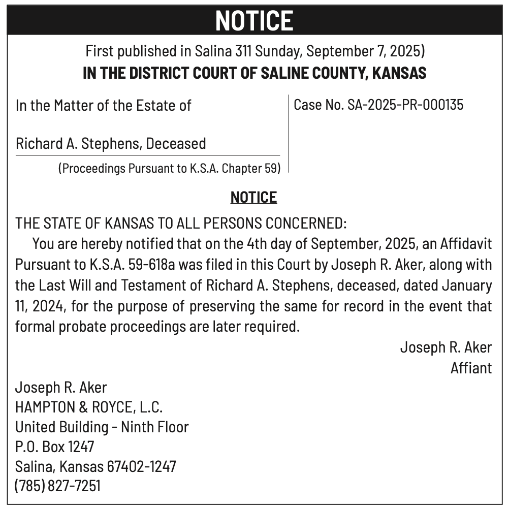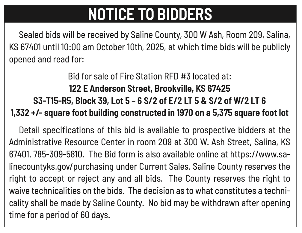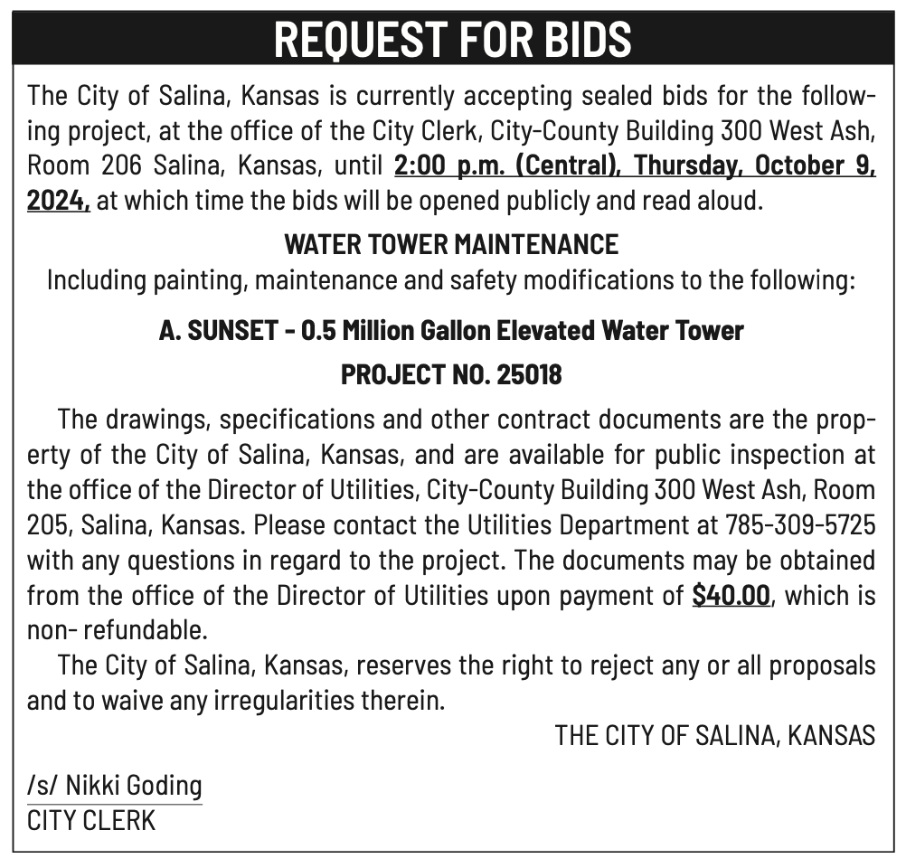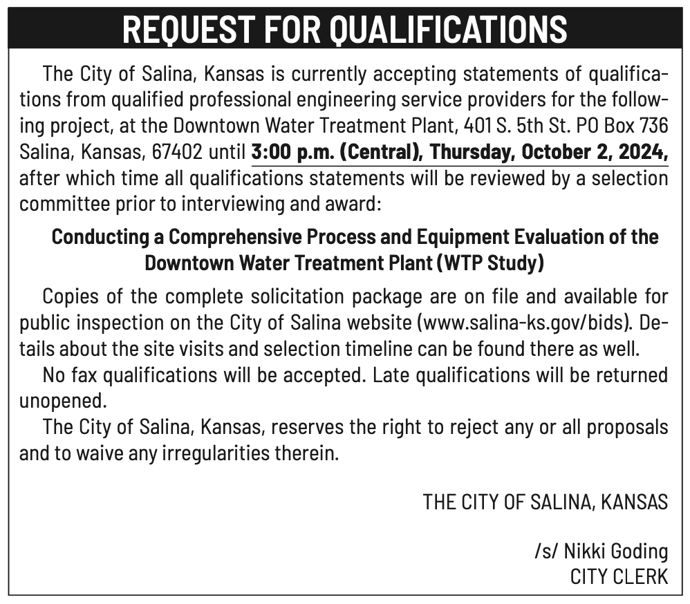 Public notices published in the Salina311 Newspaper on September 21st and/or September 17th.