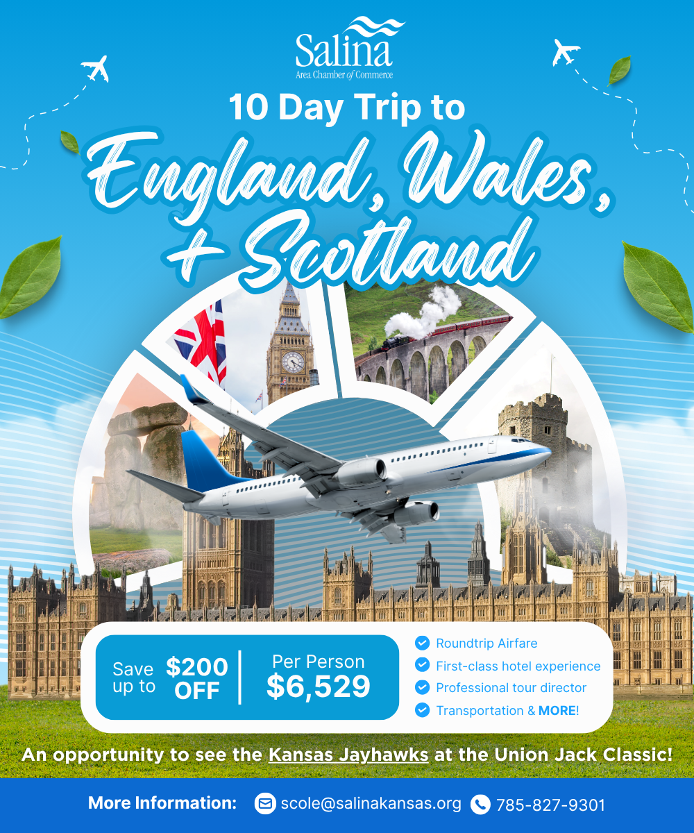 The Salina Area Chamber of Commerce has a long history of providing members and the community with opportunities to explore the world. Past Chamber trips have included destinations such as Ireland, China, Scotland, Greece, Vietnam, Australia, New Zealand, Portugal, and Holland. Planning is now underway for several new travel experiences in 2026 and 2027.
