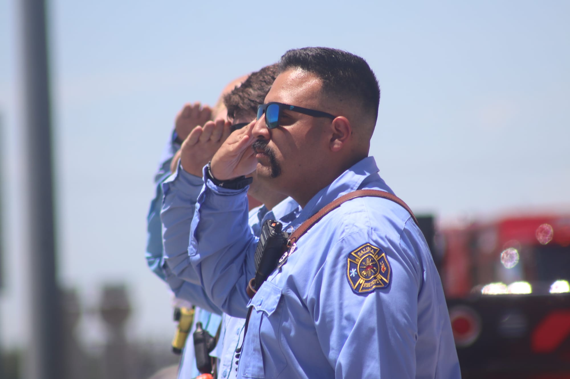First responders stood in salute from overpasses, exit ramps, and medians, with flags raised high in a display of respect and unity. Firefighters, law enforcement, and citizens alike paused from their routines to pay tribute.