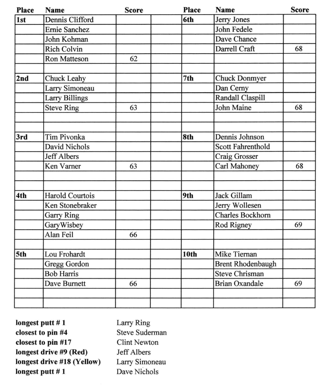 Salina Municipal Golf Course Thursday Morning Seniors Results - September 25