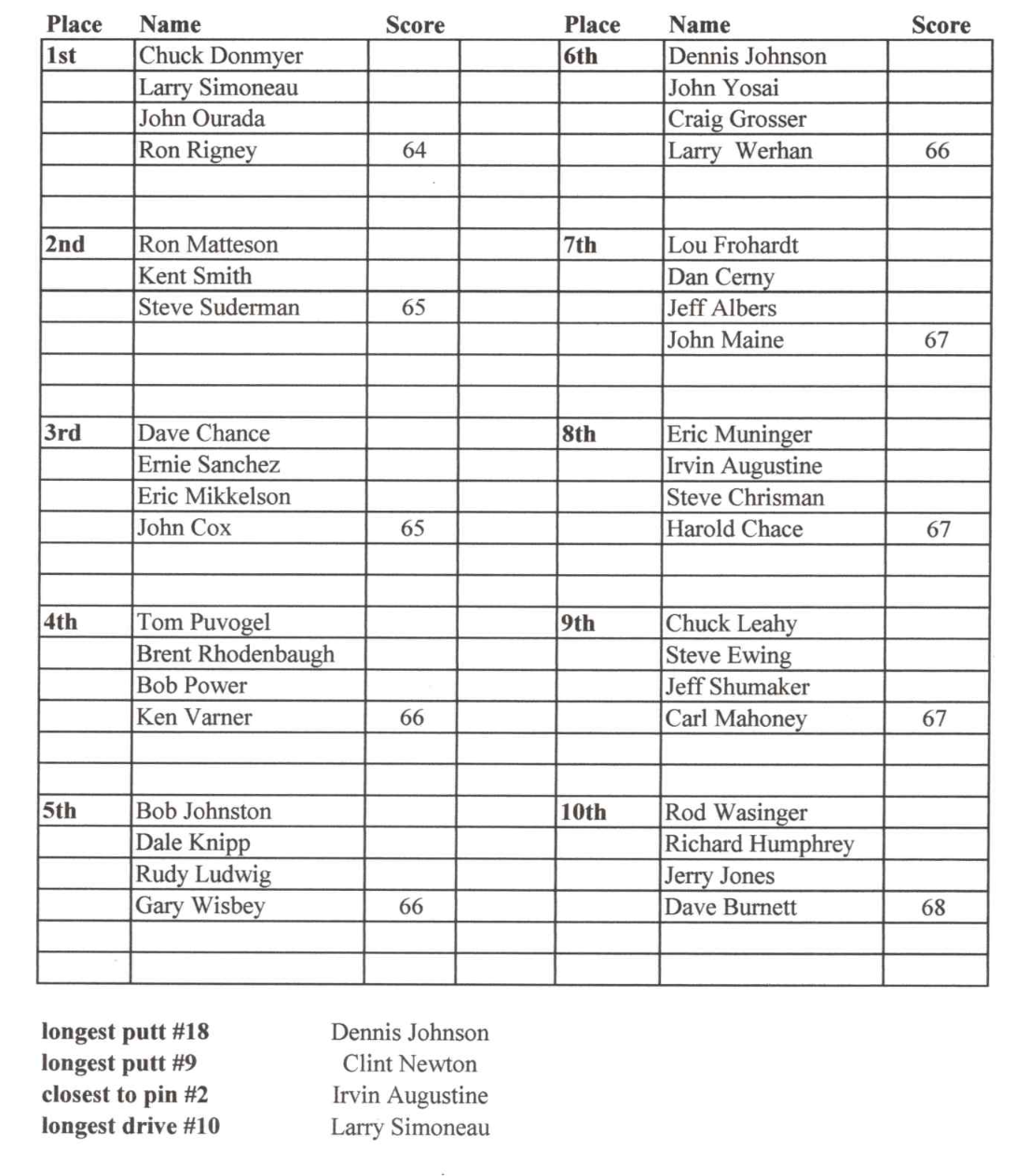 Salina Municipal Golf Course Thursday Morning Seniors Results - July 3