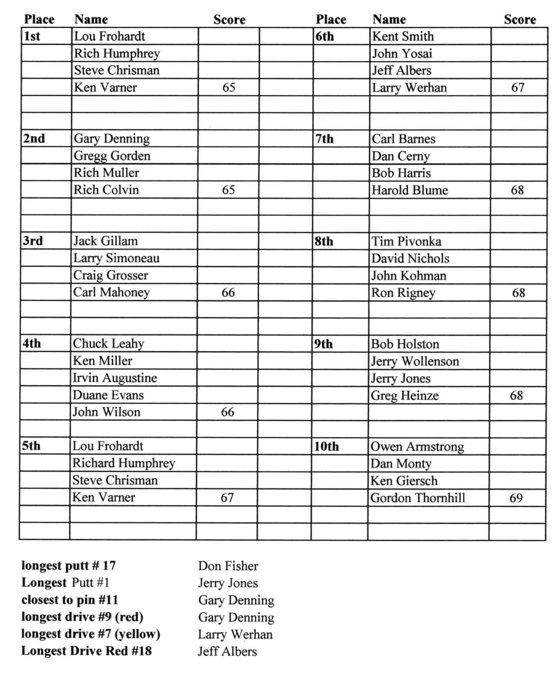 Salina Municipal Golf Course Thursday Morning Seniors - August 14